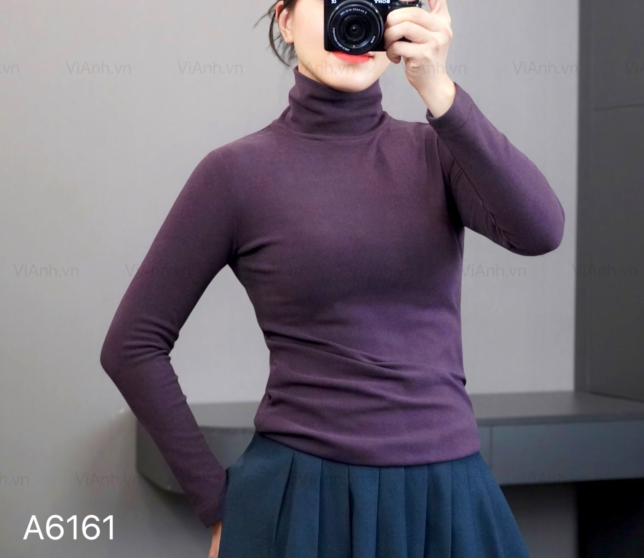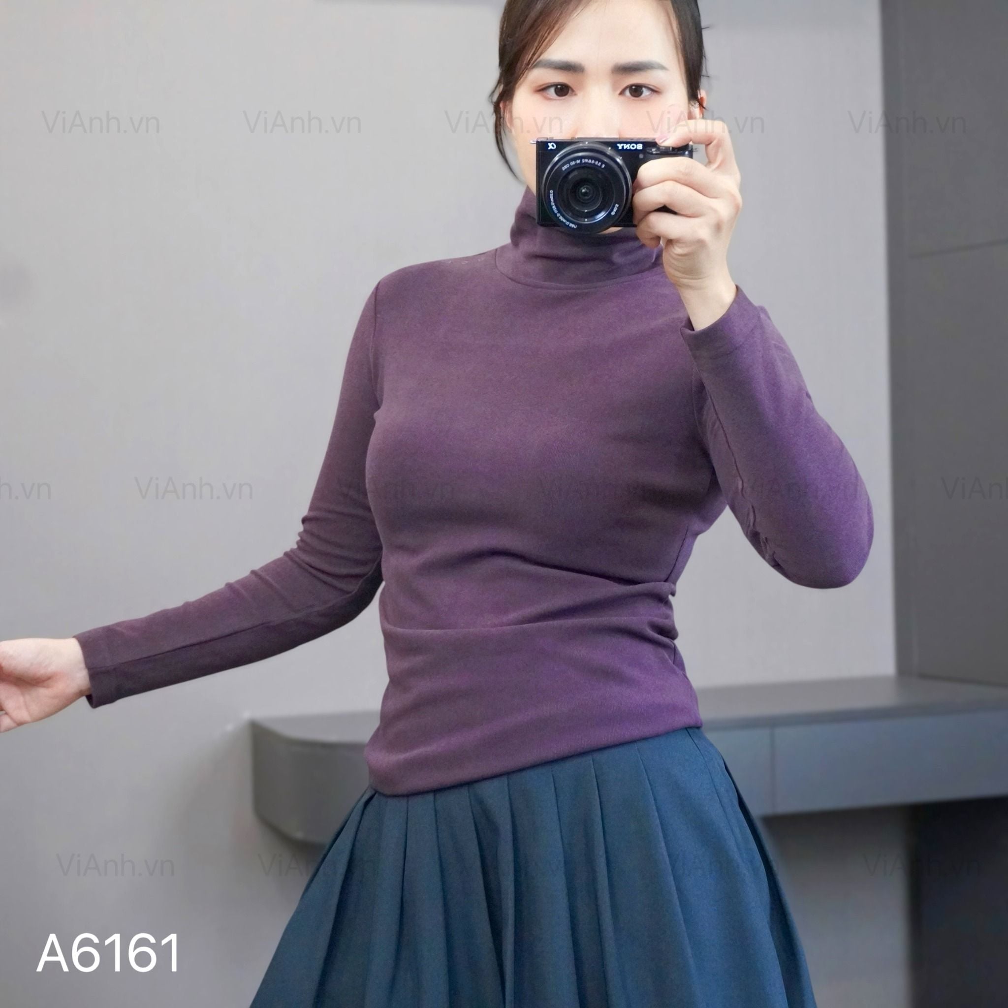 Áo dài tay cao cổ chữ vai style UK / TÍM