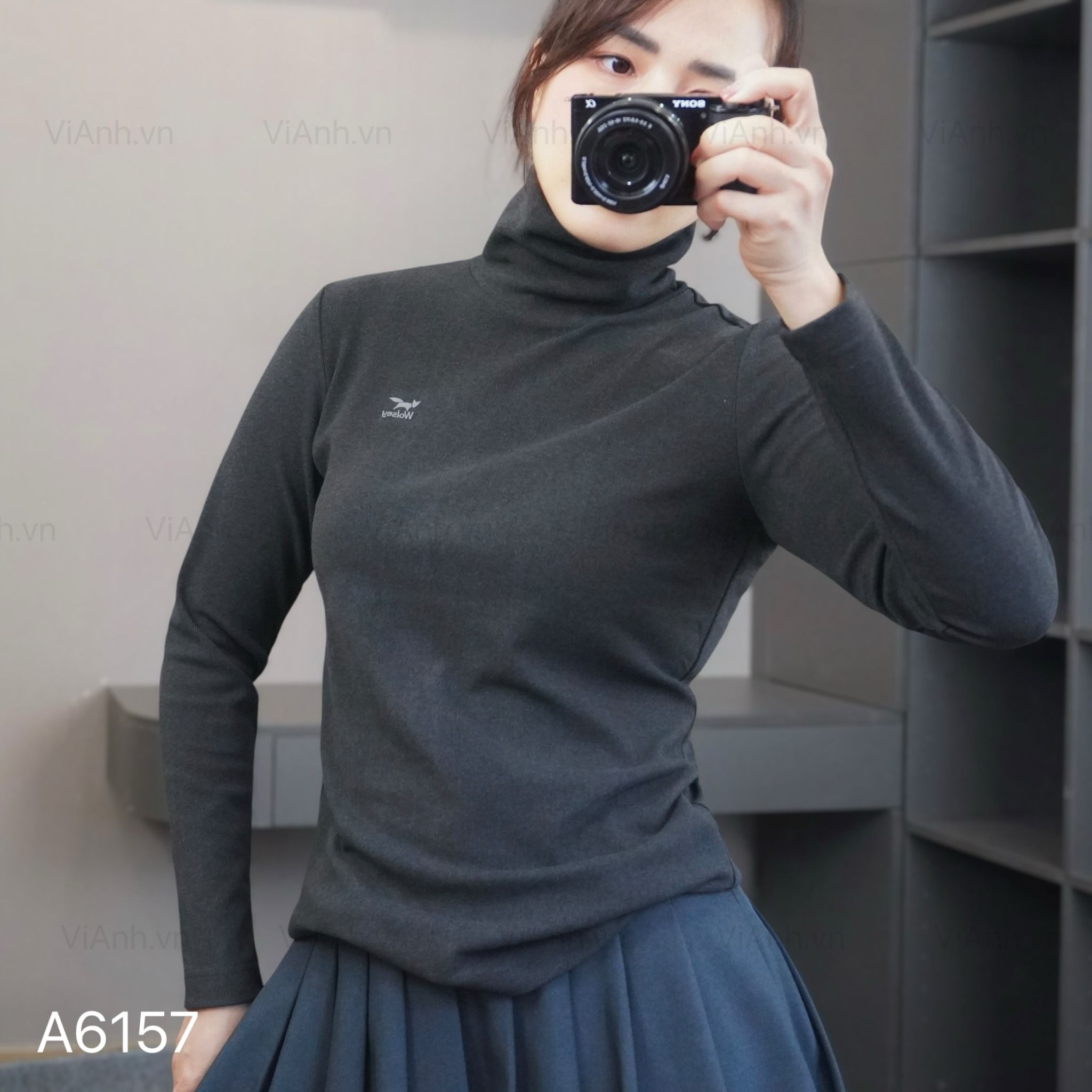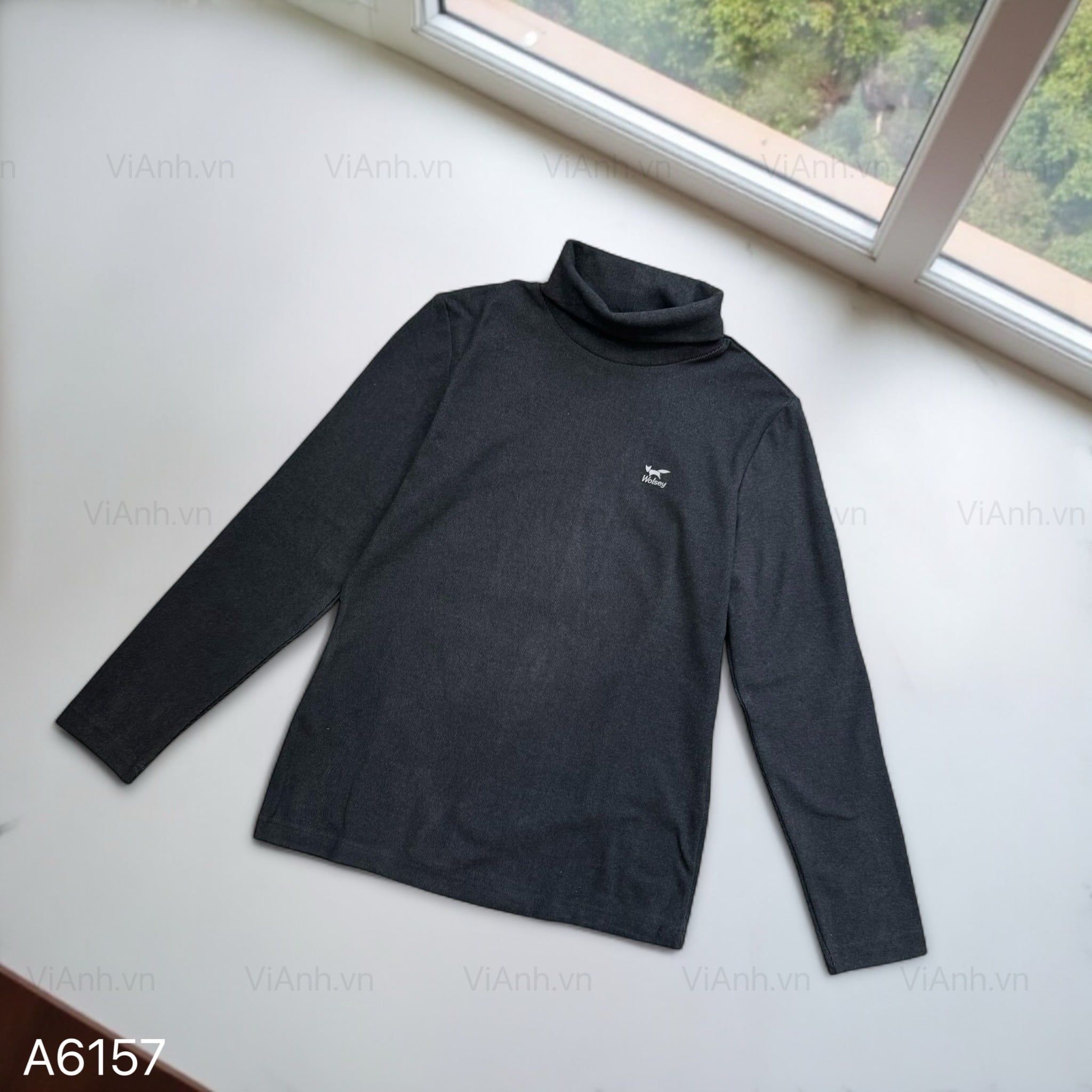 Áo dài tay cao cổ logo ngực style UK / ĐEN