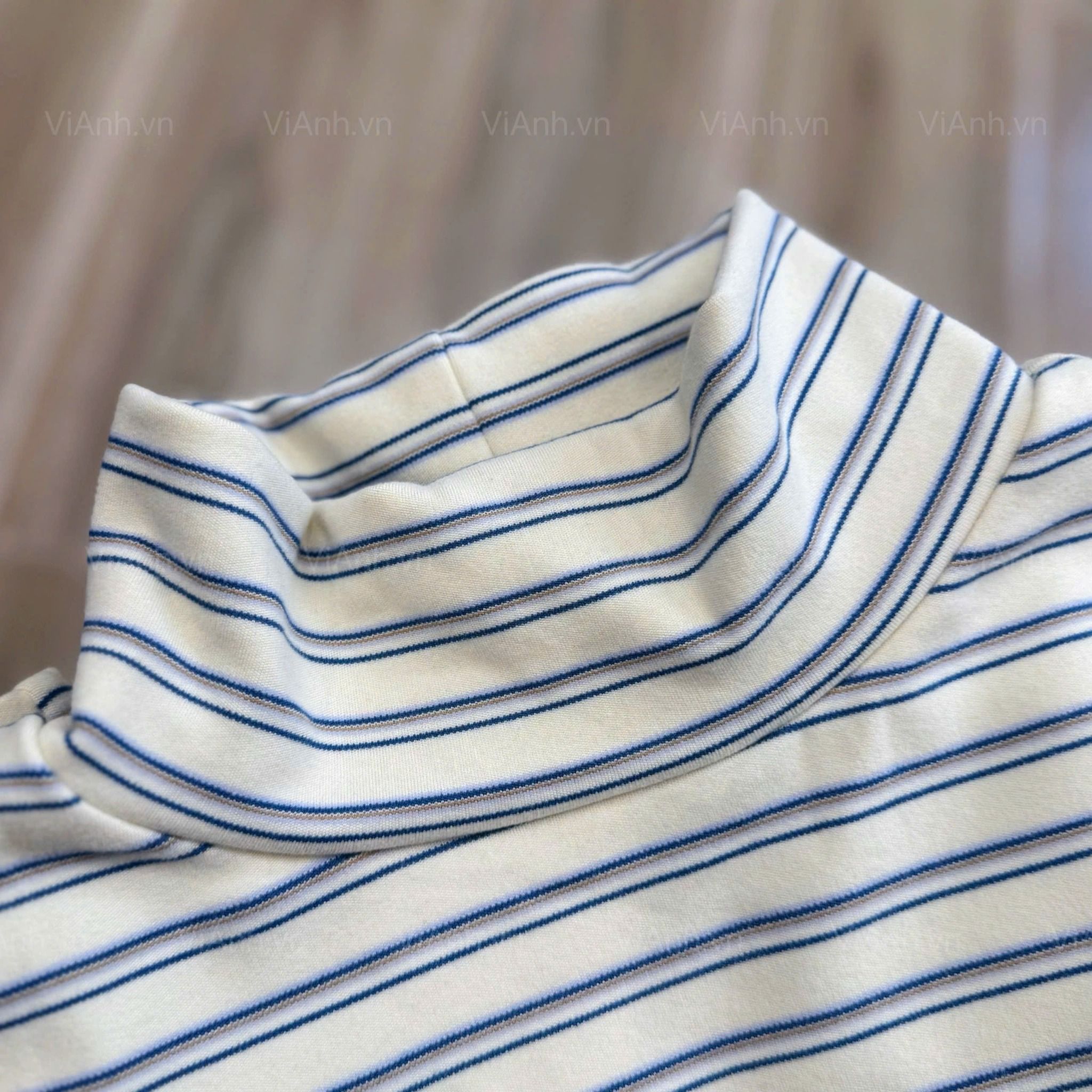 Áo dài tay cổ 5 phân style Nhật / Size: M / TRẮNG KẺ