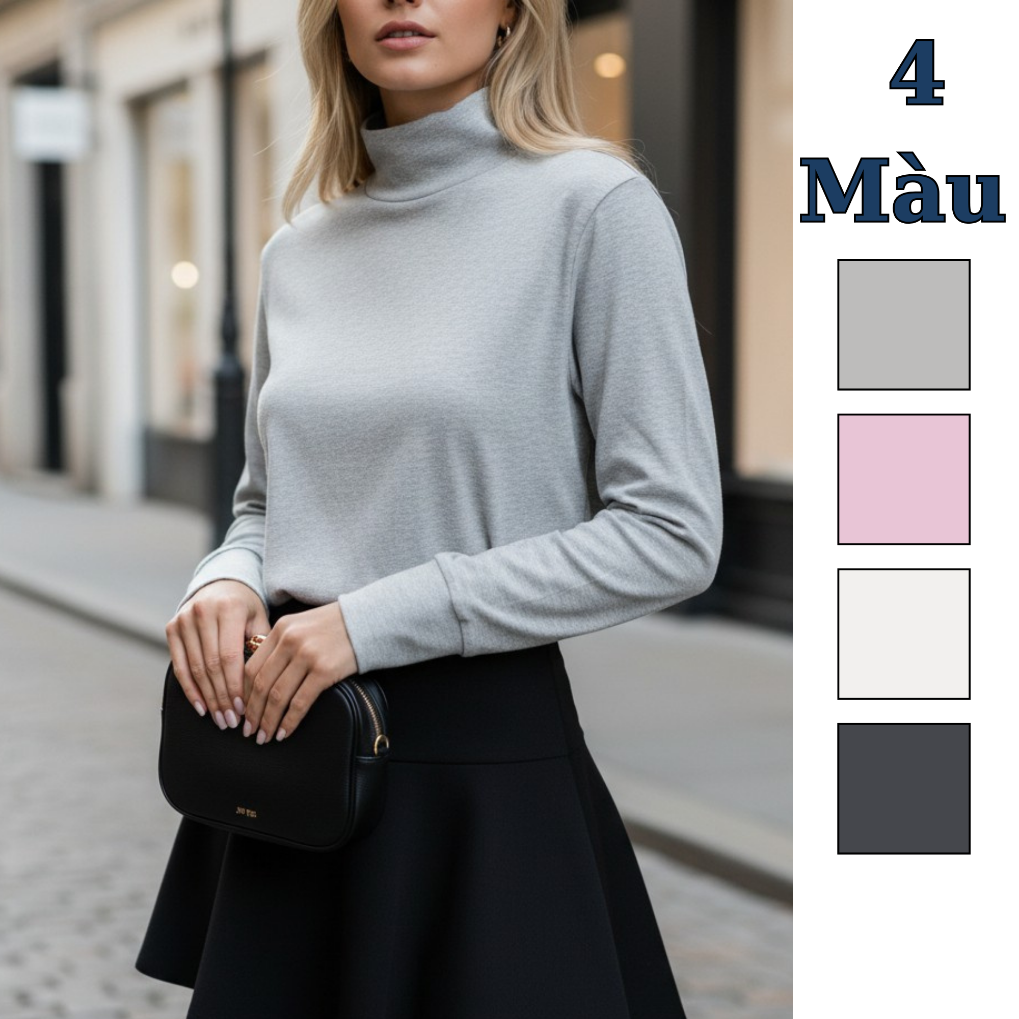 Áo dài tay cổ 5 phân Style Nhật / Ghi đen V1 - Hồng V3 - Trắng kem V8 - Xám nhạt V9