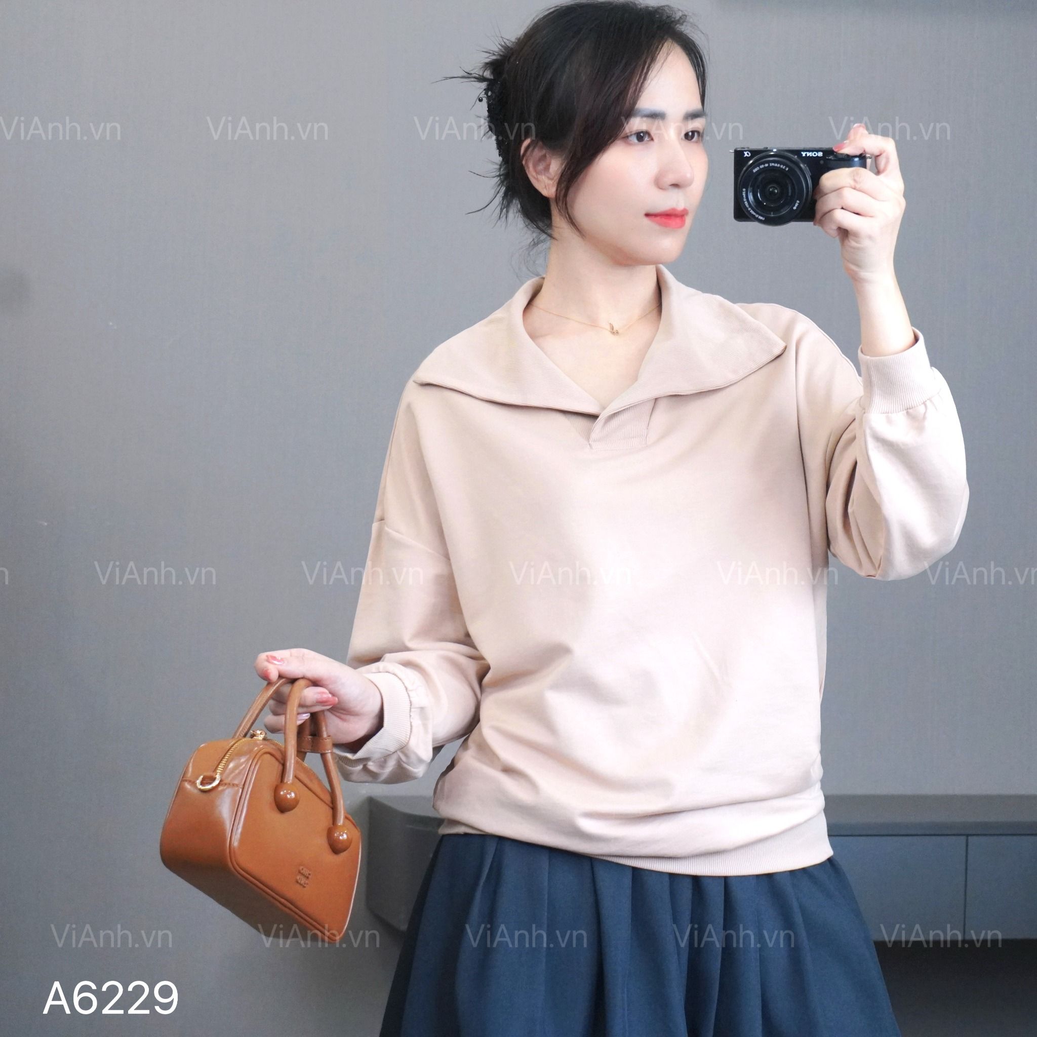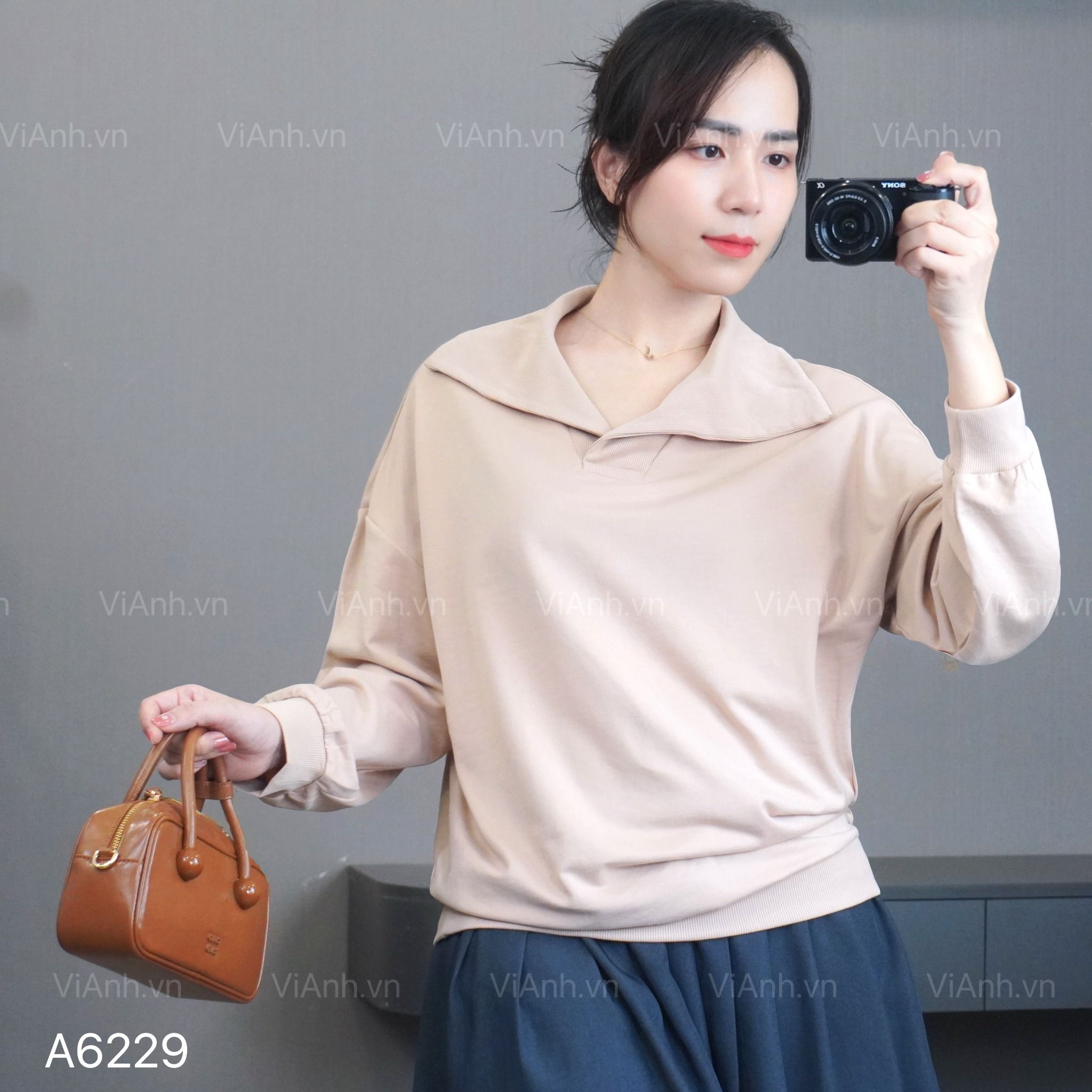 Áo A29 sweater dài tay có cổ style Hàn A6229 / BE