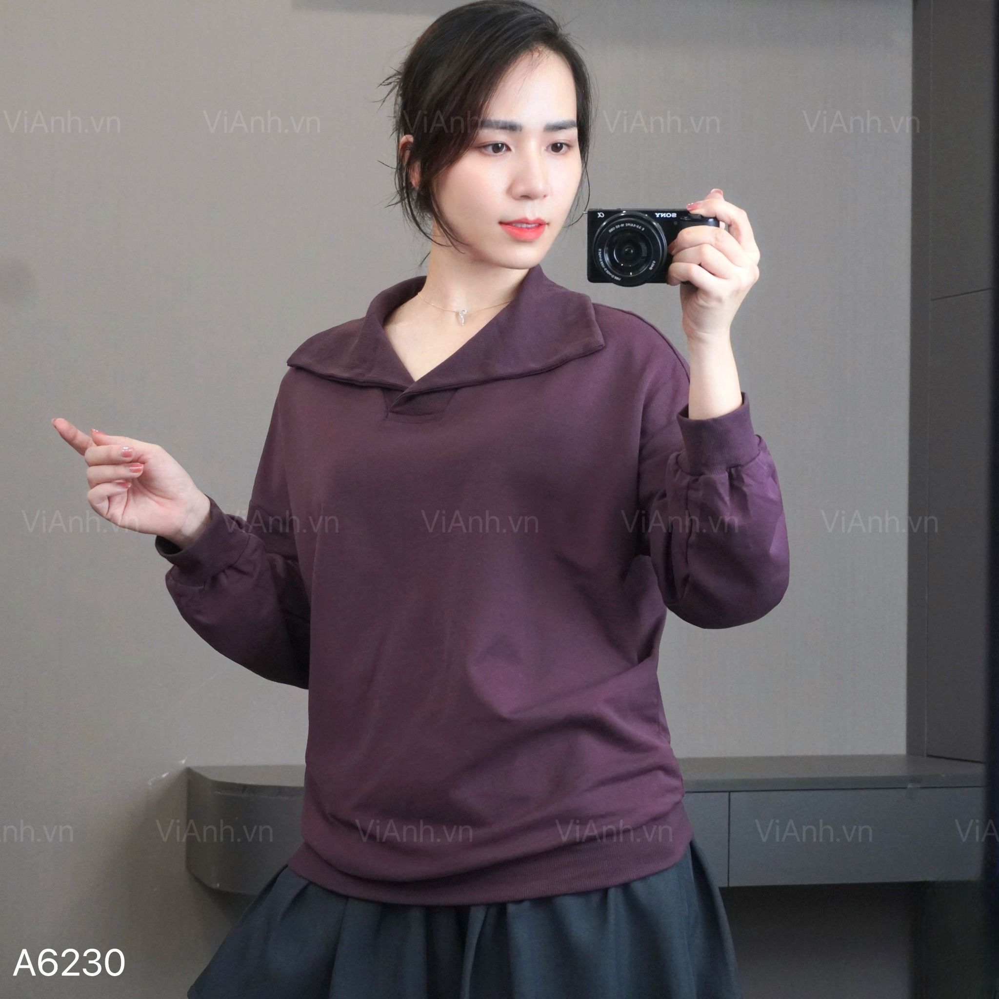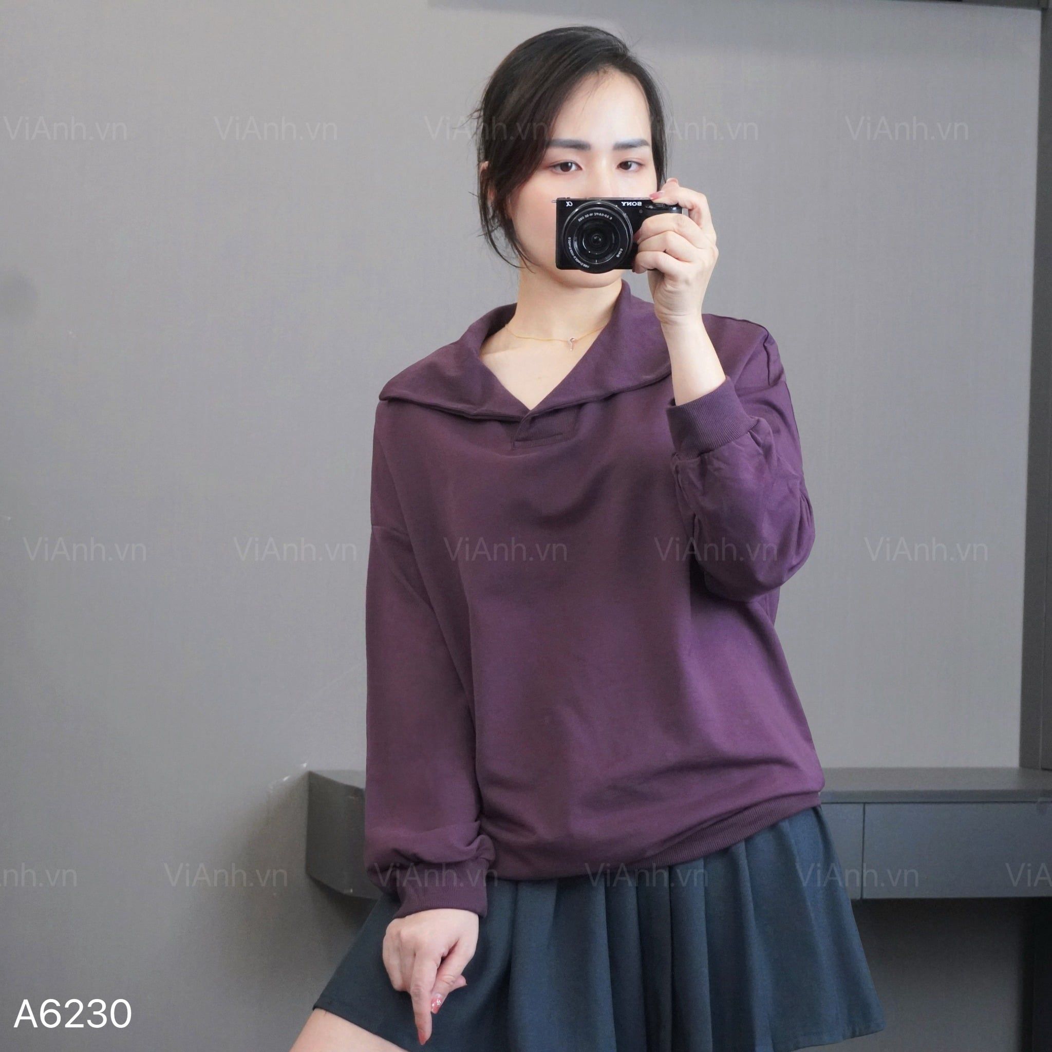 Áo A30 sweater dài tay có cổ style Hàn A6230 / NÂU ĐỎ