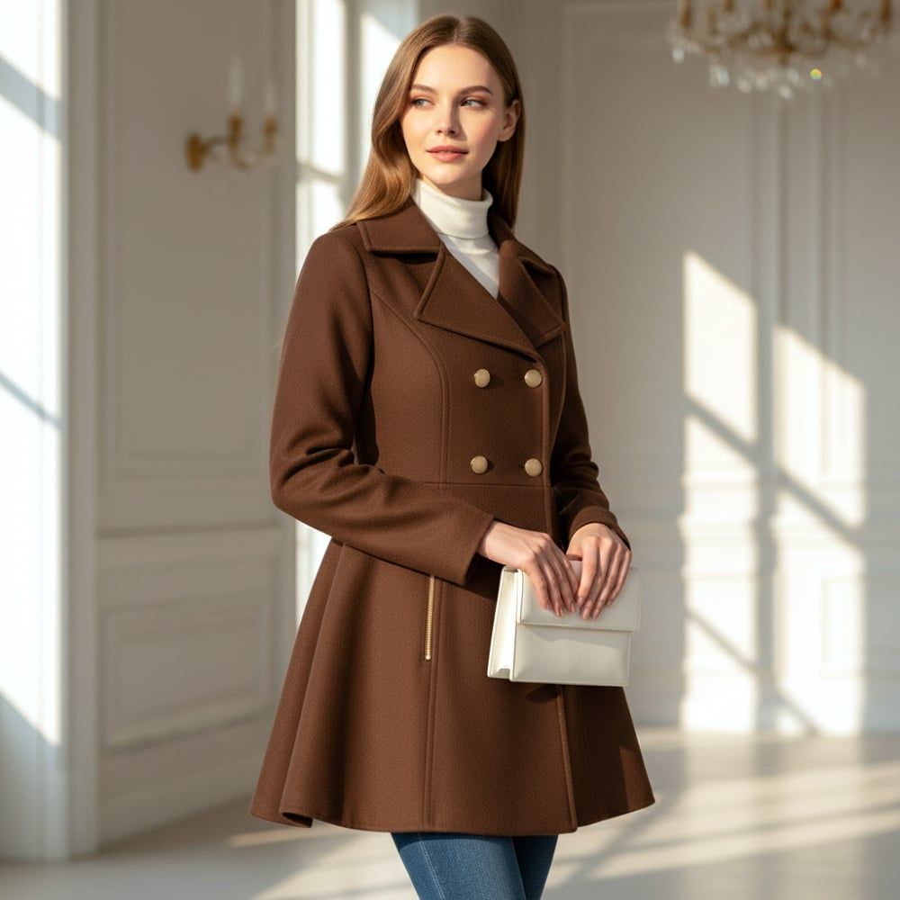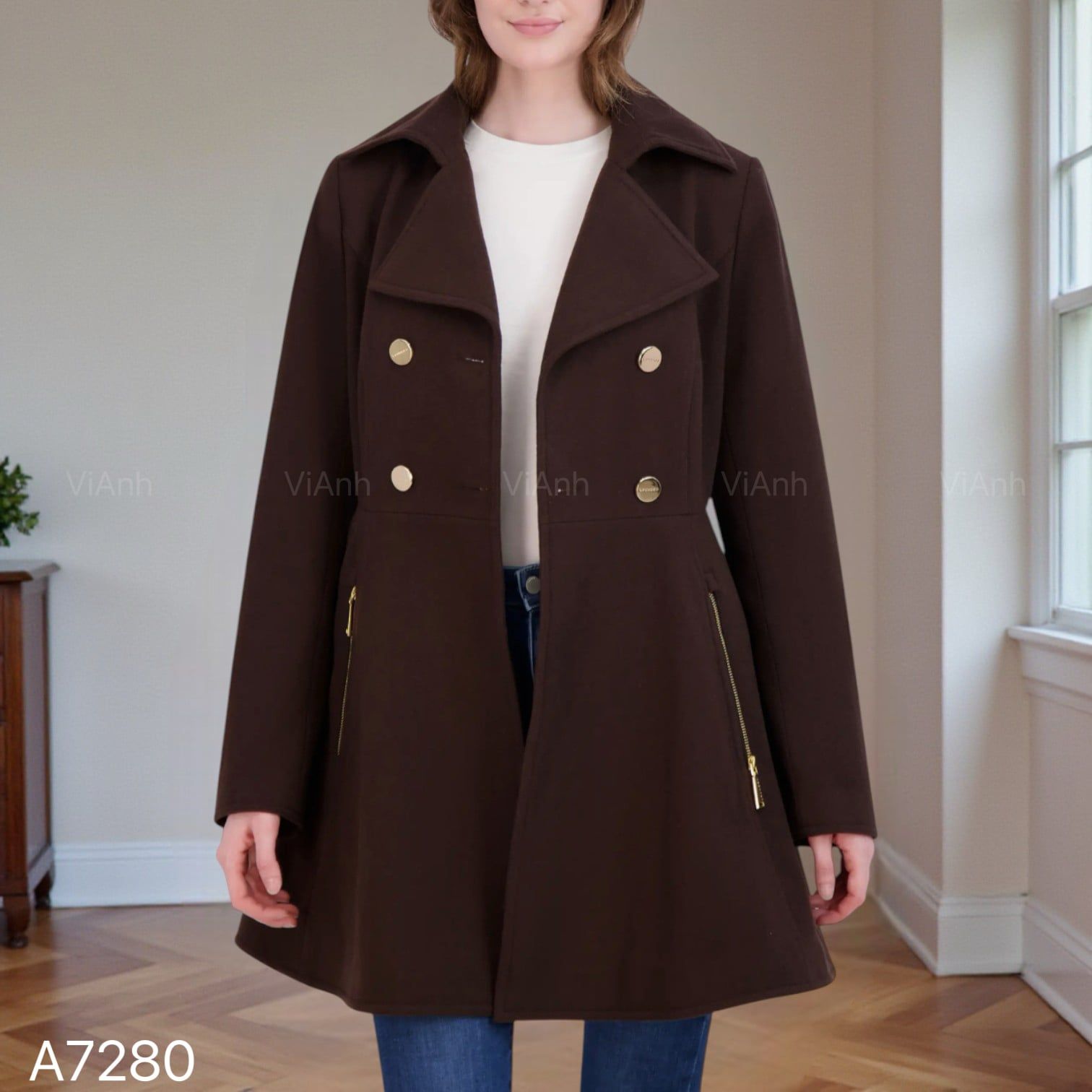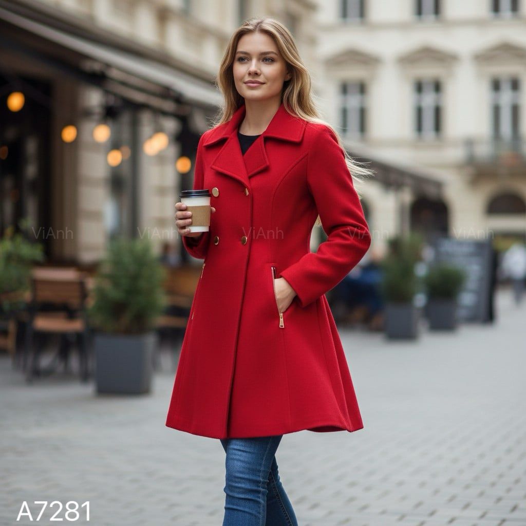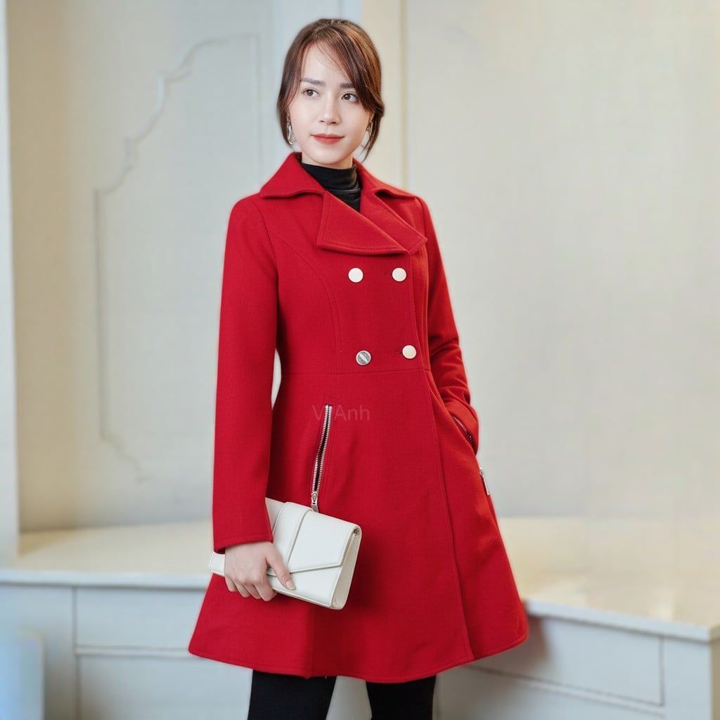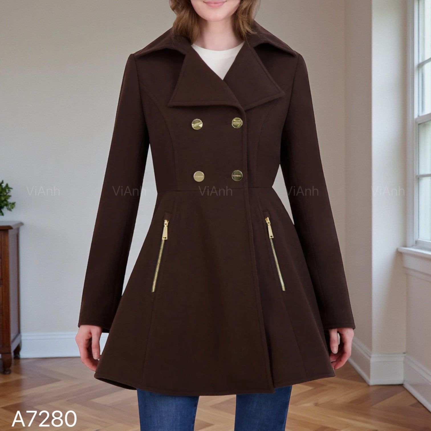 Áo khoác dạ dáng váy style US UK / Nâu D80 - Đỏ D81