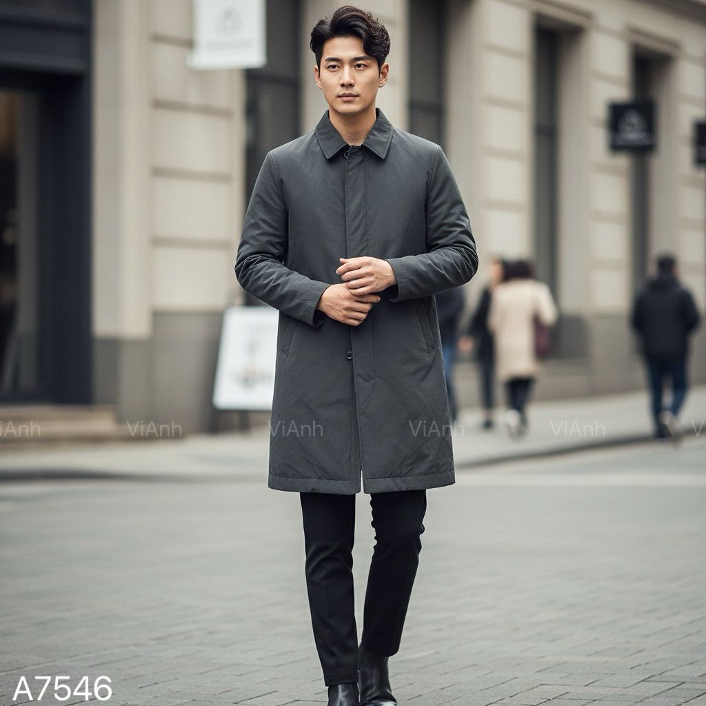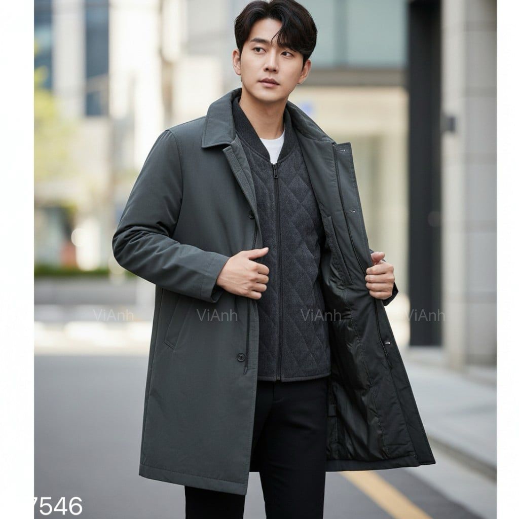 Áo khoác dáng dài ( set 2 lớp ) style Hàn / Xanh Xám D46