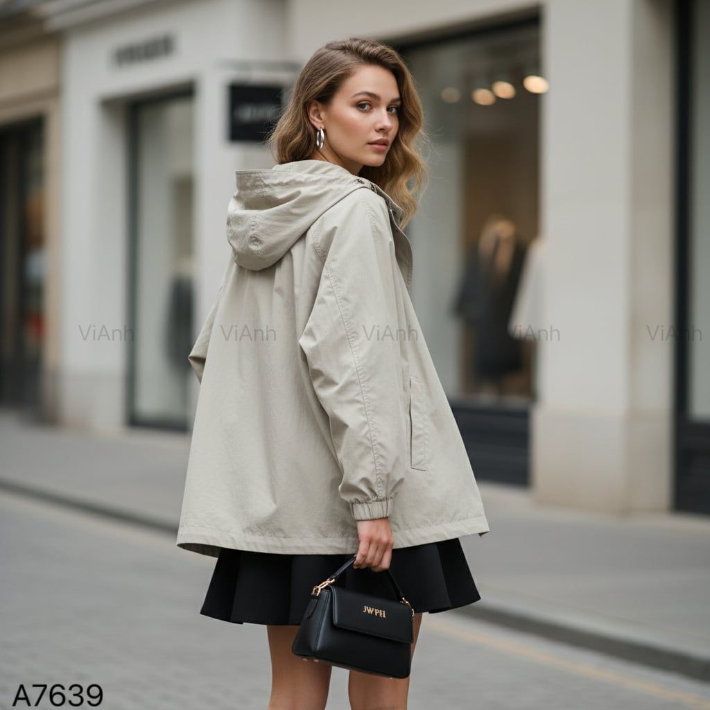 Áo E135 khoác gió phom rộng style Hàn A7639 / Xám