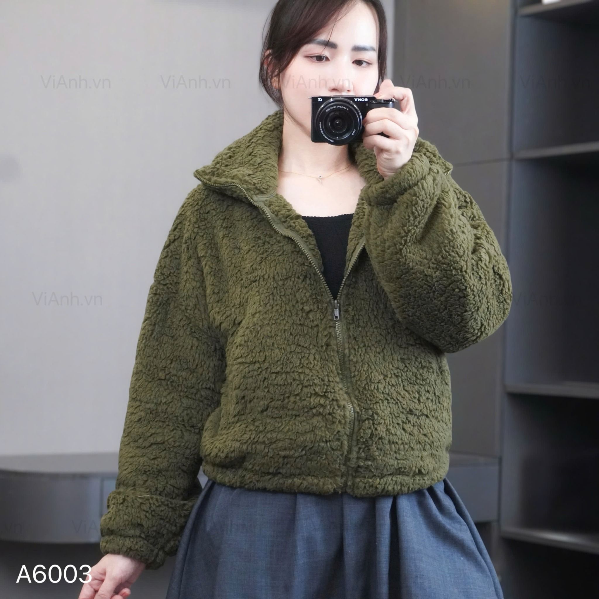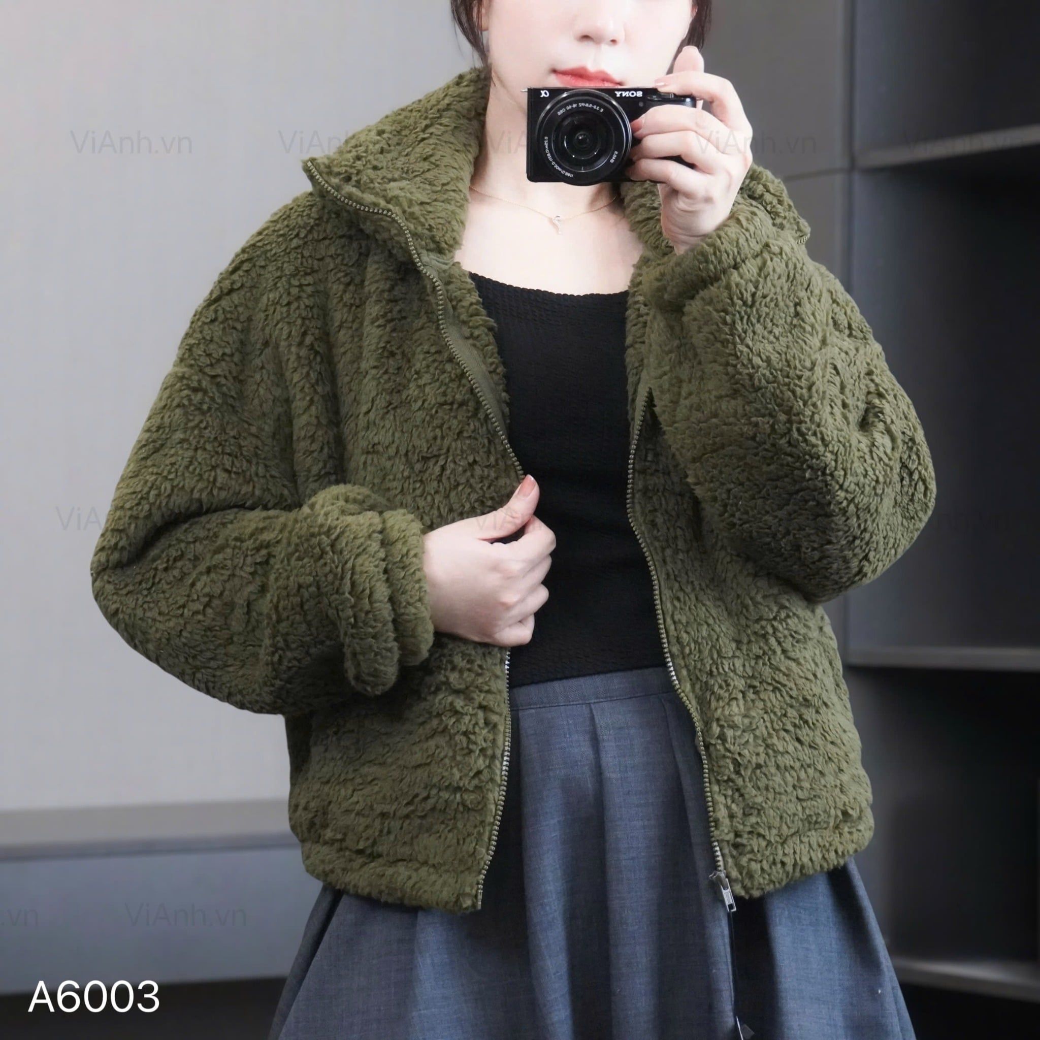 Áo khoác lông K3 cao cổ style Hàn A6003 / XANH
