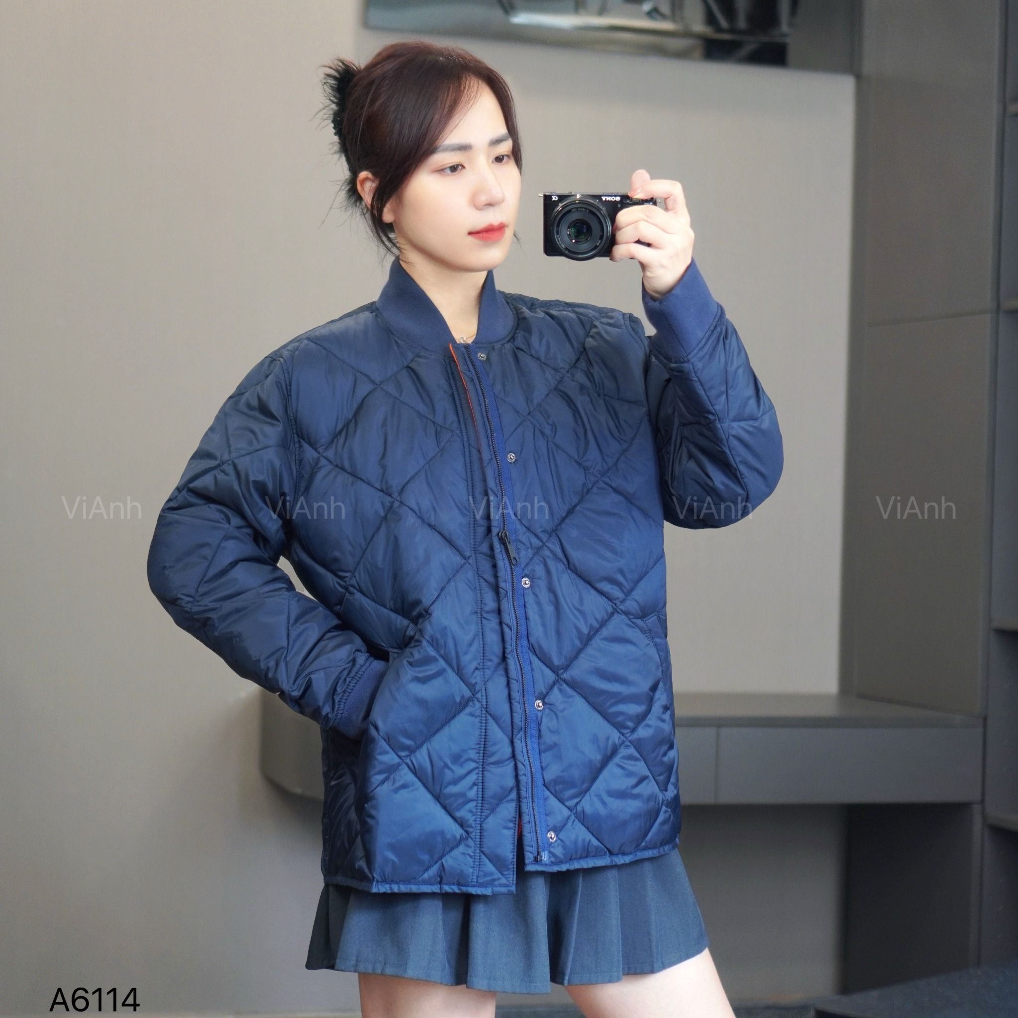 Áo khoác phao chần trám style US / XANH