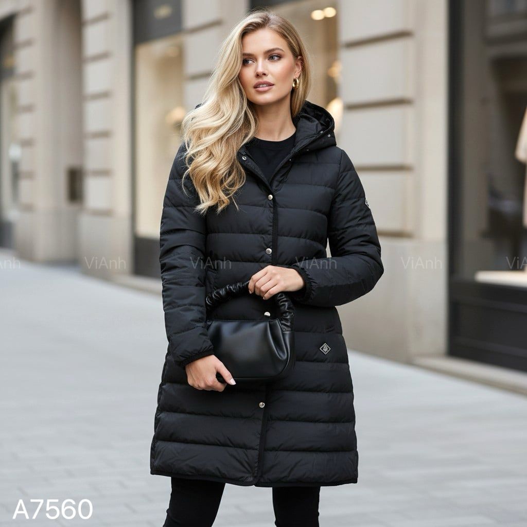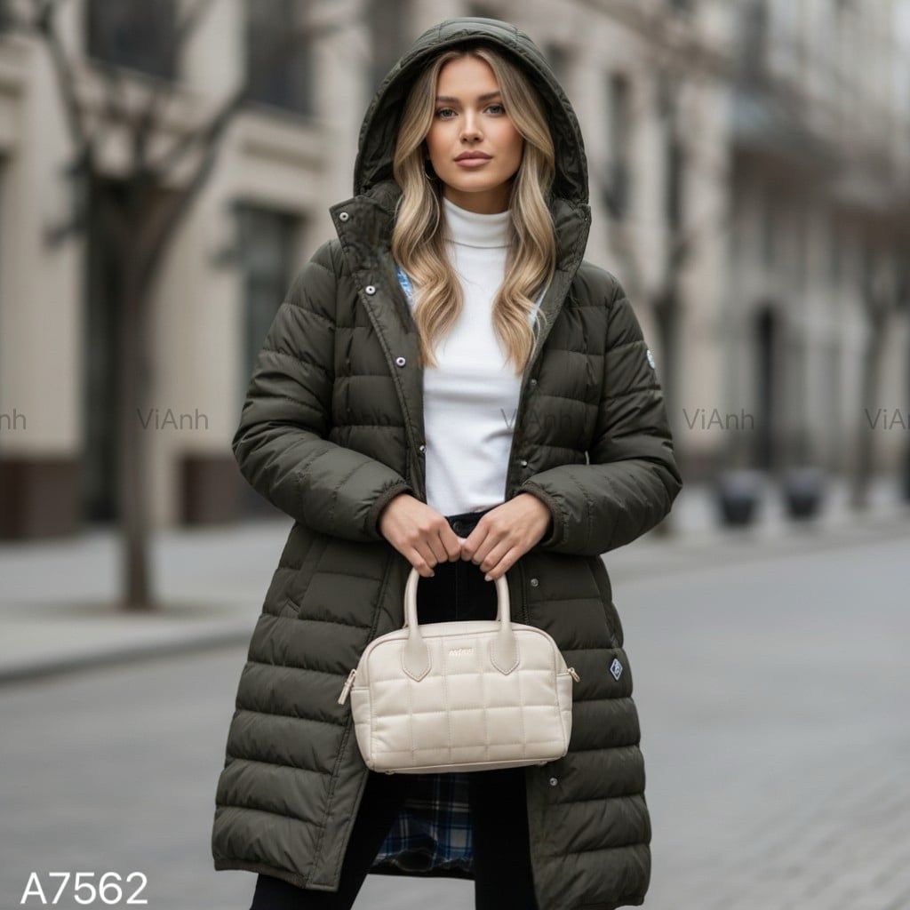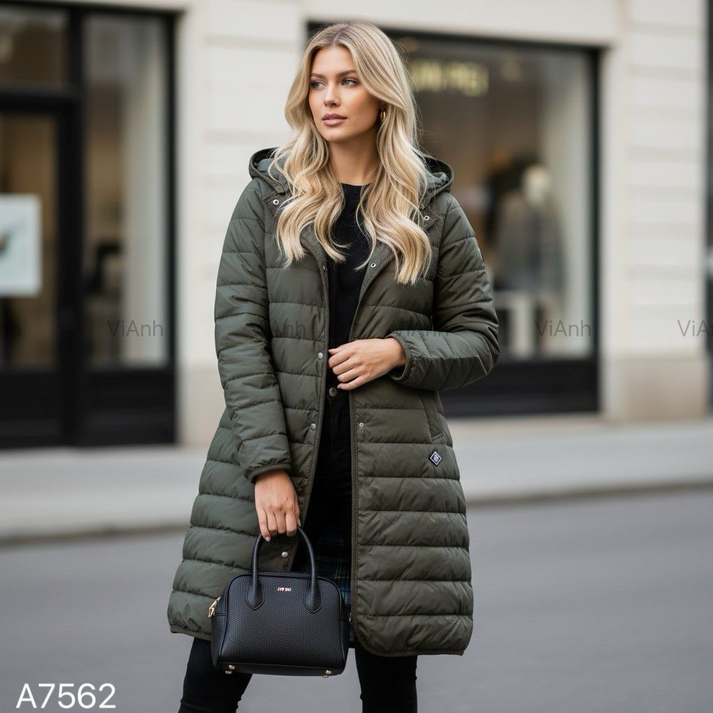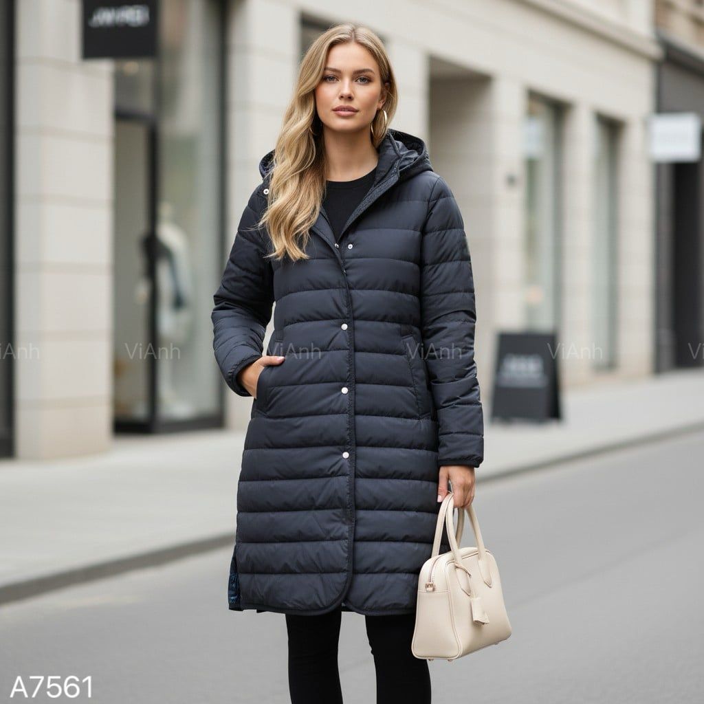 Áo khoác phao dáng dài style Nhật / Đen K60 - Xanh than K61 - Xanh rêu K62