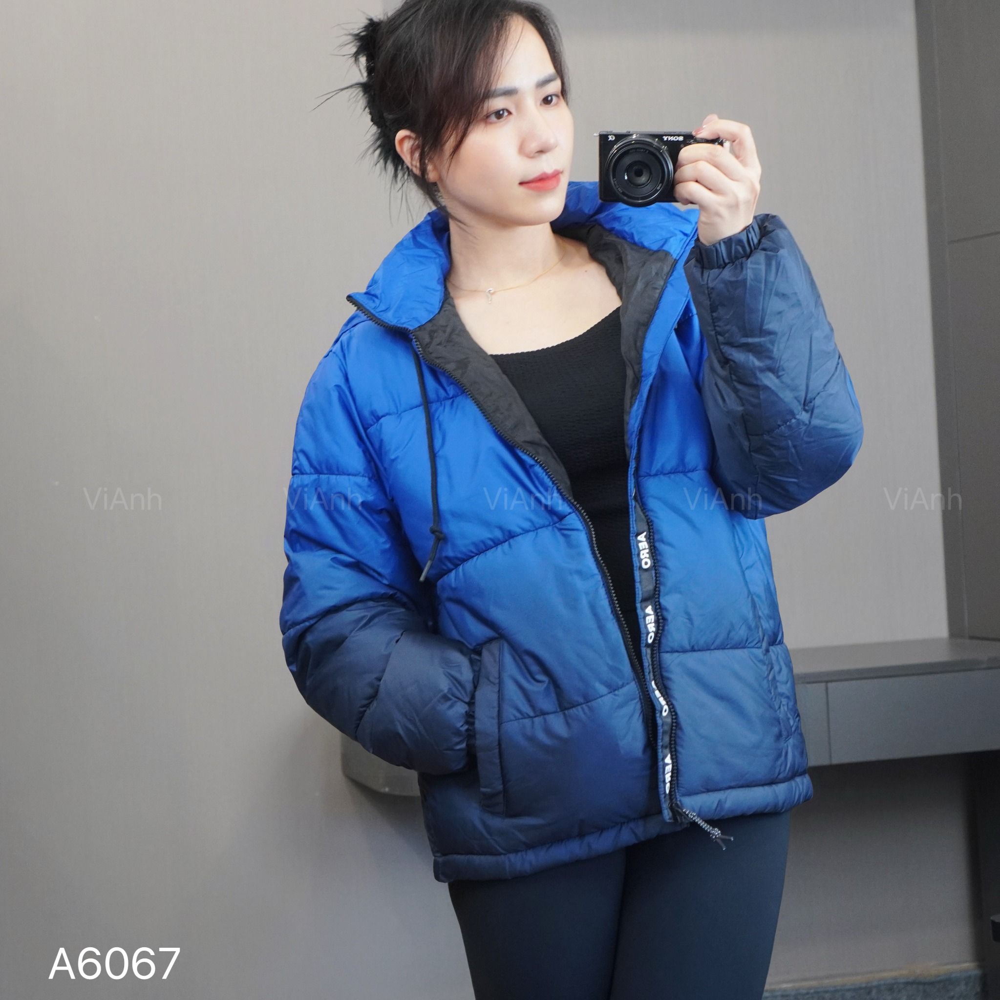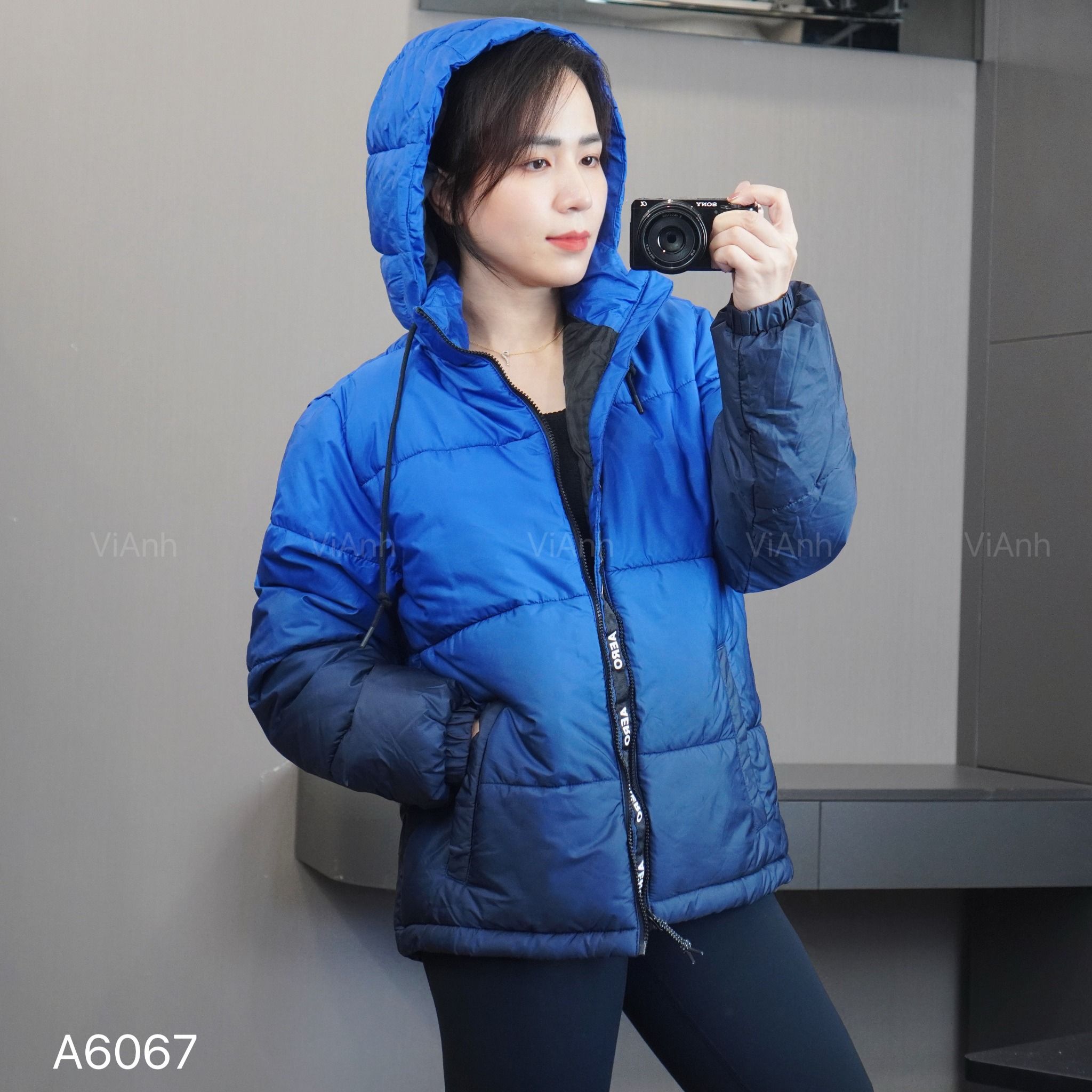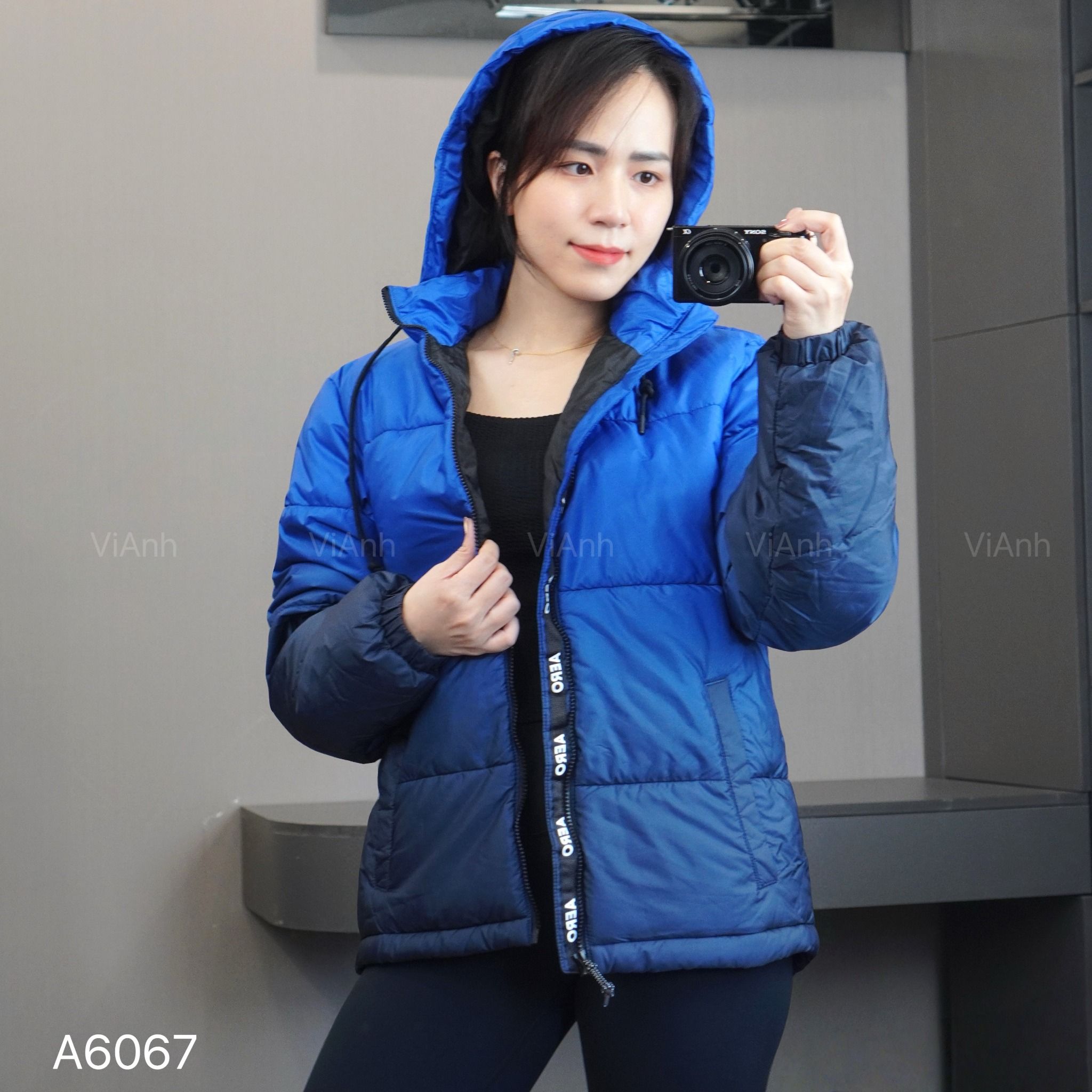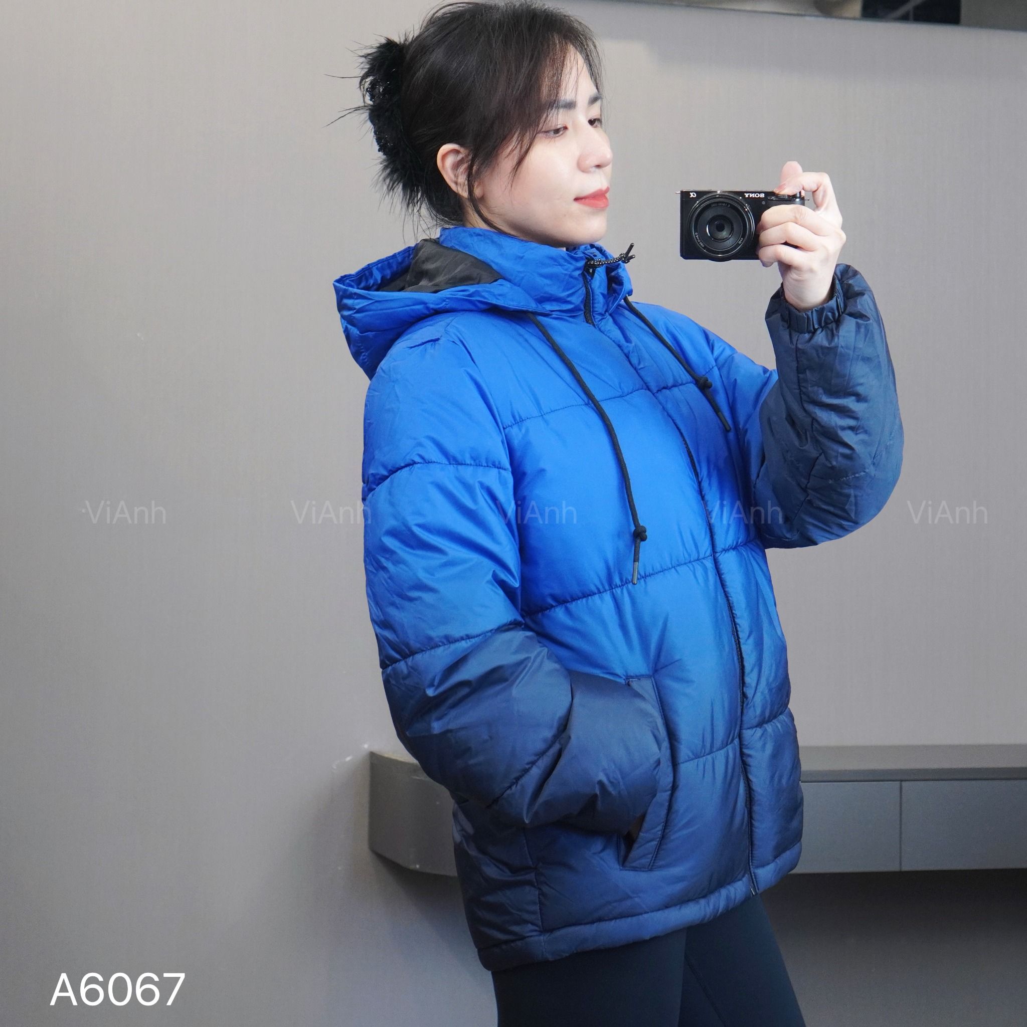 Áo khoác phao kèm mũ màu Omber style US / XANH
