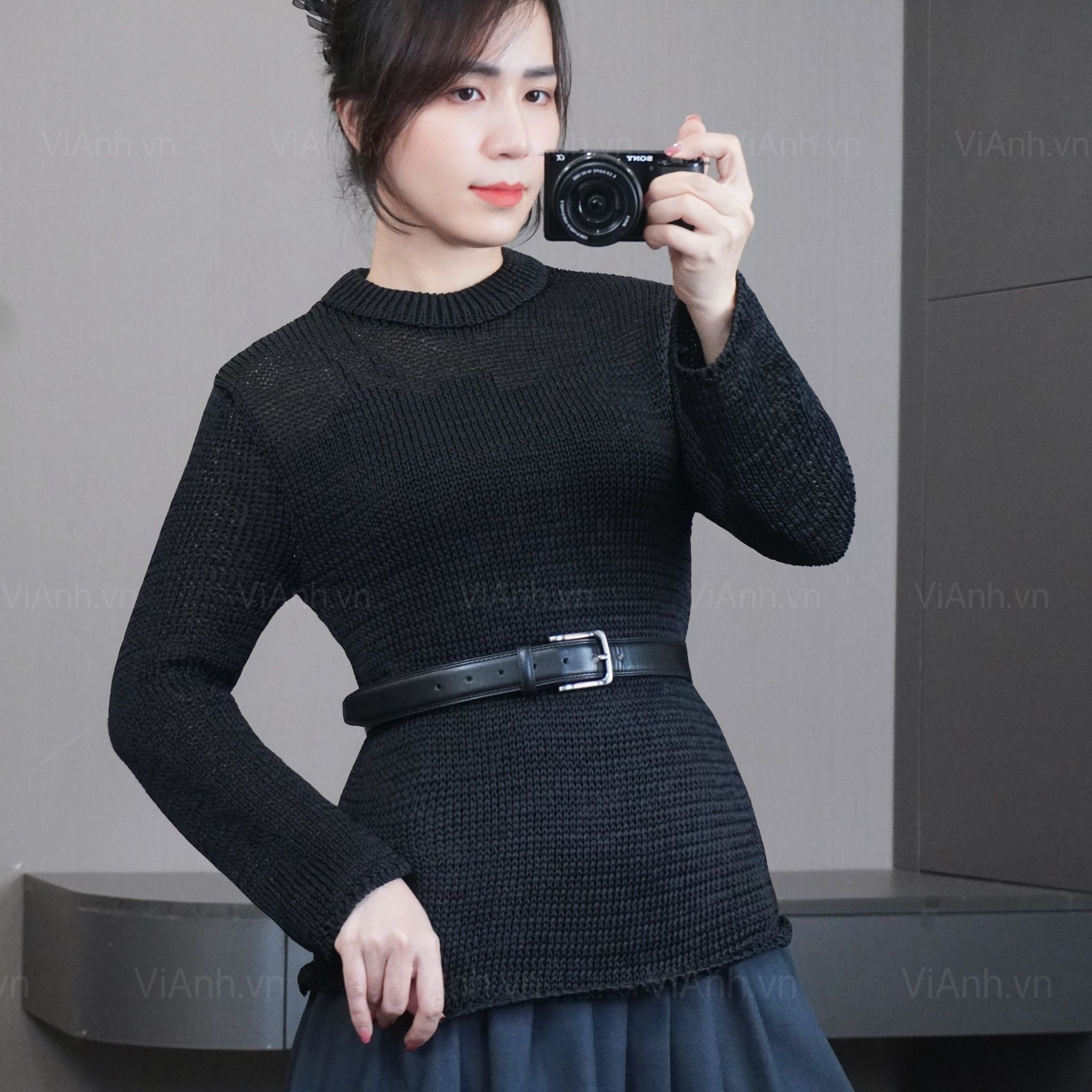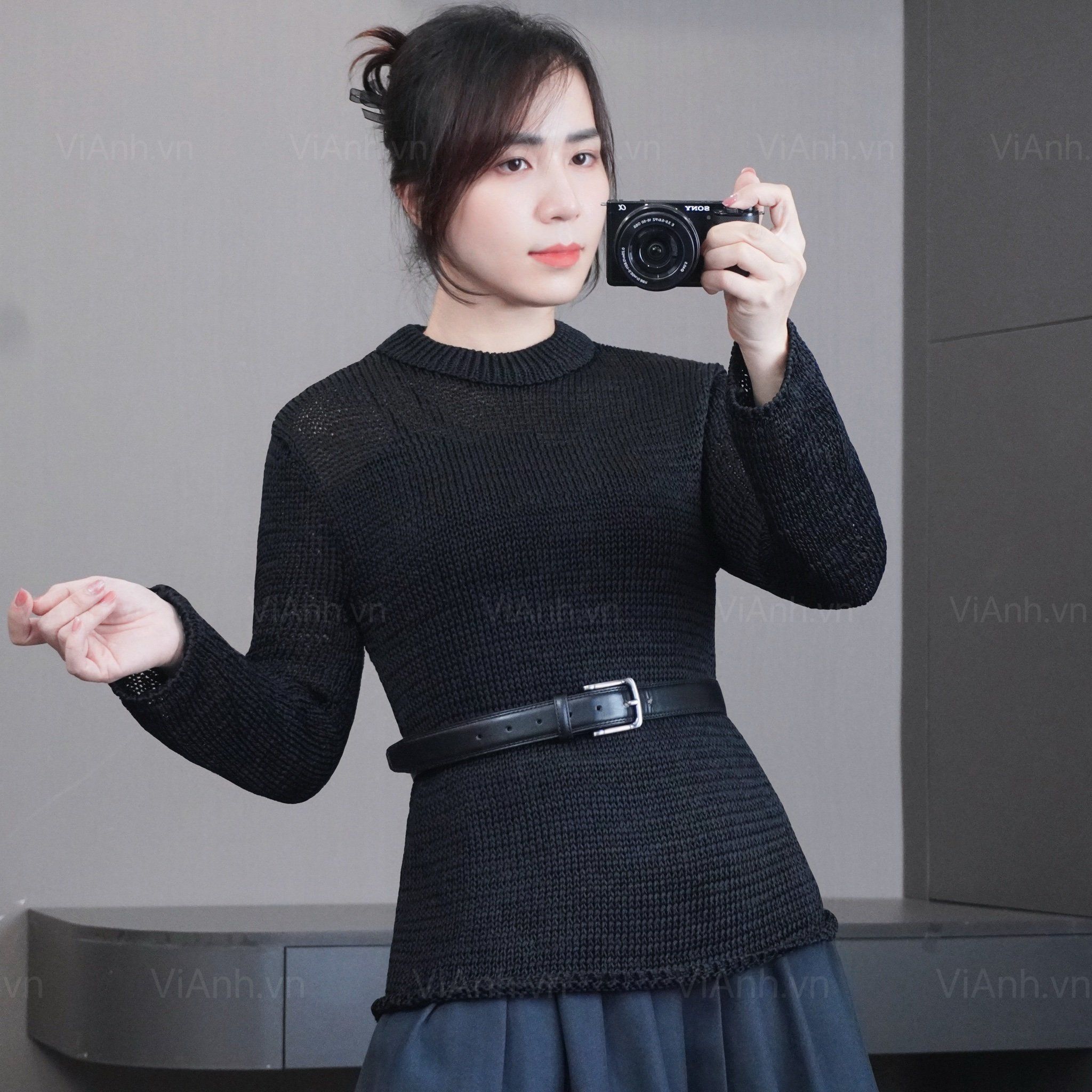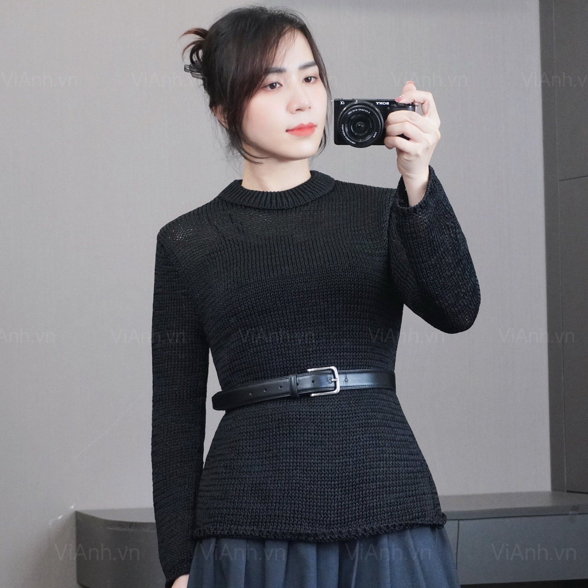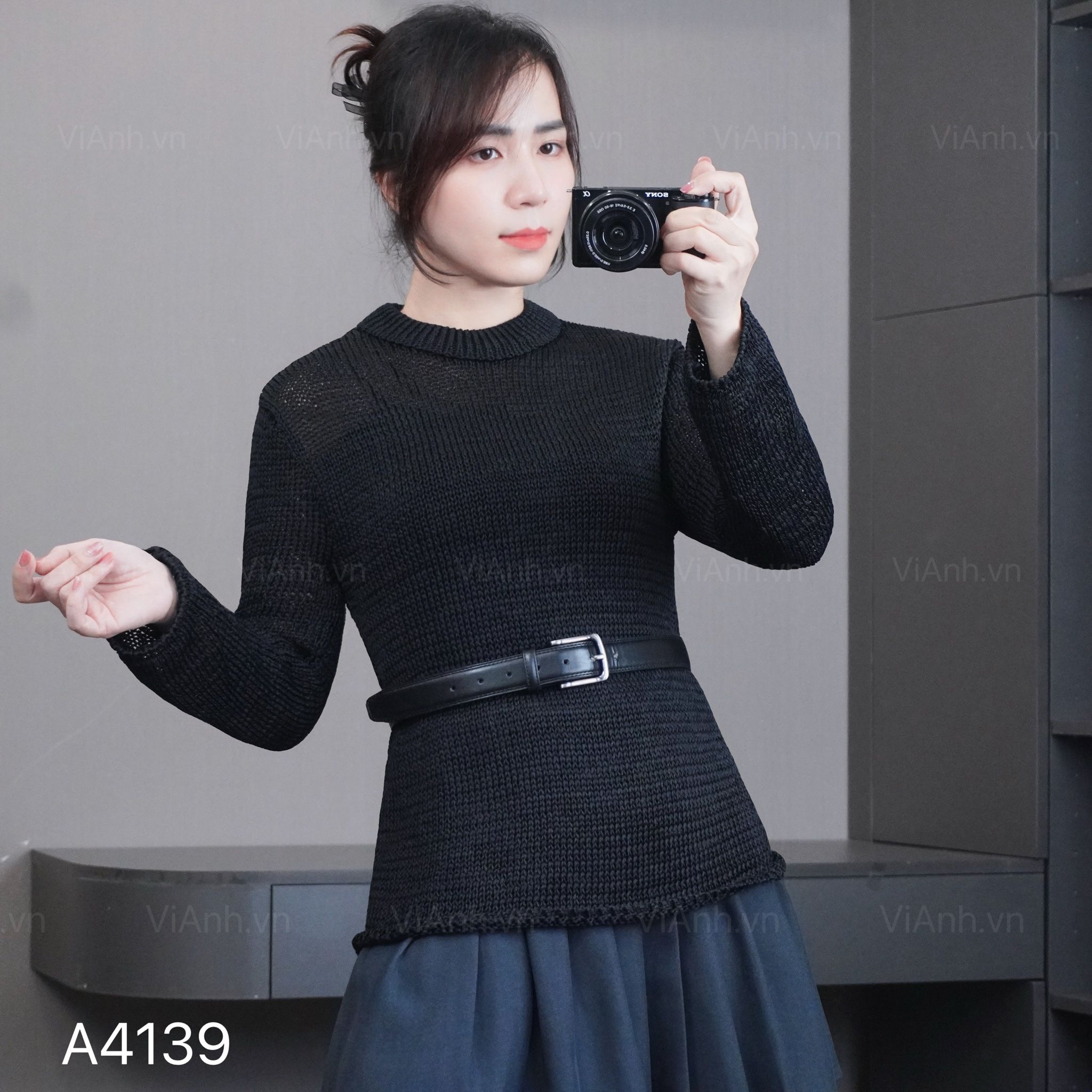 Áo len A4139 / ĐEN (ko kèm belt) ( A39 )
