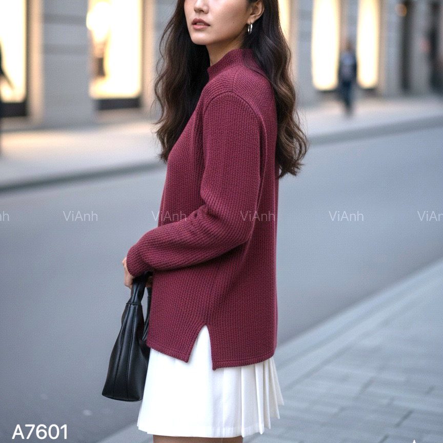 Áo len cổ 5 phân style Nhật / Ghi đen C1 - Đỏ C2 - Trắng kem C3