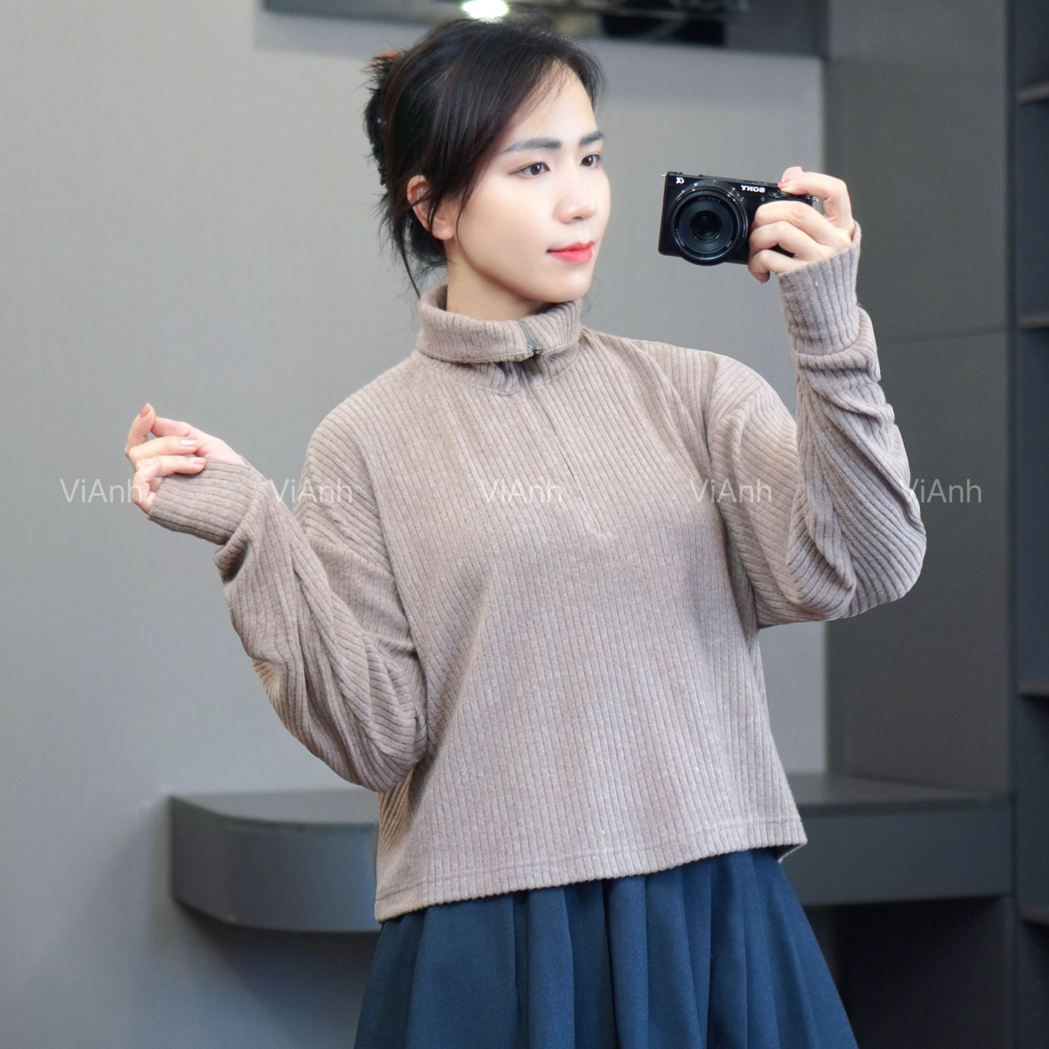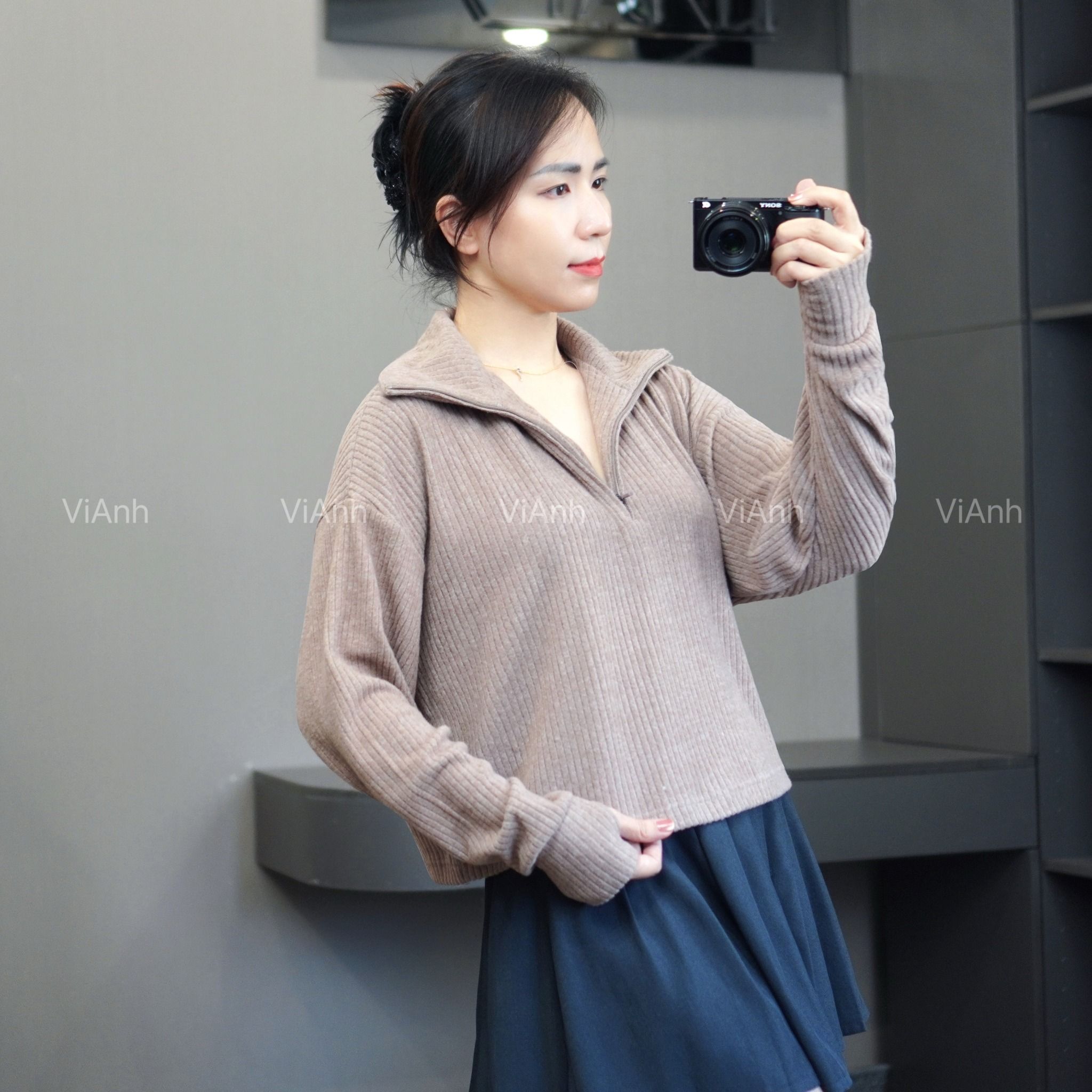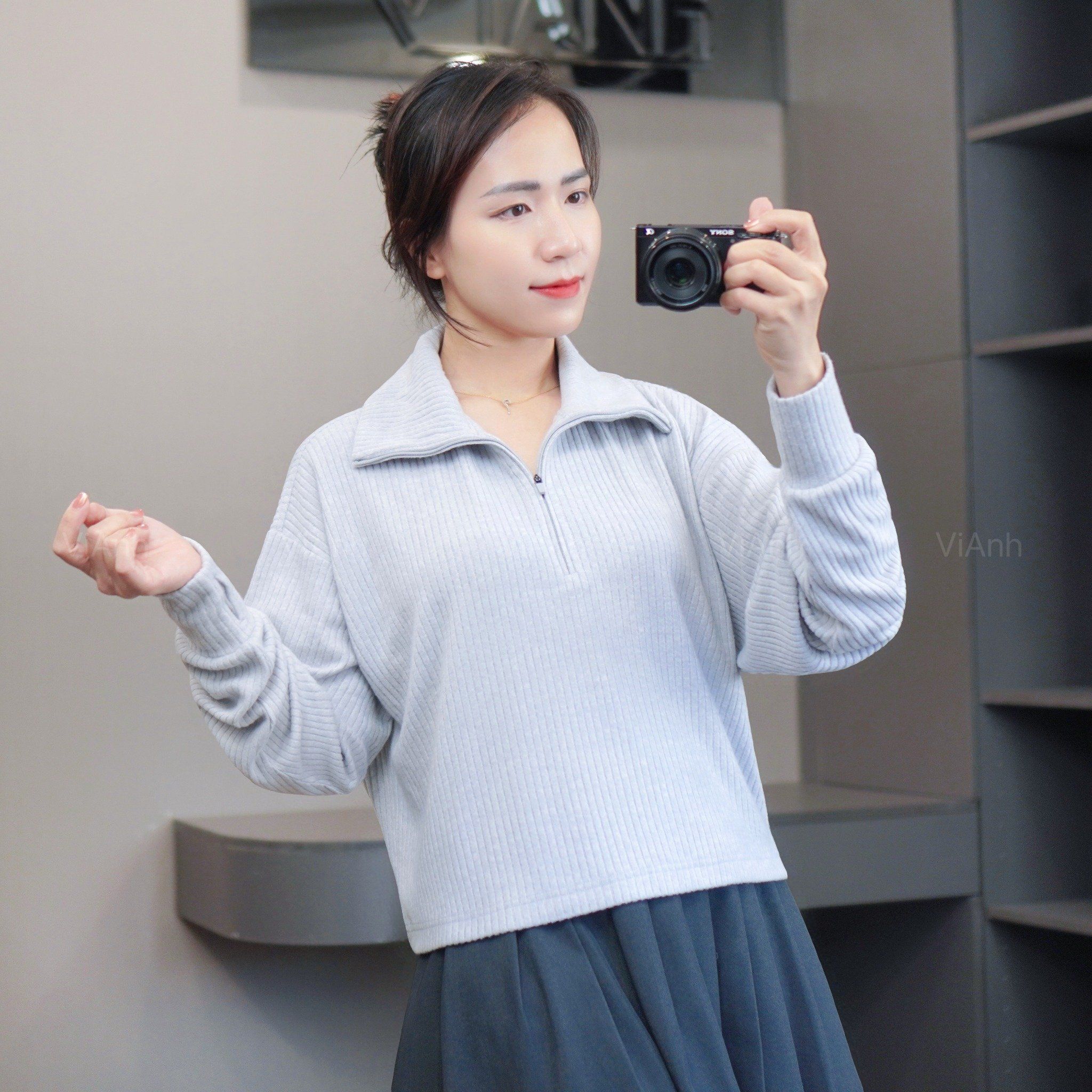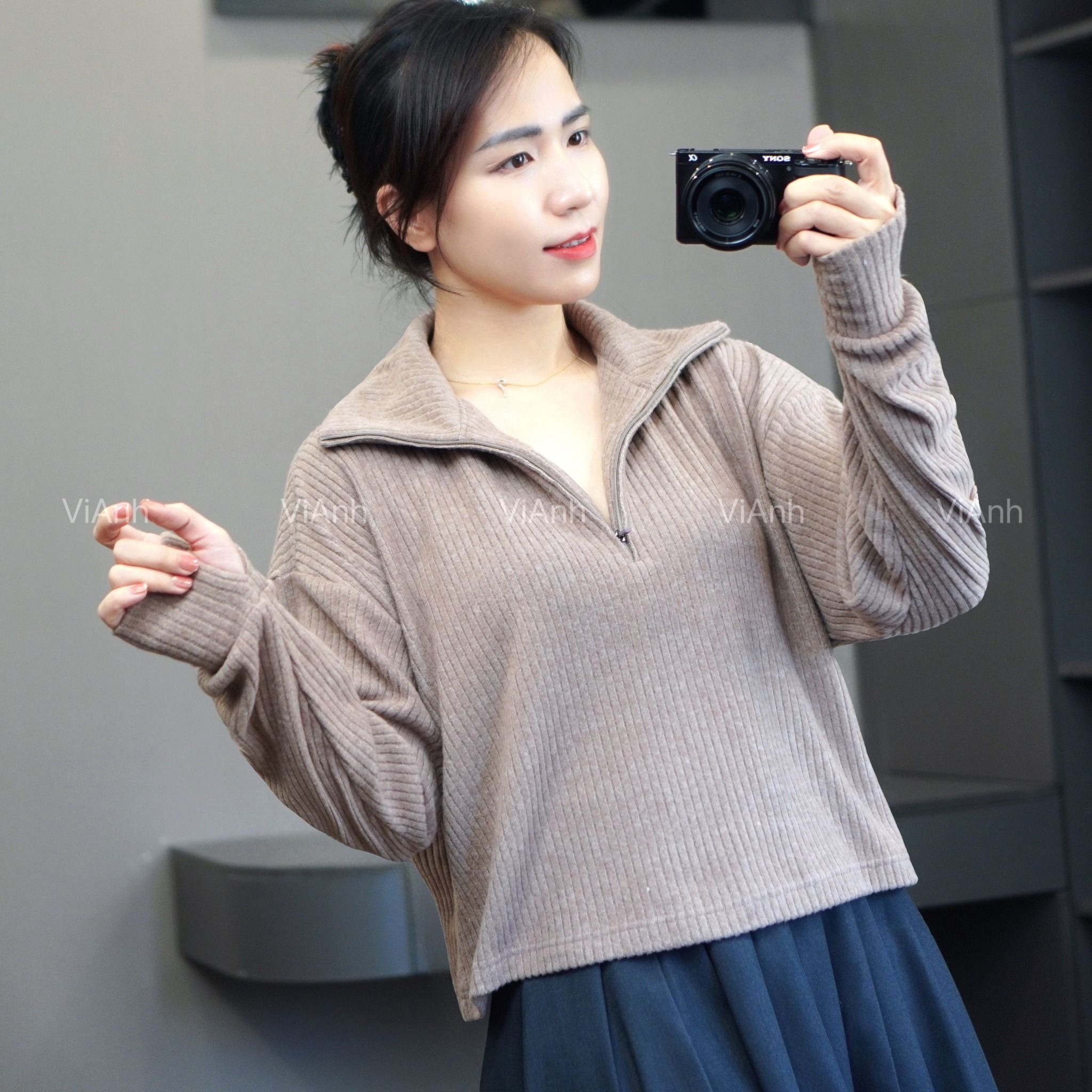 Áo len có khoá cổ STYLE ÂU MỸ ( H42 Navy / H43 Xám Xanh / H44 Nâu )