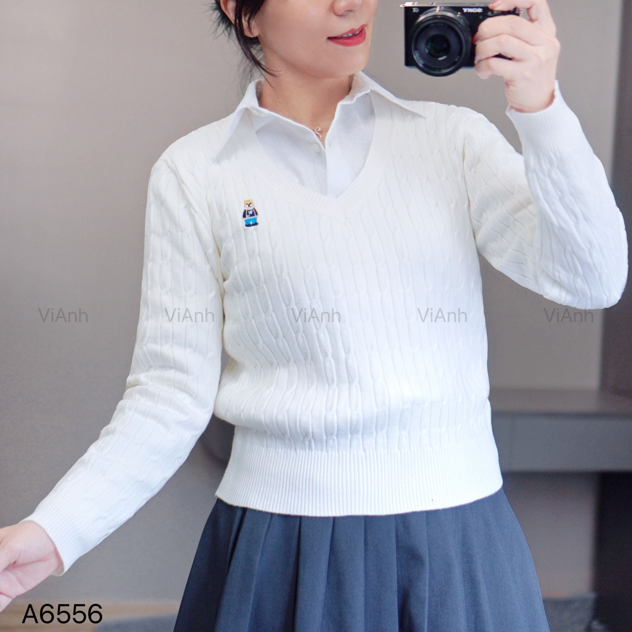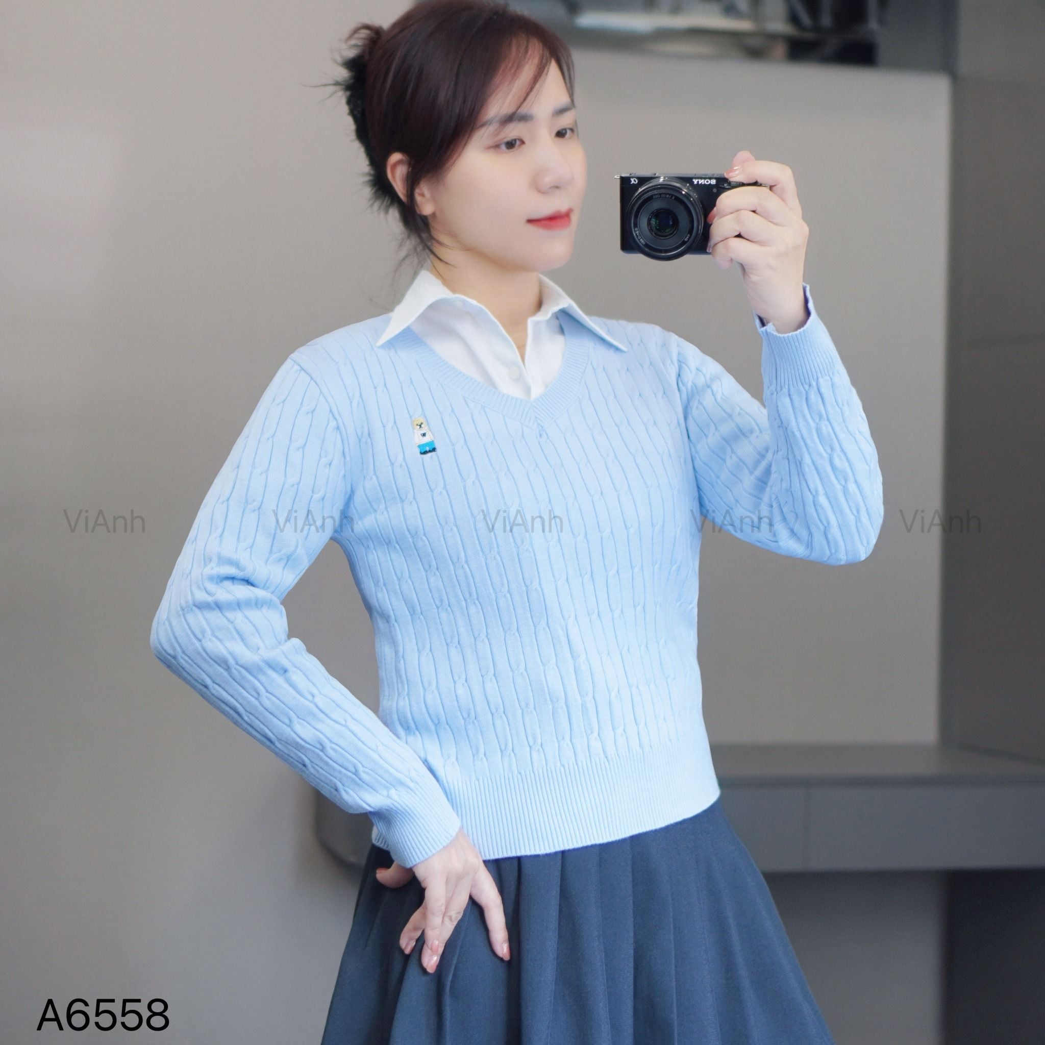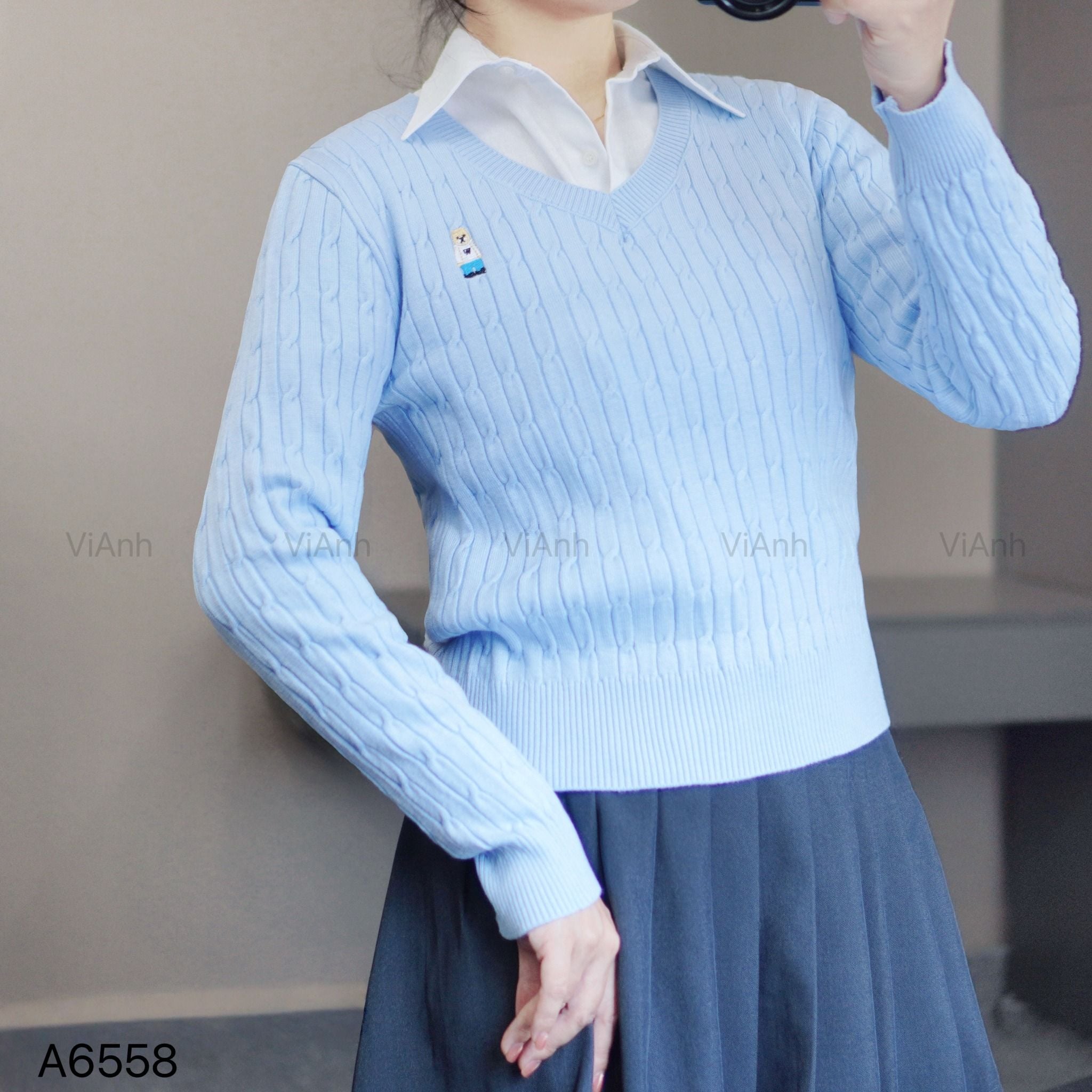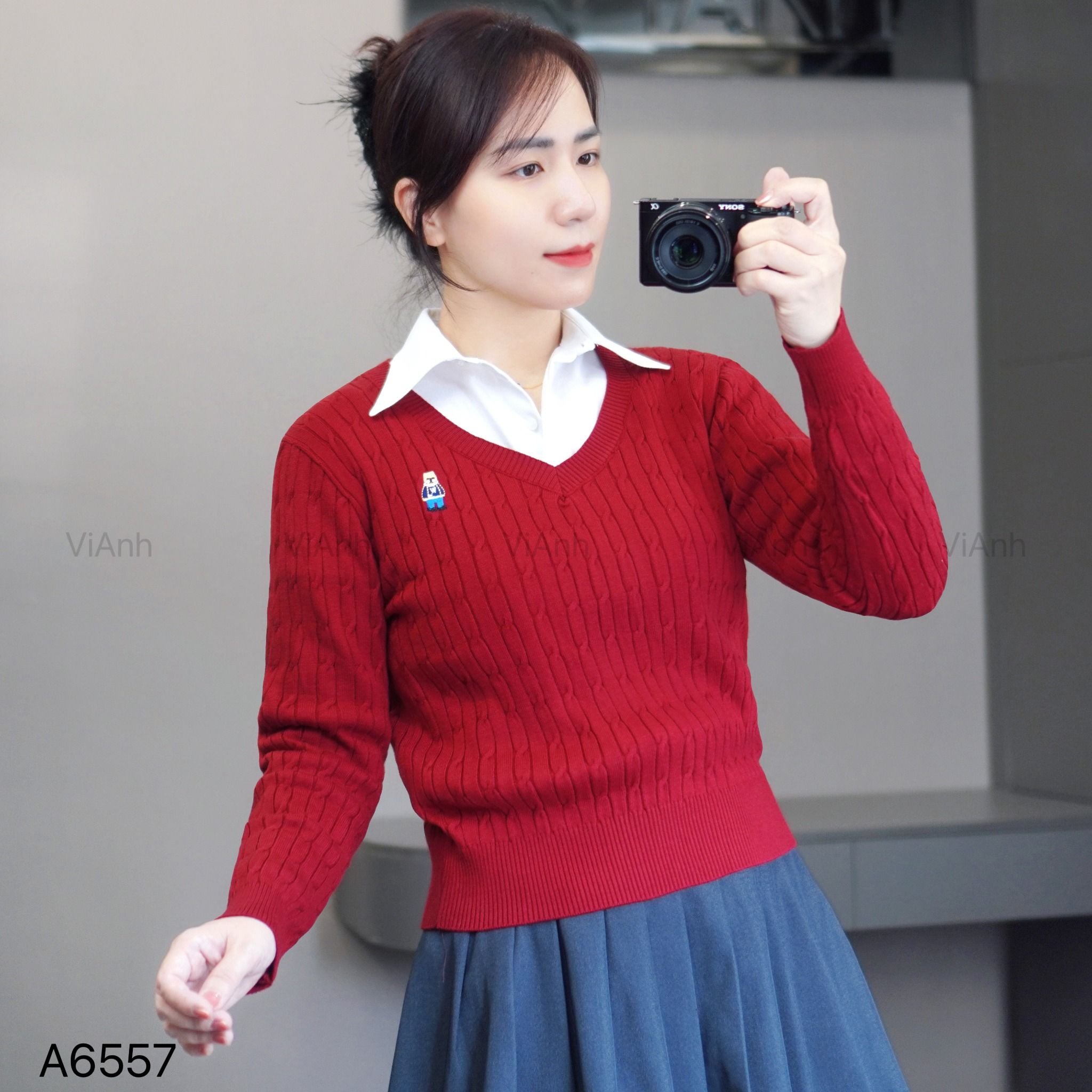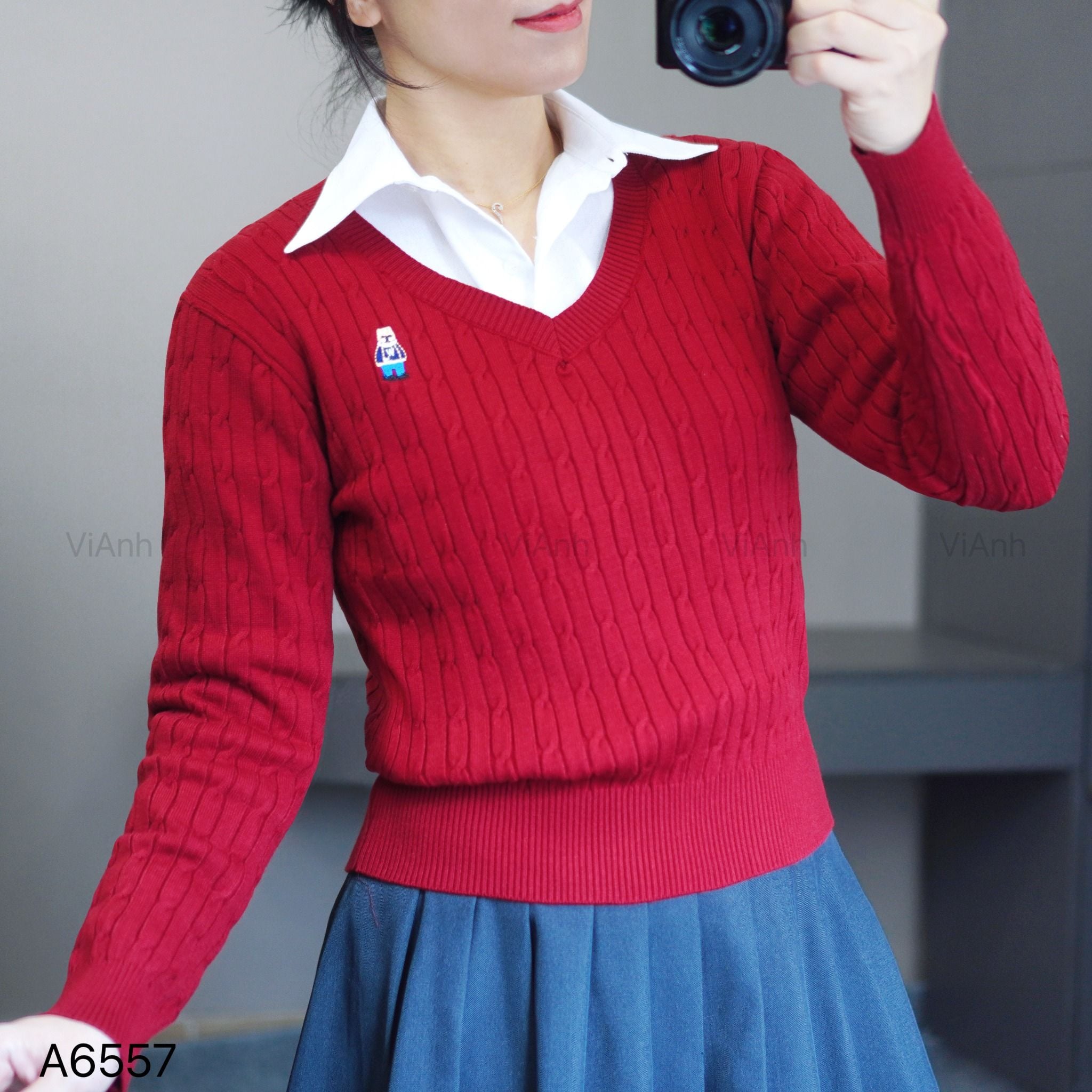 Áo len dài tay cổ tim style Hàn / E6 trắng , E7 đỏ , E8 xanh