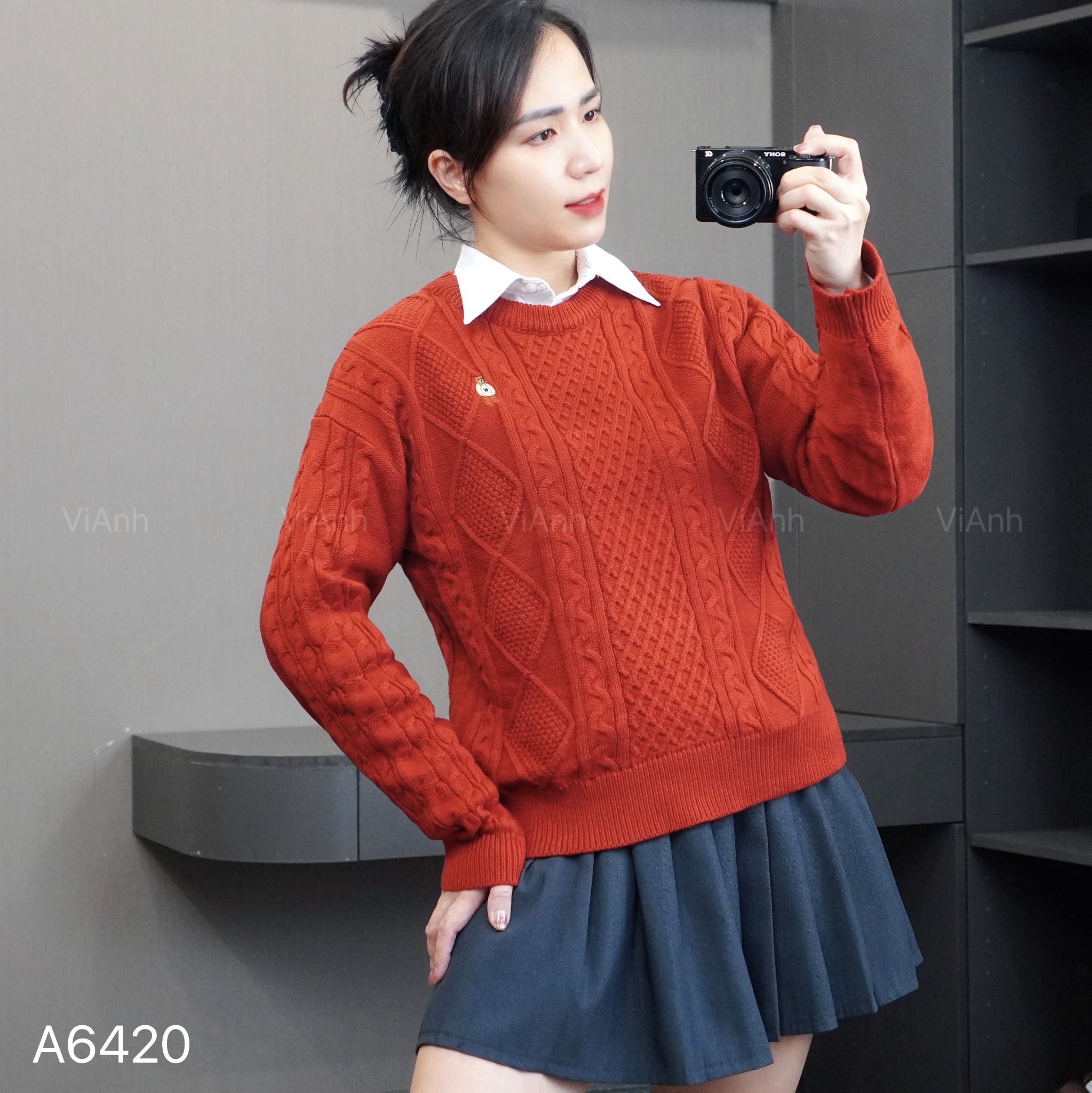 Áo A20 len dài tay style Hàn A6420 / ĐỎ