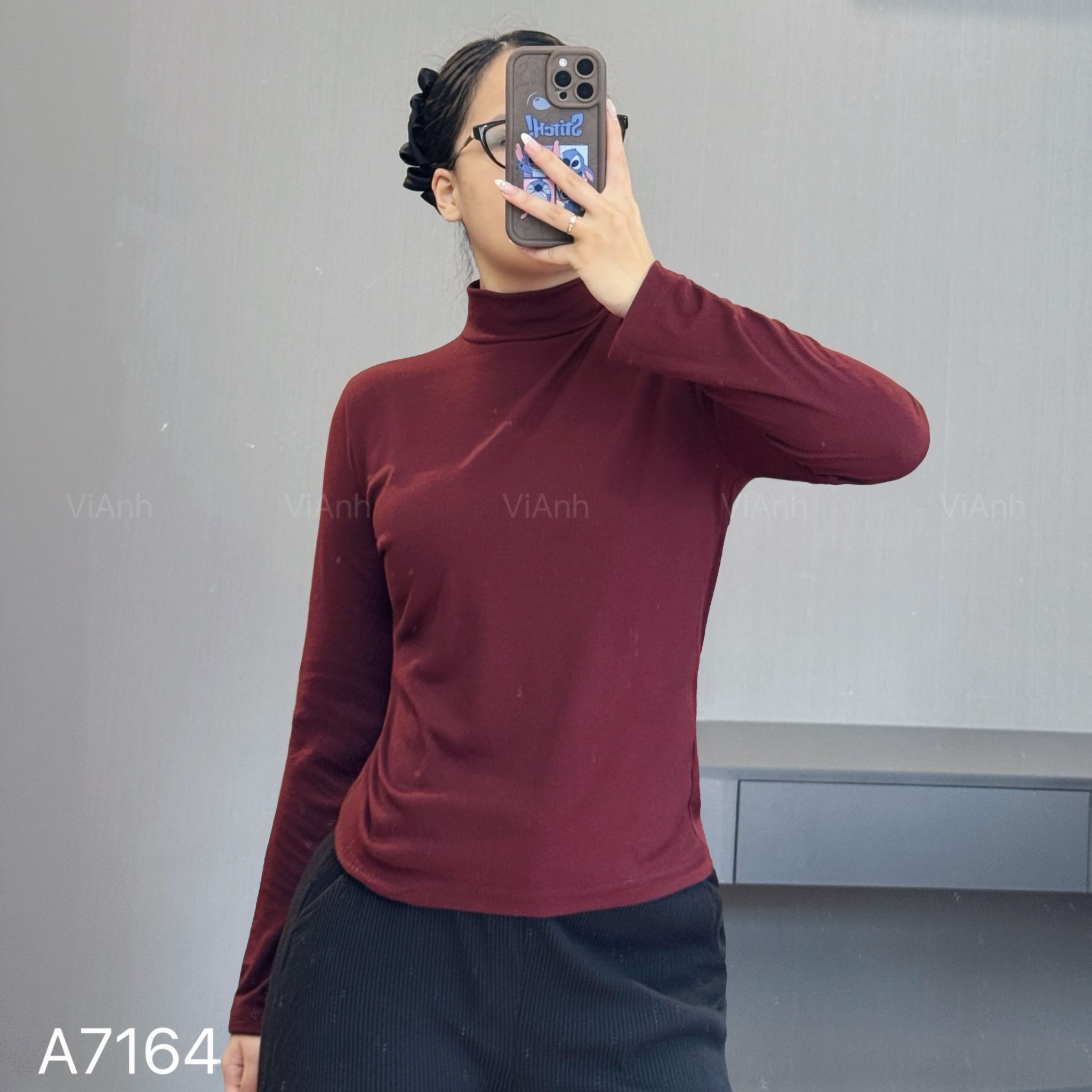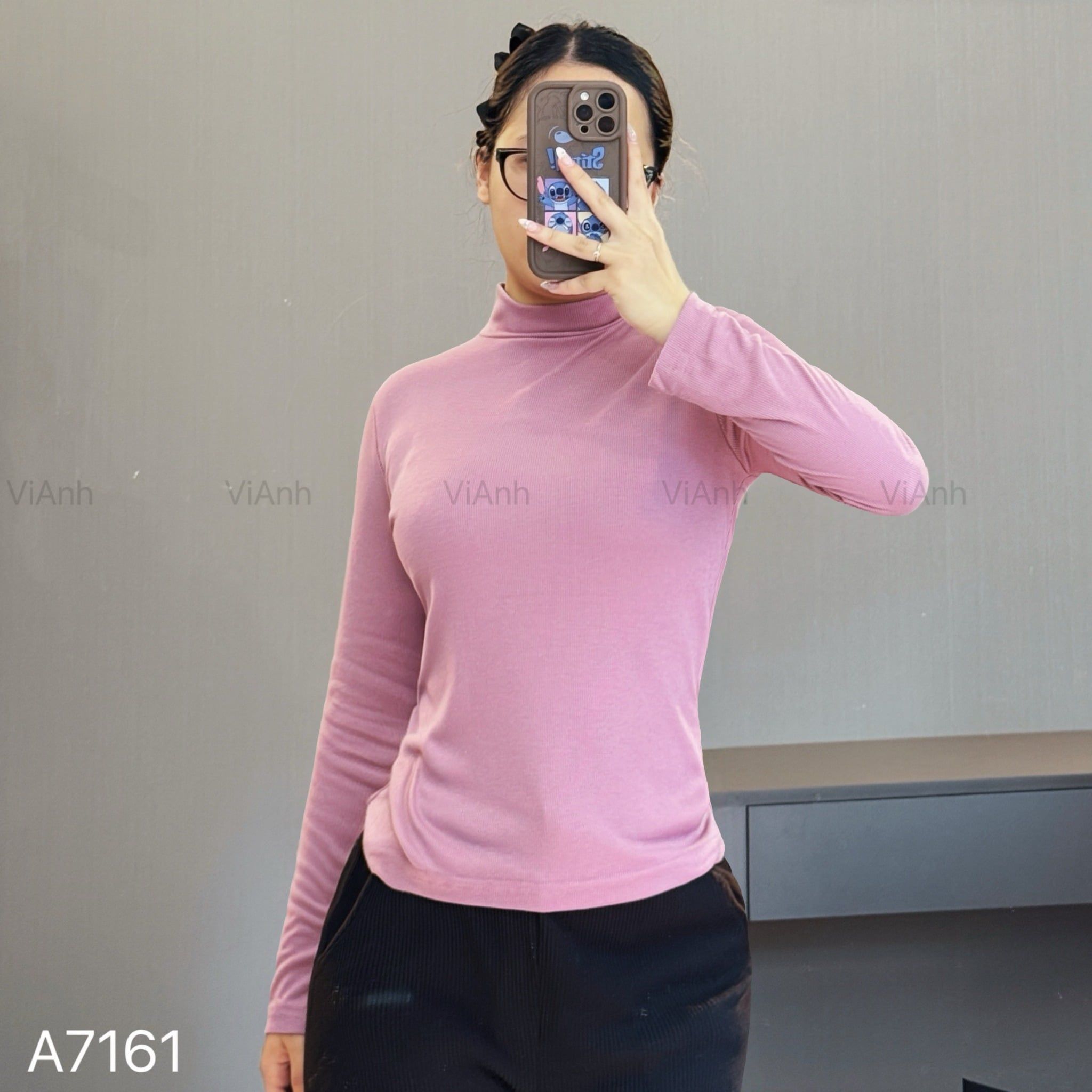 Áo len gân dài tay cao cổ Uni / Đen G60 - Hồng G61 - Nâu đỏ G63
