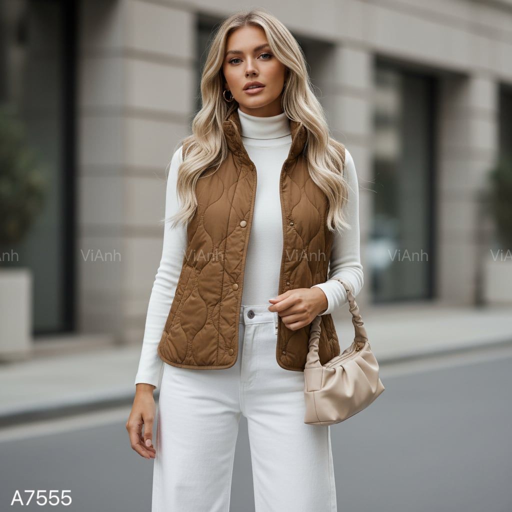 Áo phao gile trần bông style US UK / B52 TRẮNG - B55 NÂU BÒ
