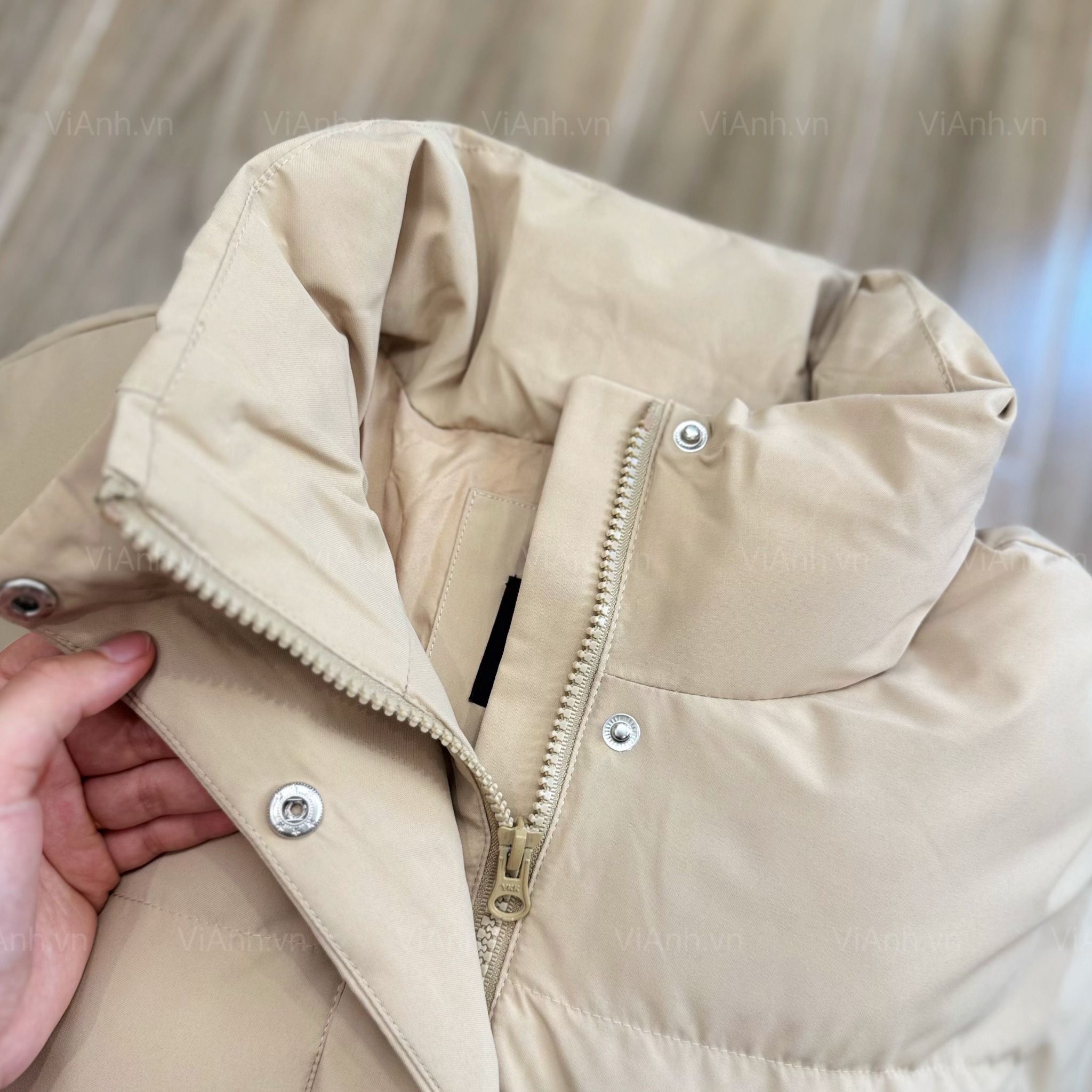 Chất liệu phao nhiều lớp dày dặn, giữ nhiệt tốt. Các chi tiết xịn sò lắm ạ, bonus thêm em Khoá kéo YKK cao cấp, bền bỉ, tinh tế.