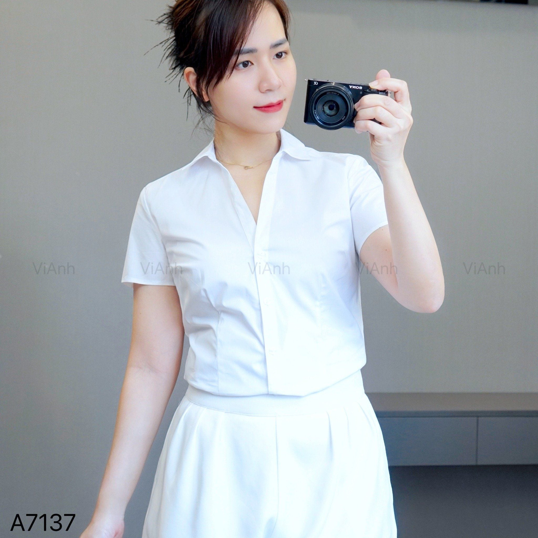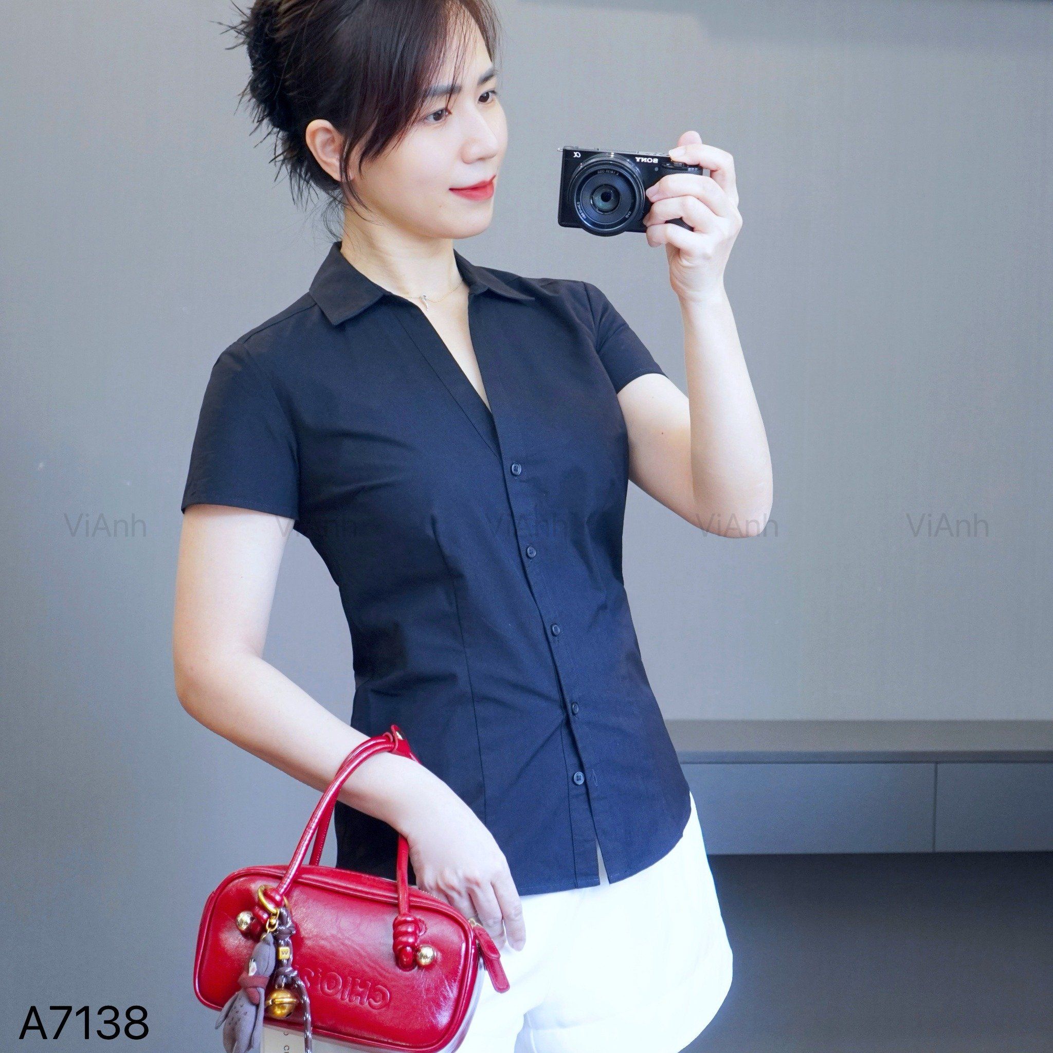 Áo sơ mi ngắn tay xuất xịn / V7 trắng - V8 đen
