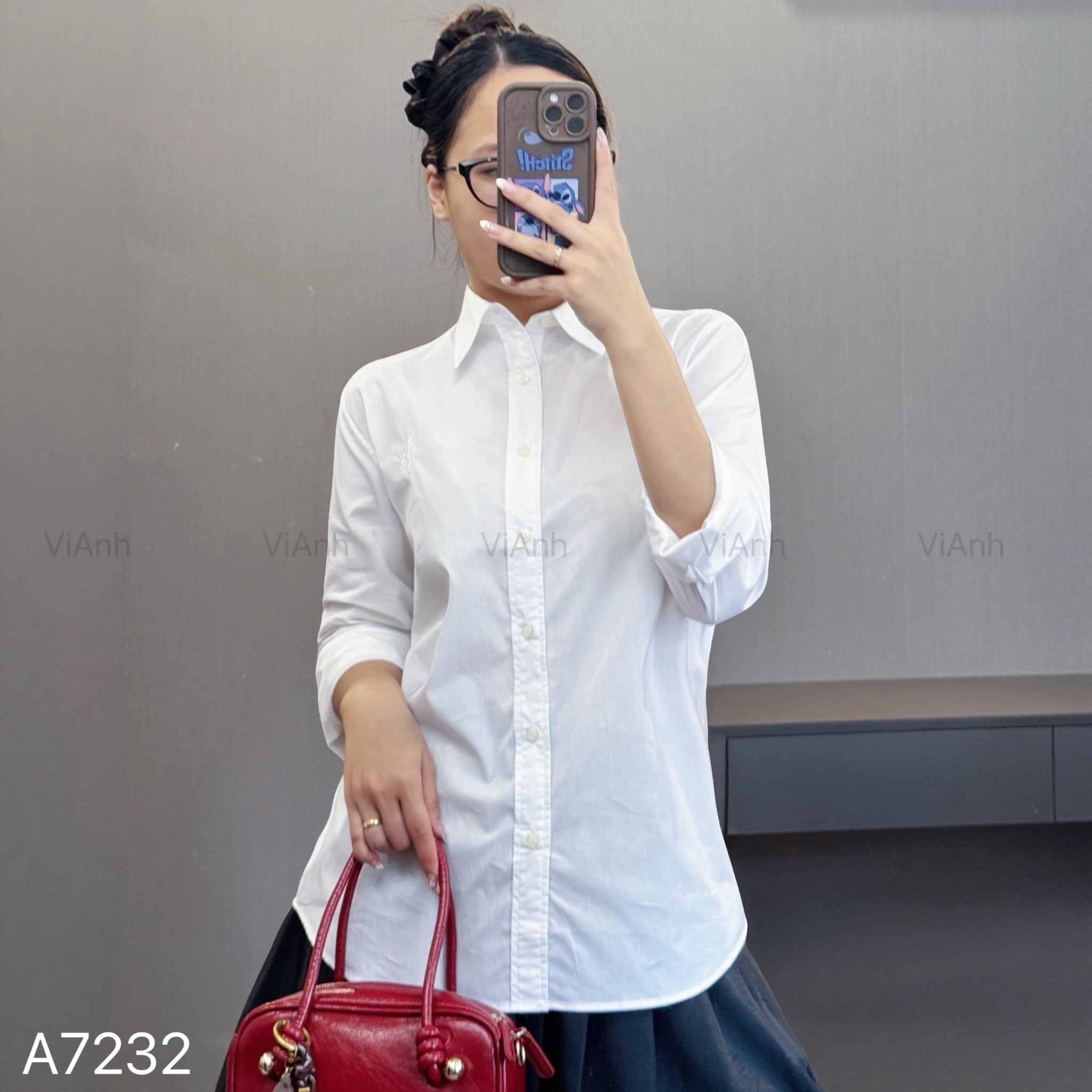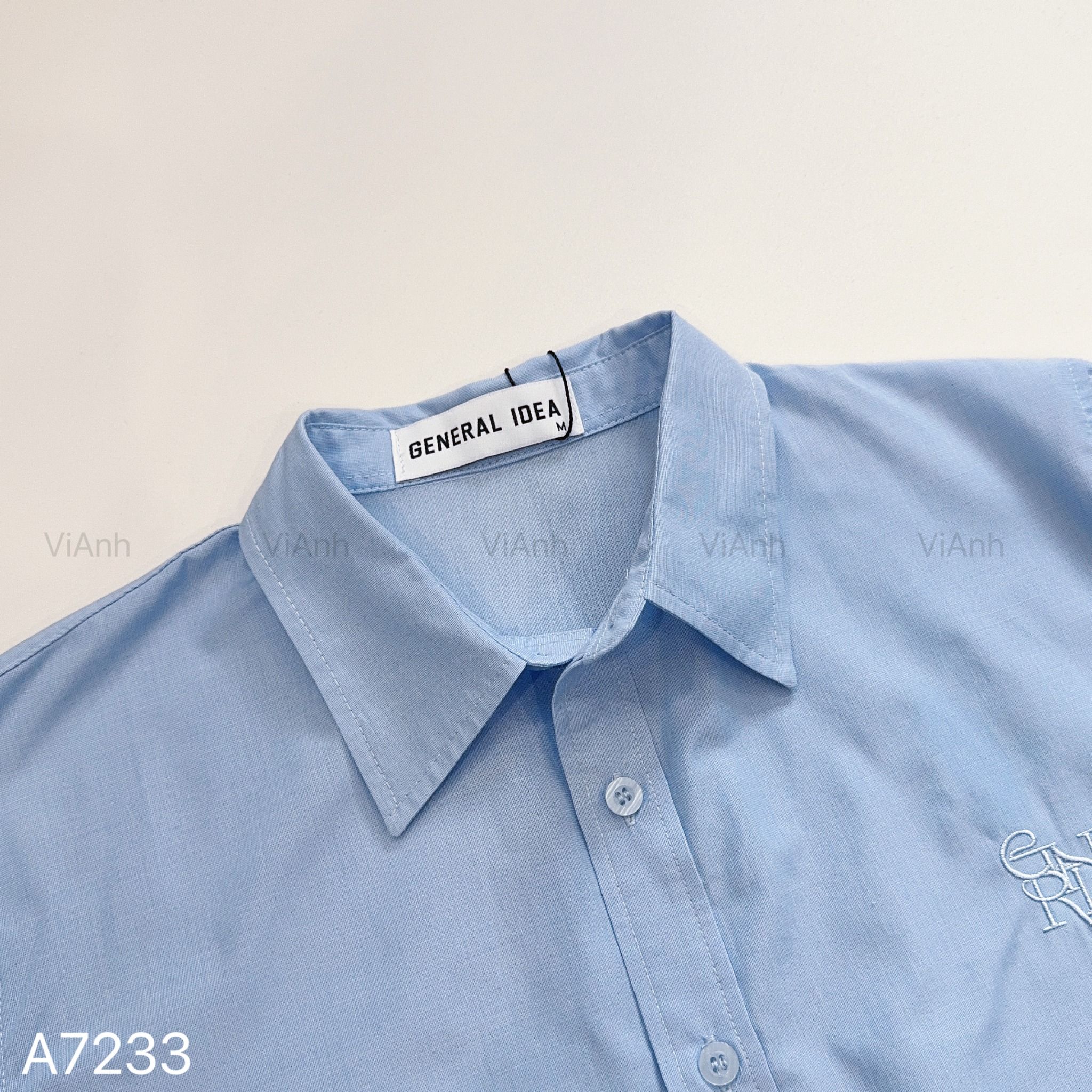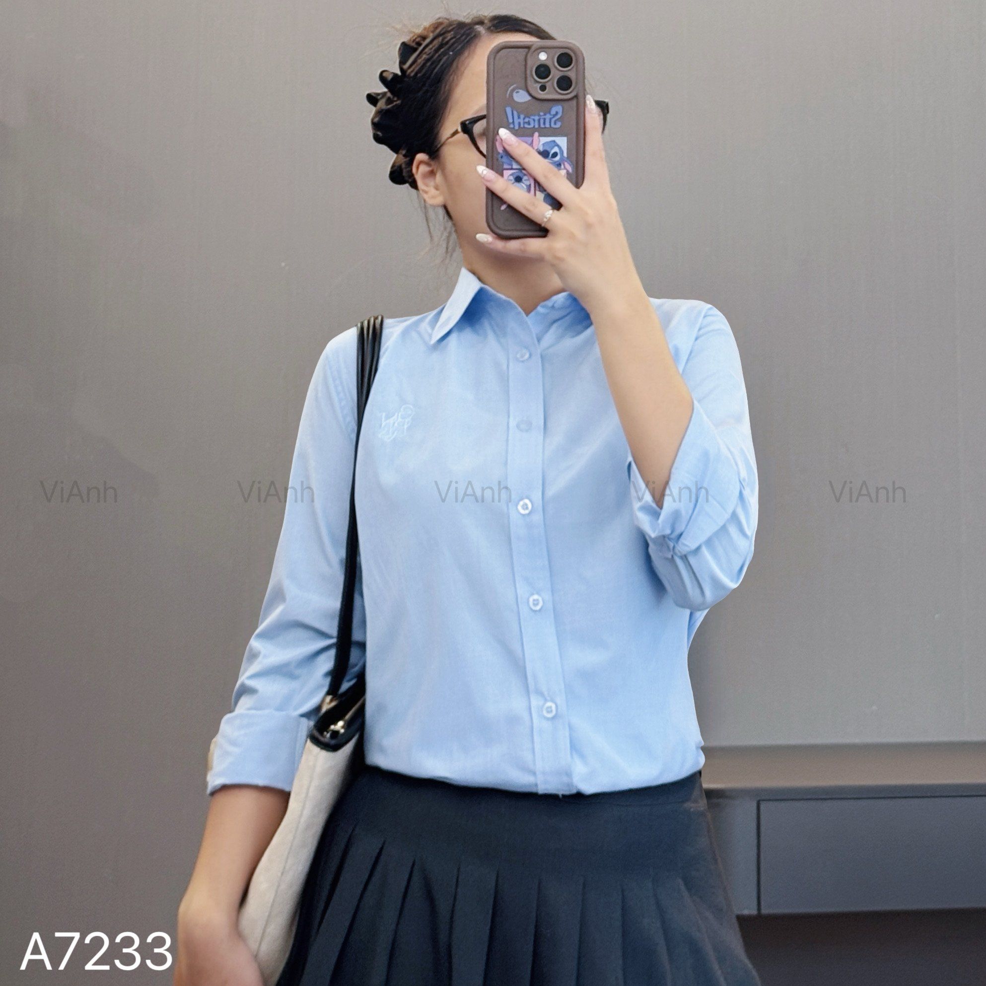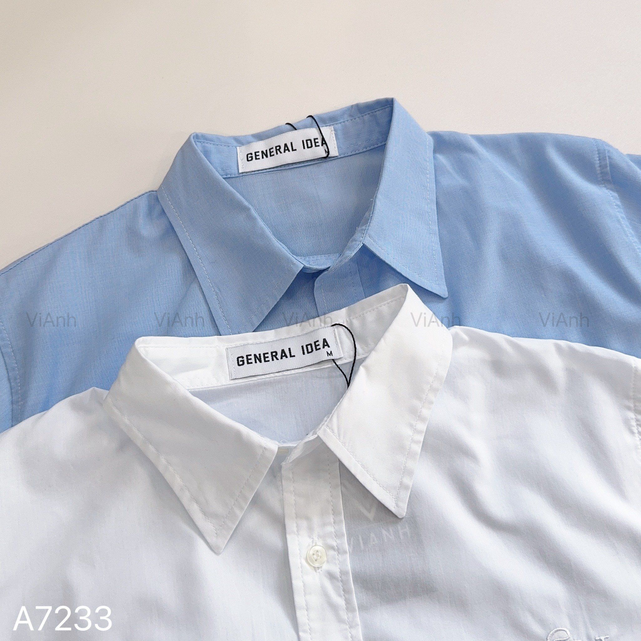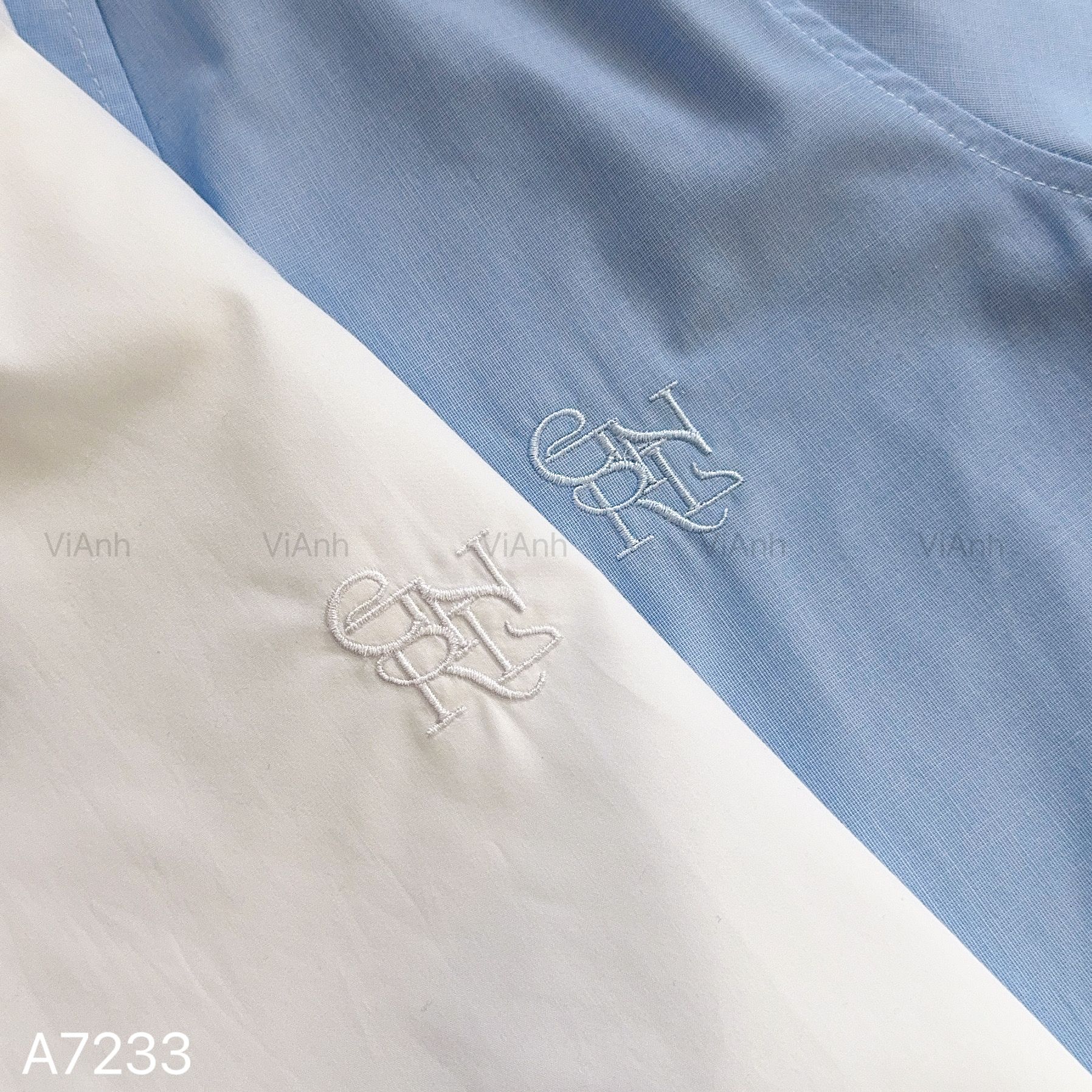 Áo sơ mi thêu chữ ngực style US UK / V2 trắng - V3 xanh