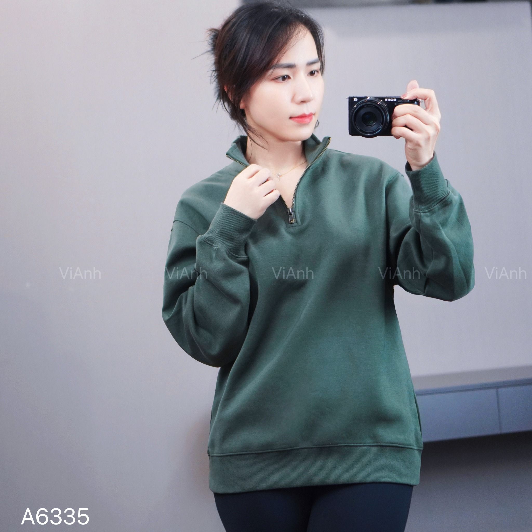 Áo A5 sweater có khoá kéo cổ xuất Âu A6335 / XANH LÁ
