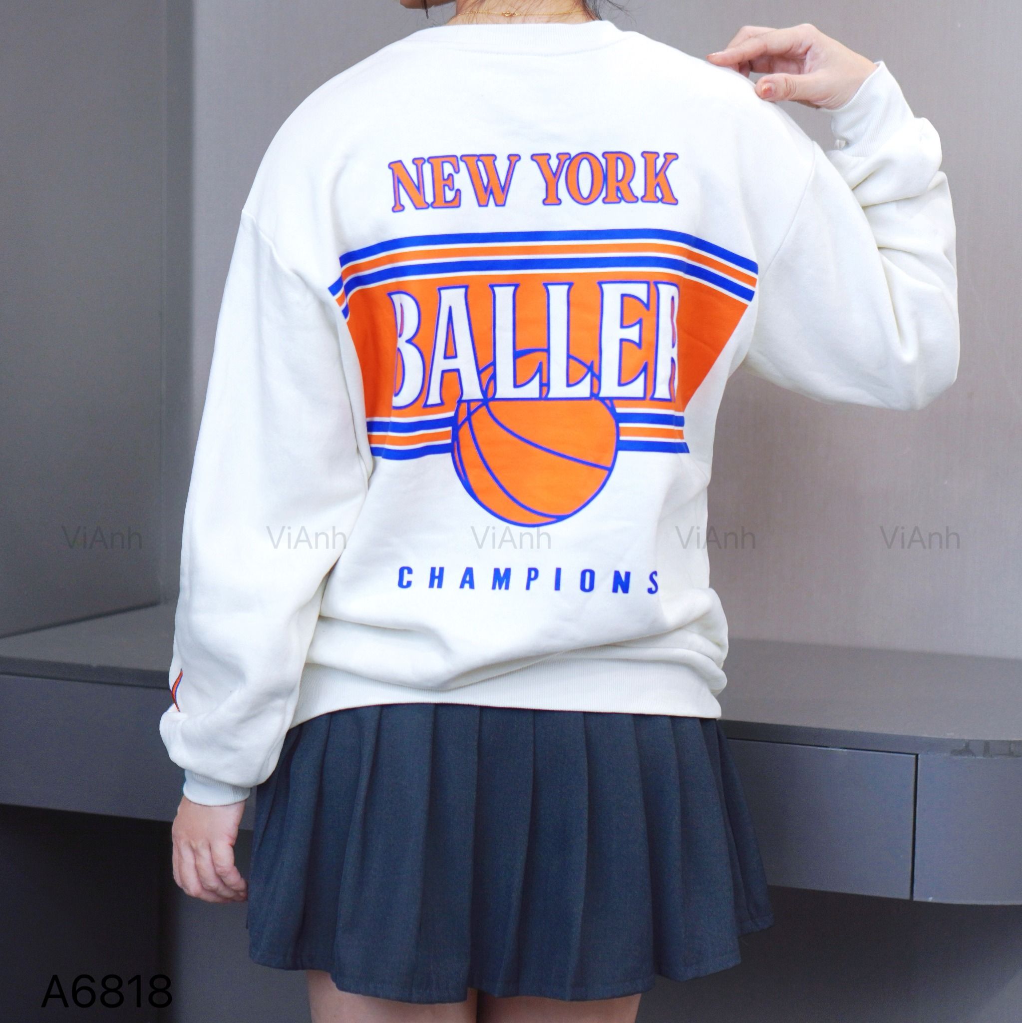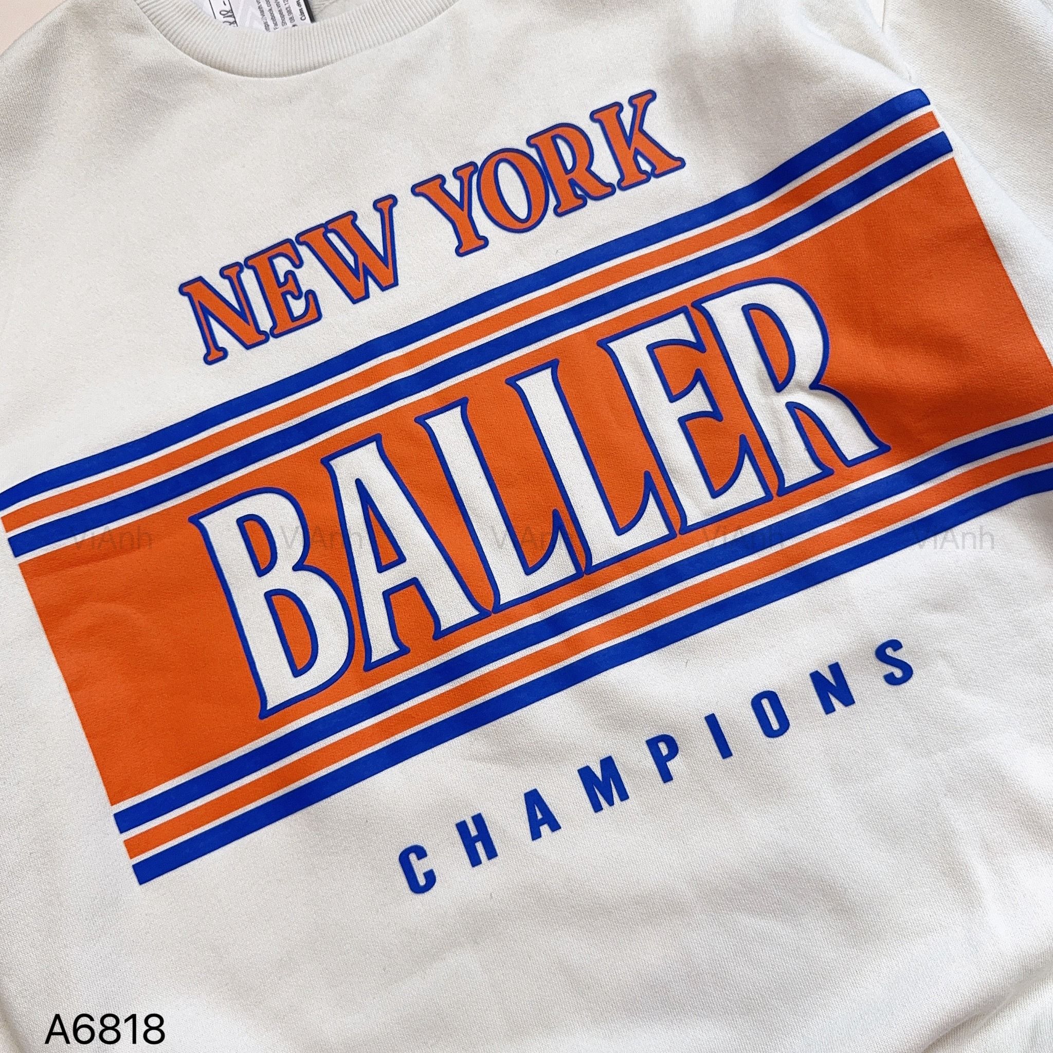 Áo sweater in chữ Cotton Classic / Size: M / TRẮNG KEM
