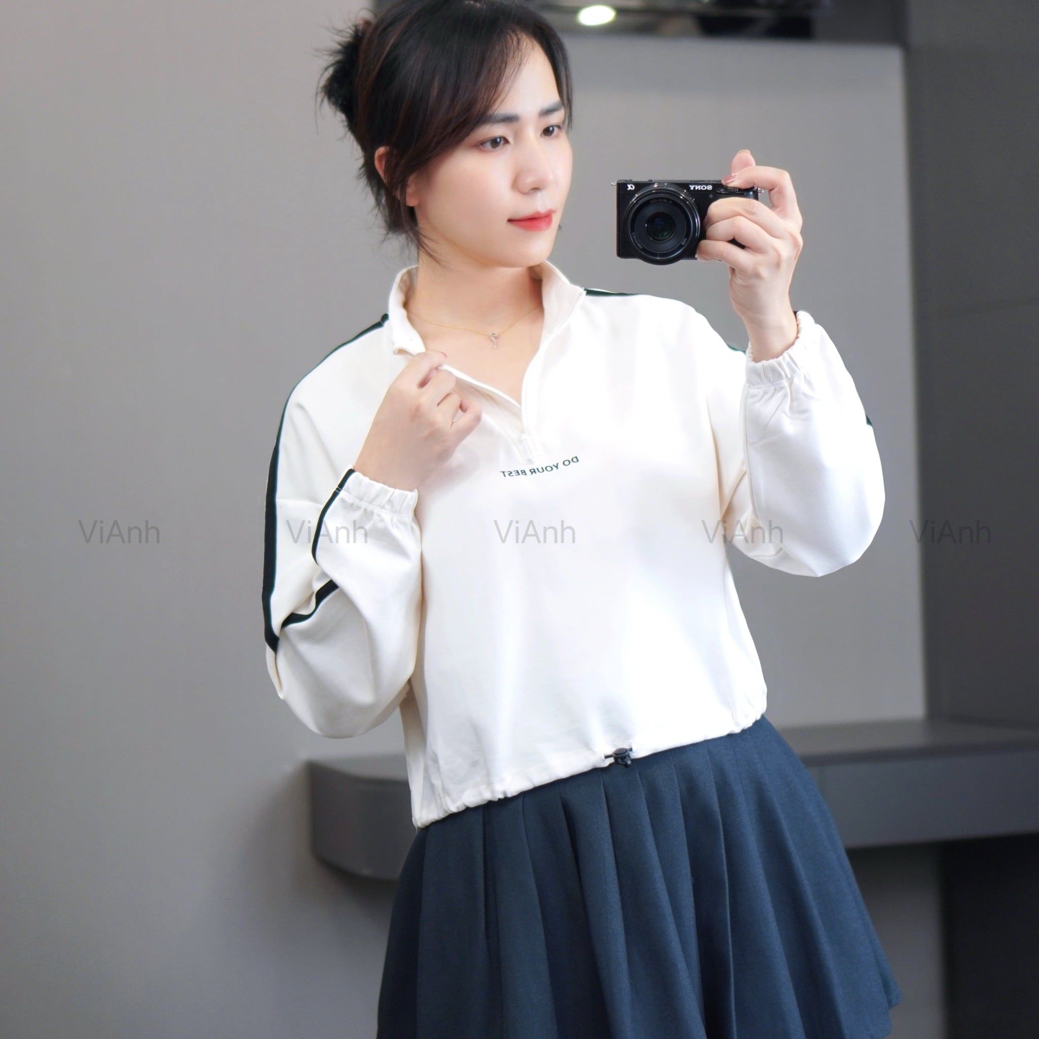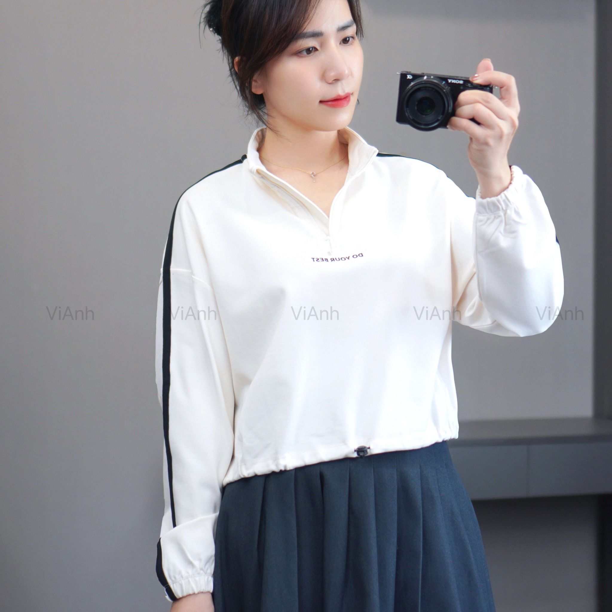 Áo sweater khoá cổ style Âu G/J ( G7 trắng sọc đen / G8 đen sọc trắng )