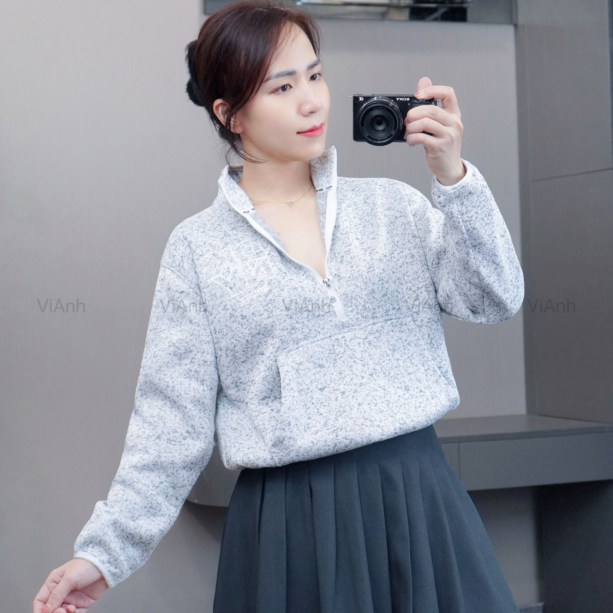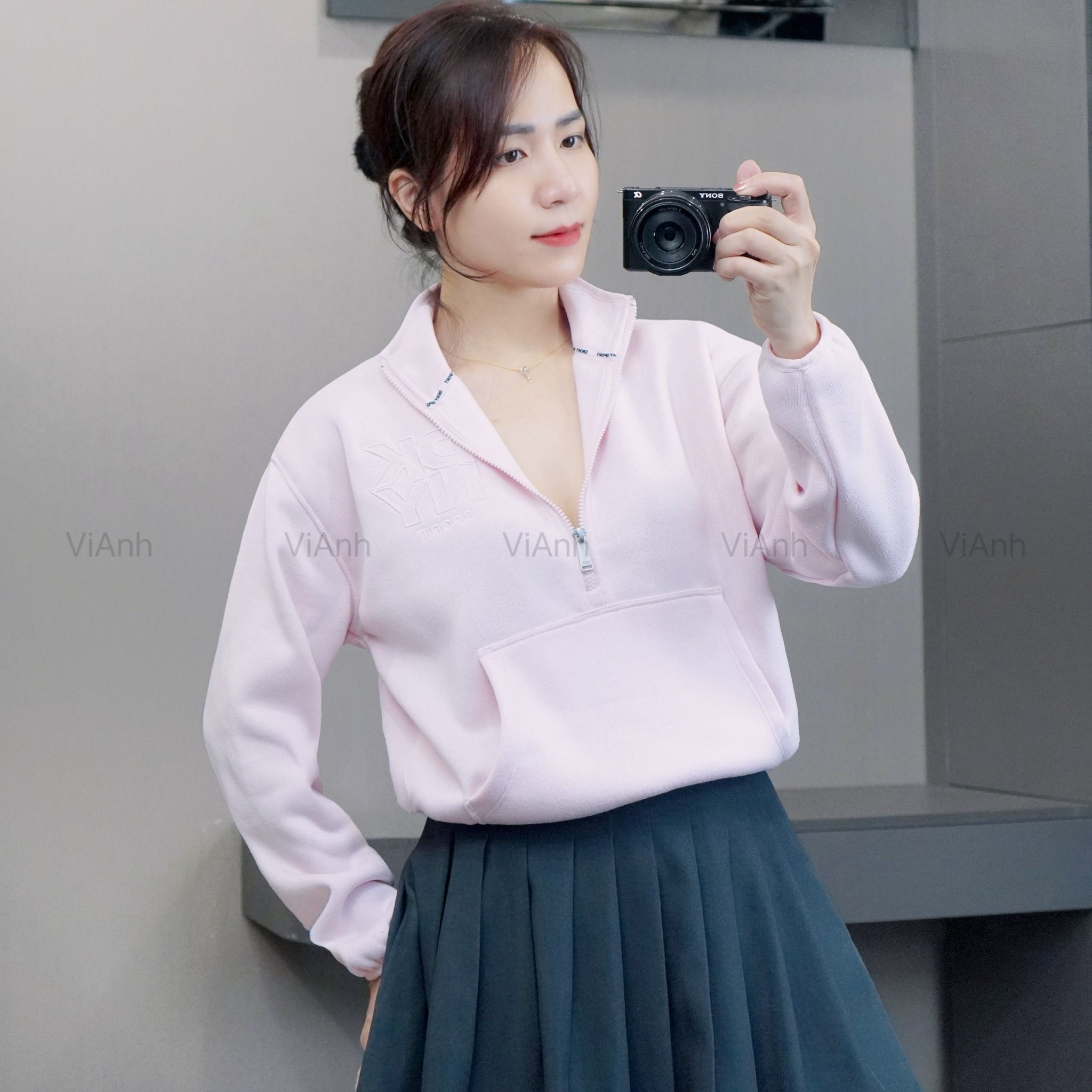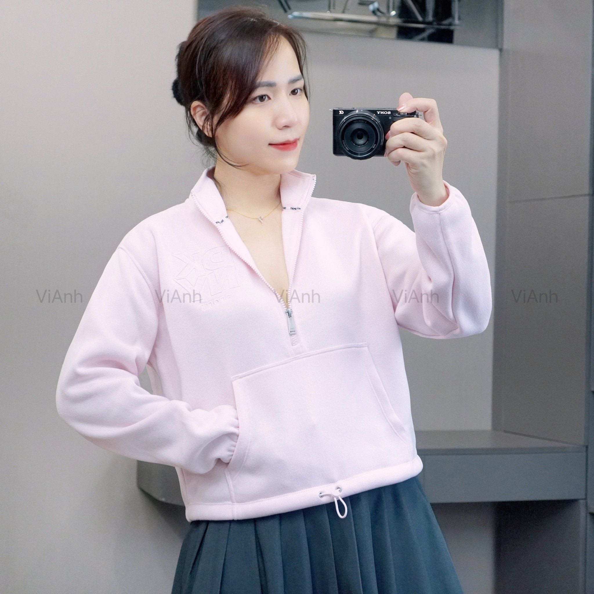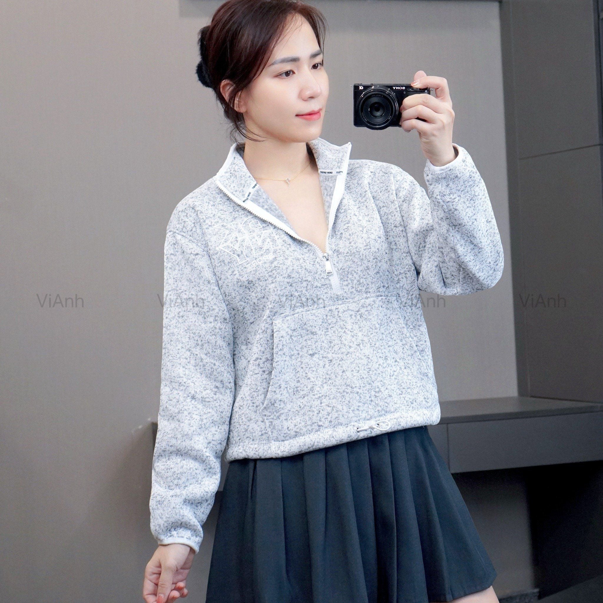 Áo sweater khoá cổ Style Âu Mỹ / E5 hồng - E6 xám