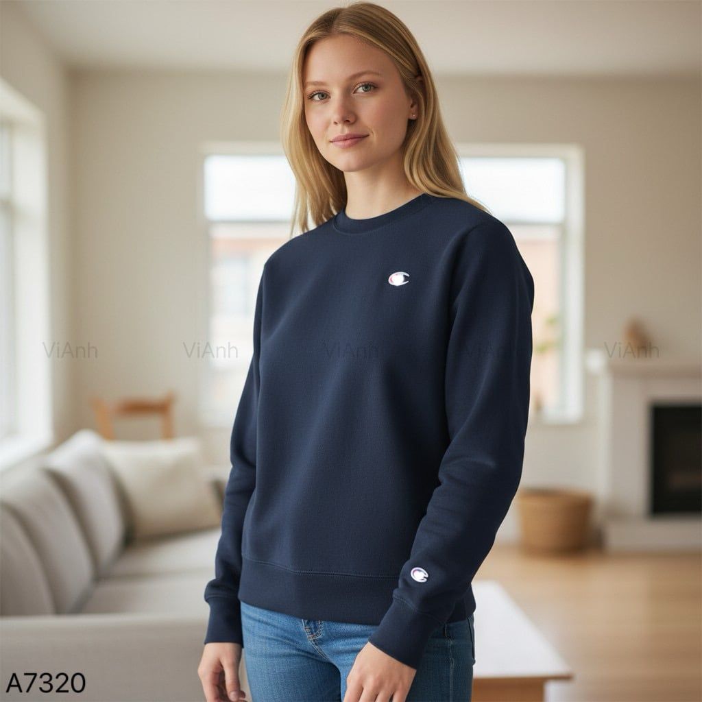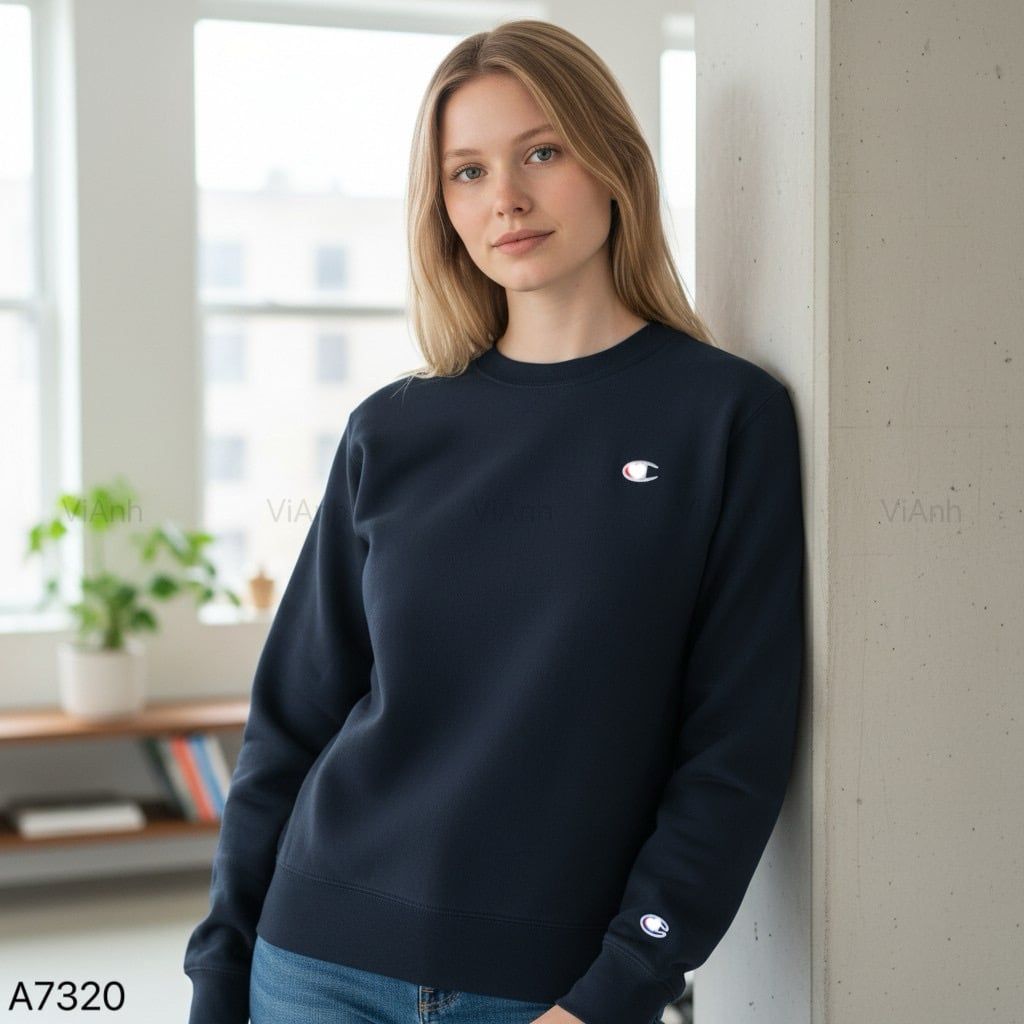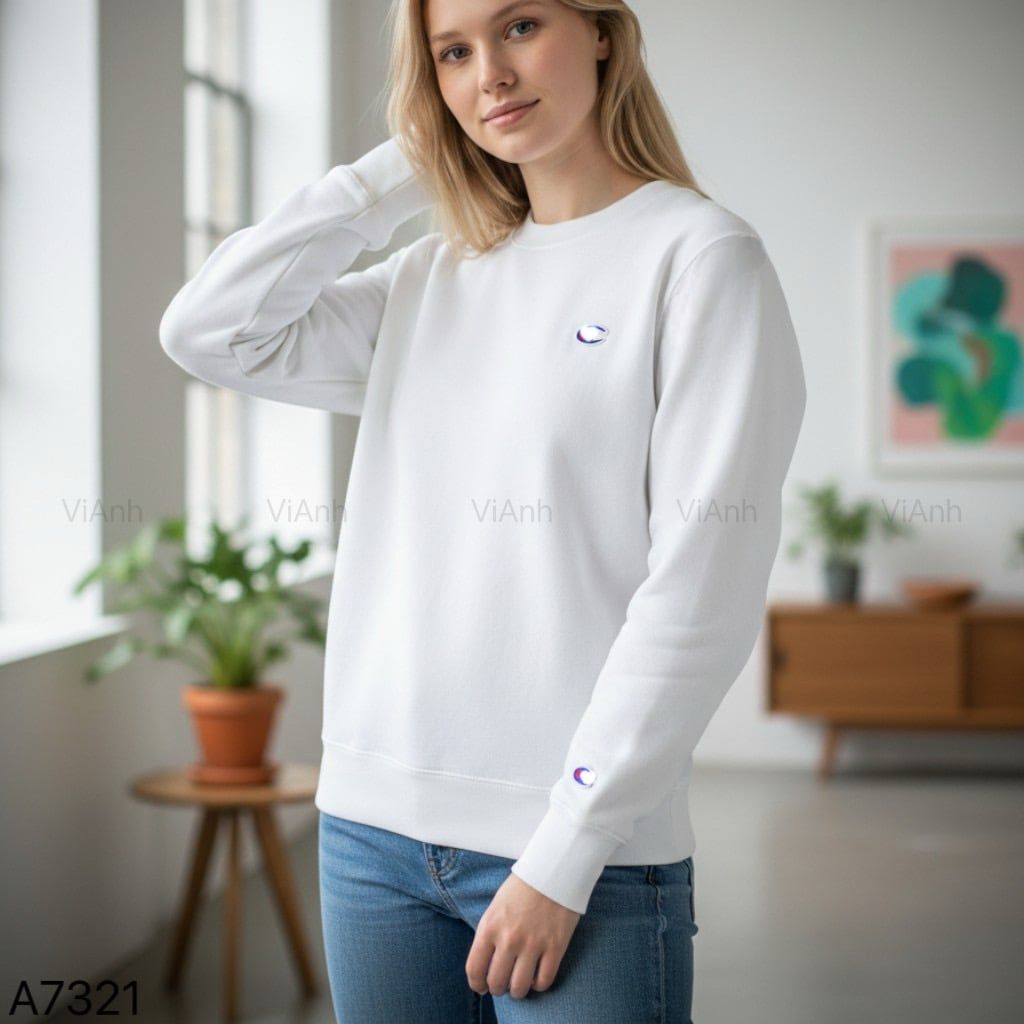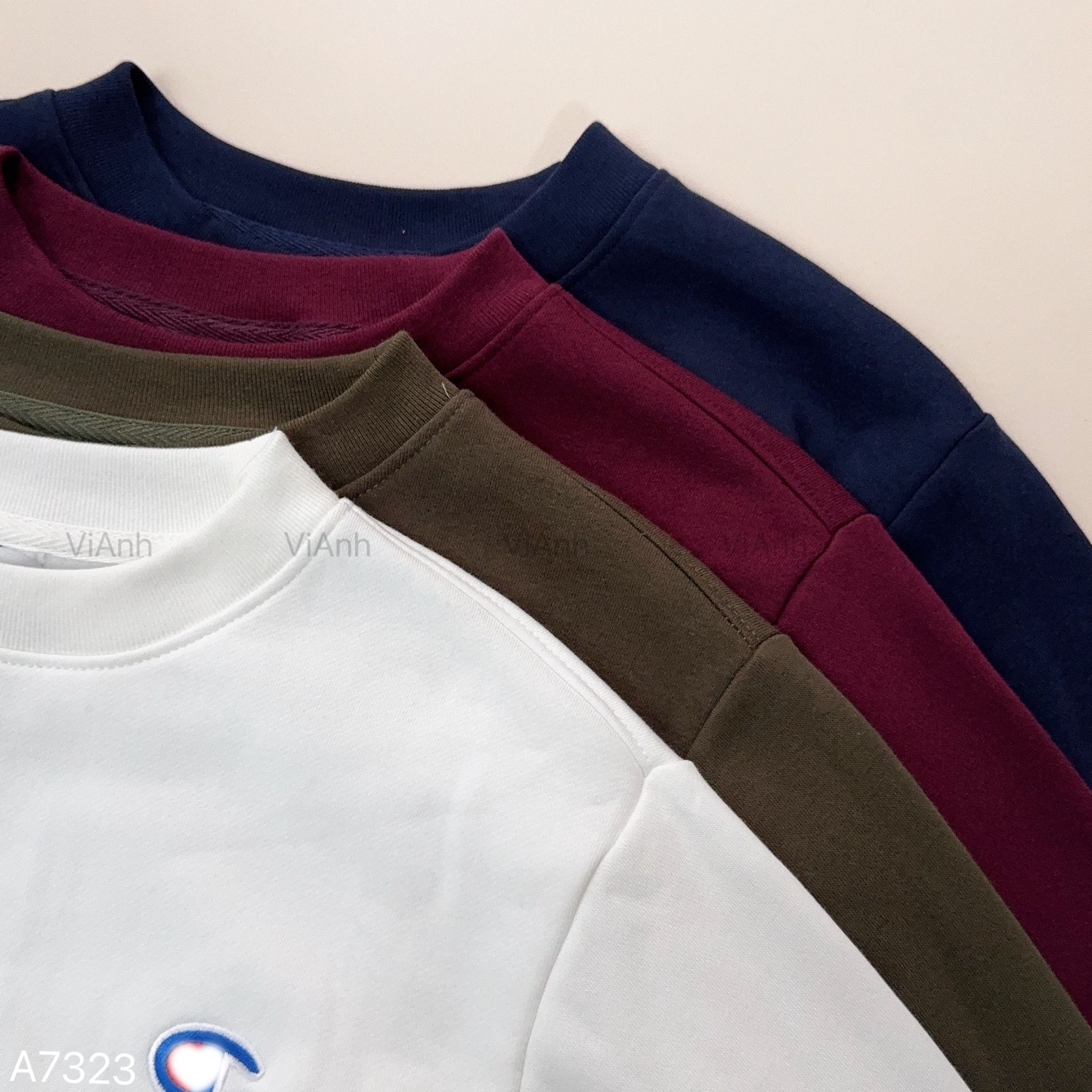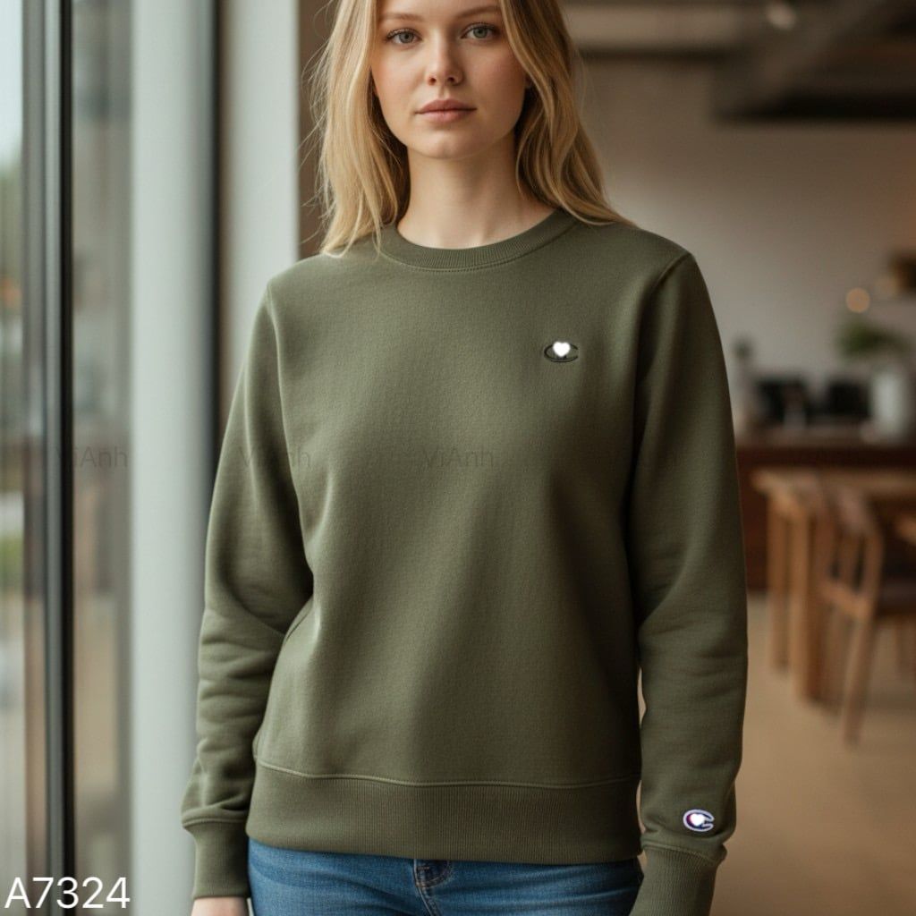 Áo sweater nỉ thêu logo ngực style US UK / Trắng C21 - Đỏ mận C23 - Xanh lá C24 - Xanh than C26