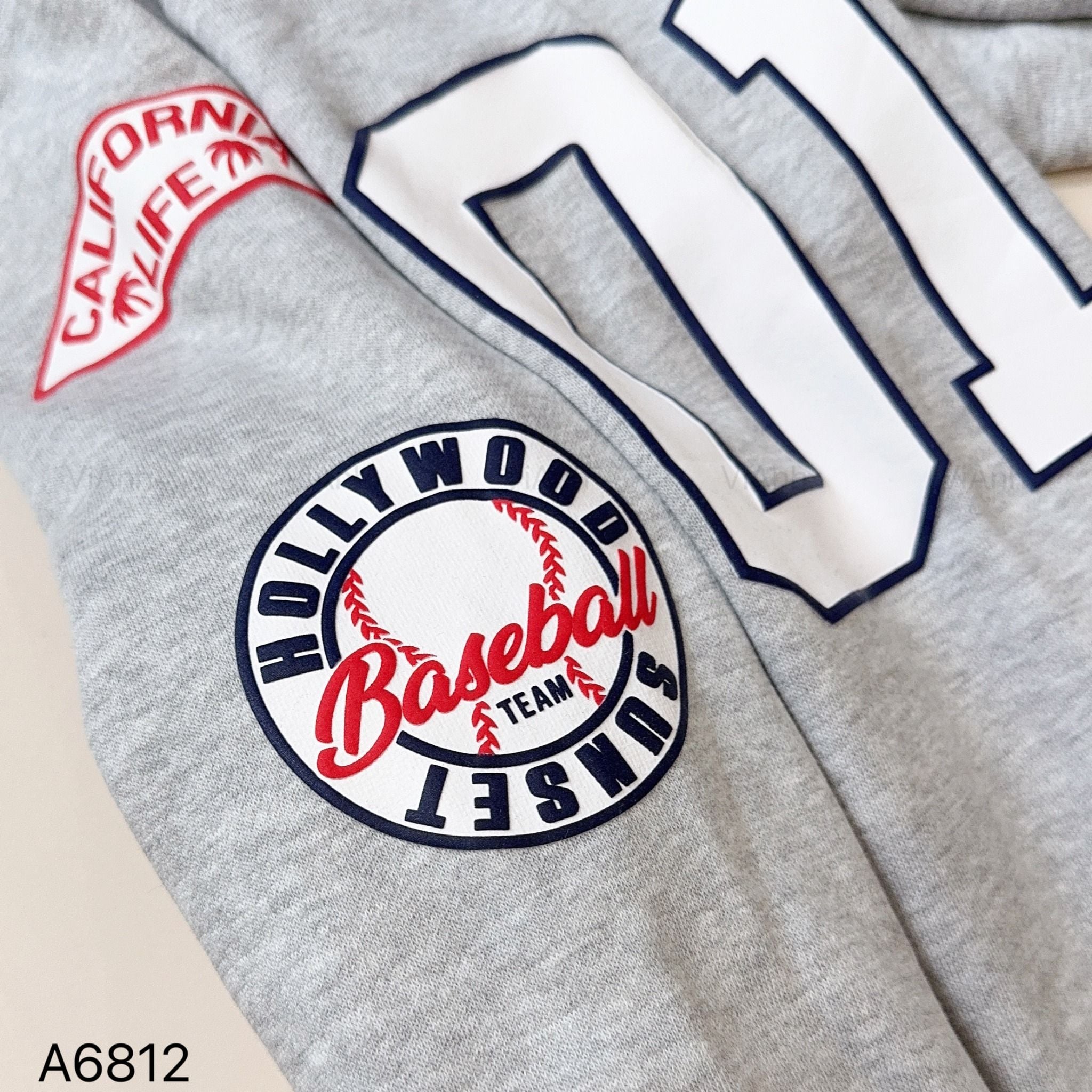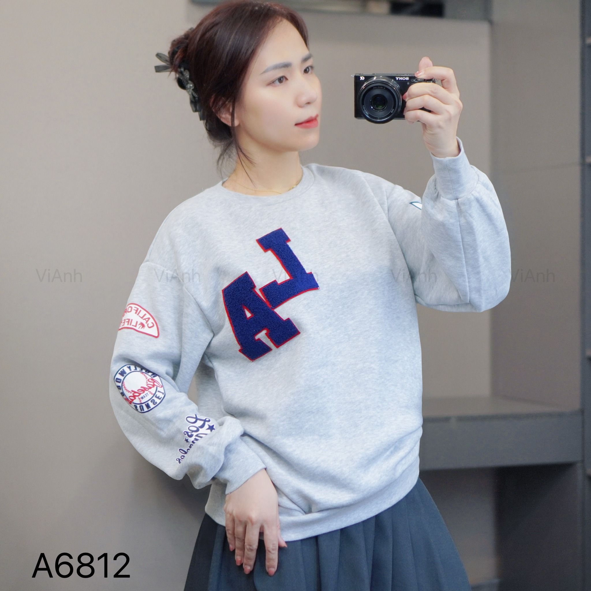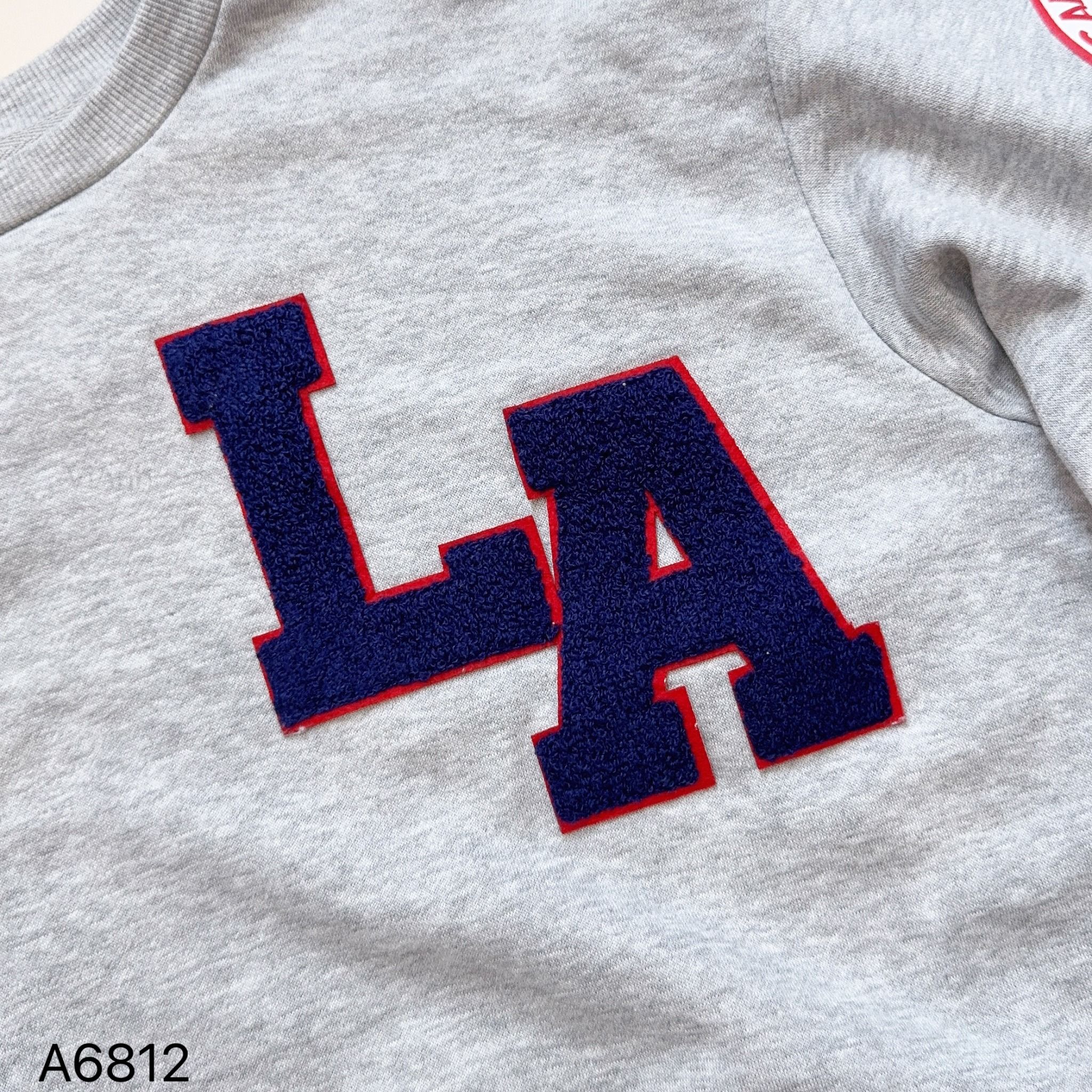 Áo sweater C12 thêu chữ LA ngực Cotton Classic / GHI