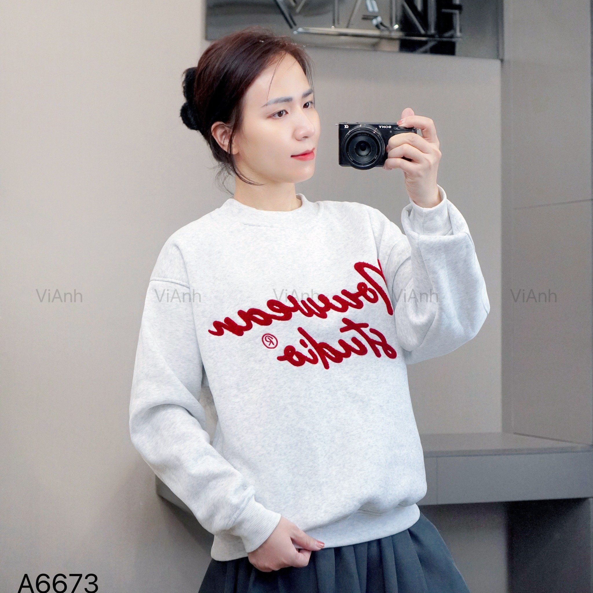 Áo T73 sweater thêu chữ / XÁM CHỮ ĐỎ