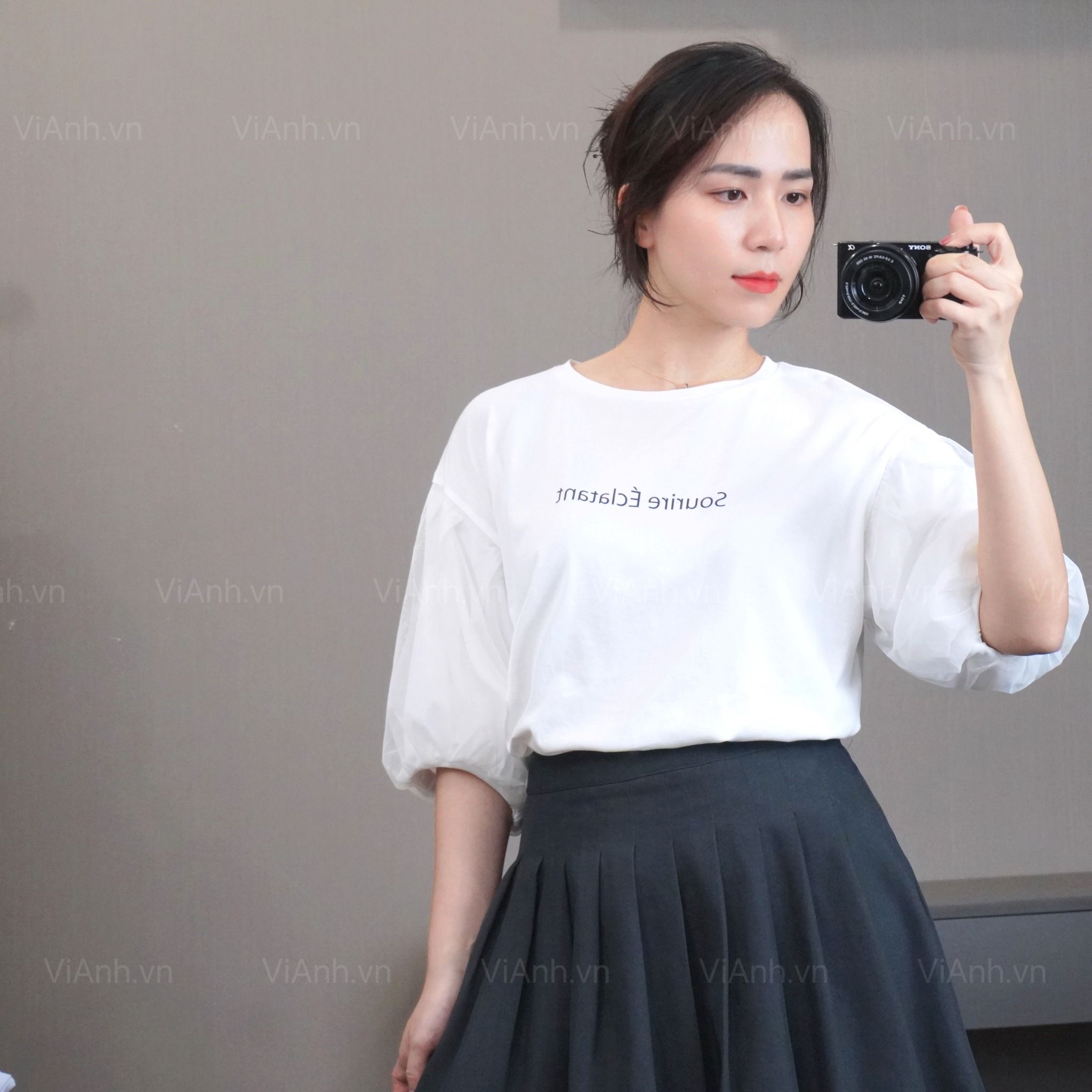 Áo A59 tay bồng style Nhật / Freesize A6259 / TRẮNG