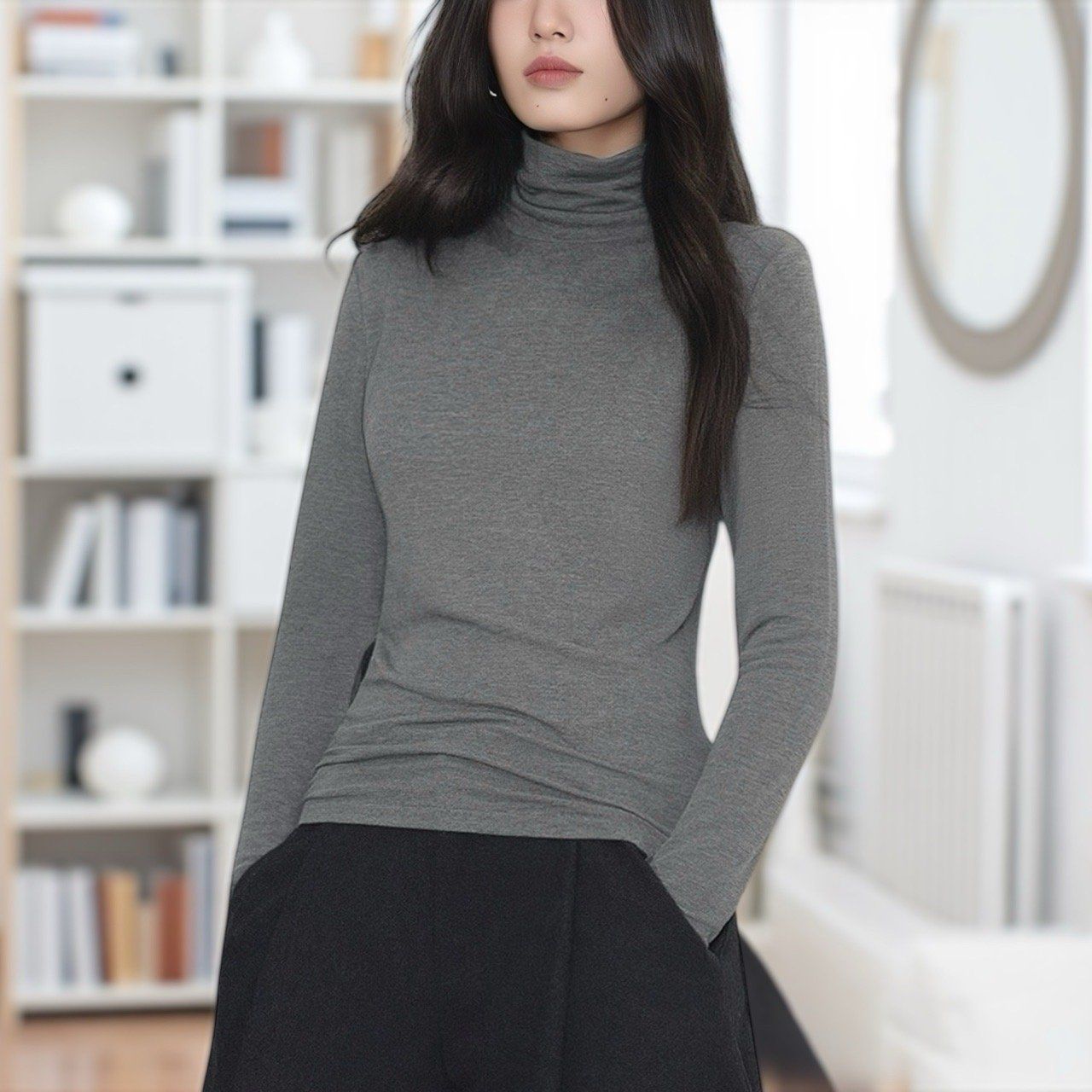 🌿🌿 Áo cổ lọ dài tay chất rayon cao cấp – mềm mịn, mát và siêu thoáng.