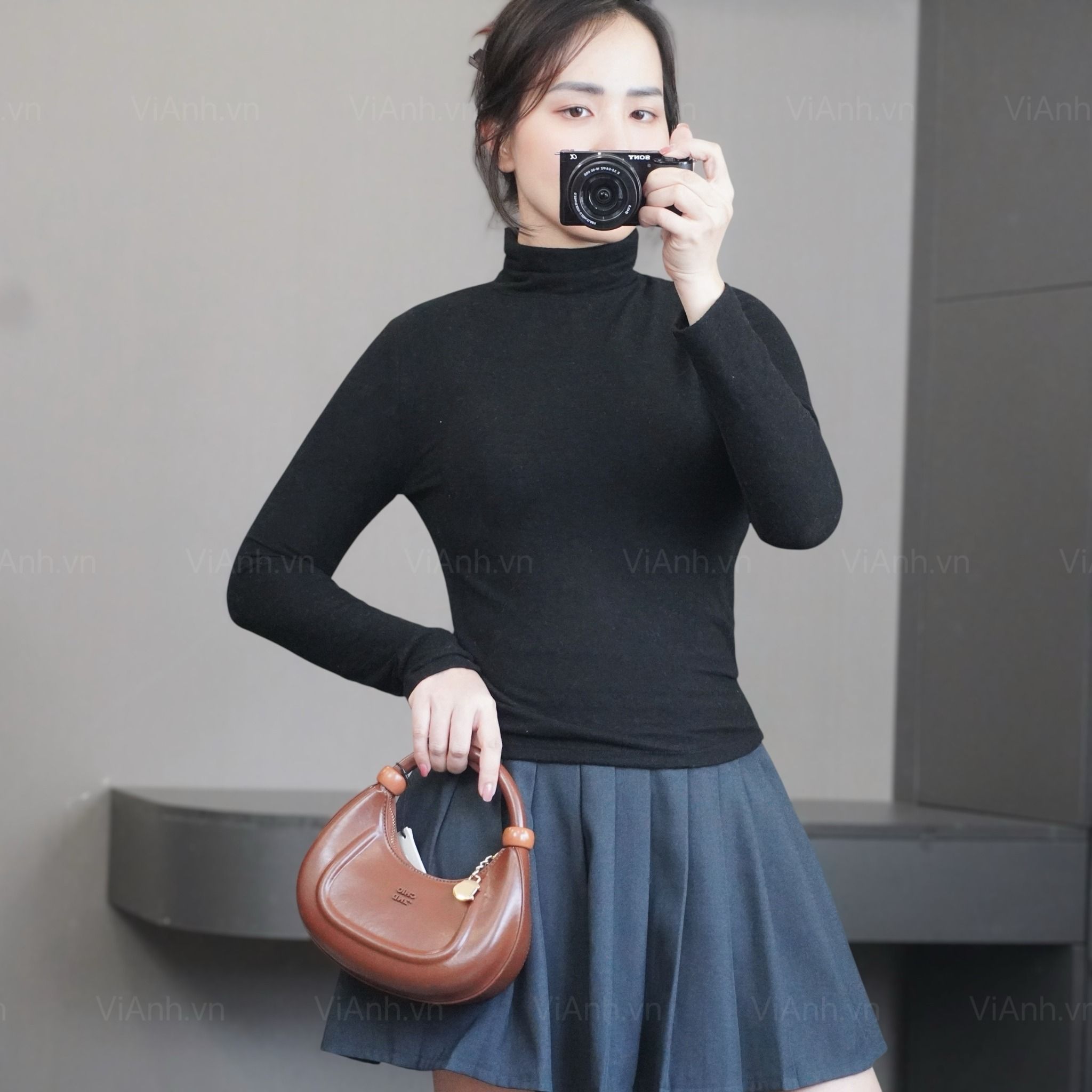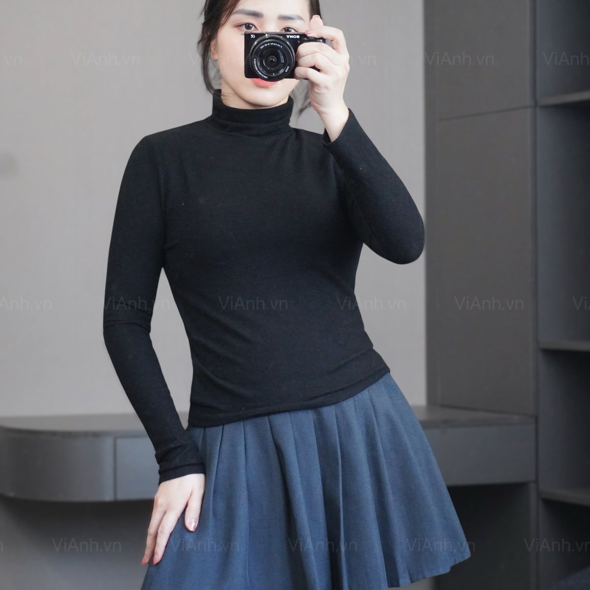Áo thun C17 dài tay cổ lọ style US / ĐEN