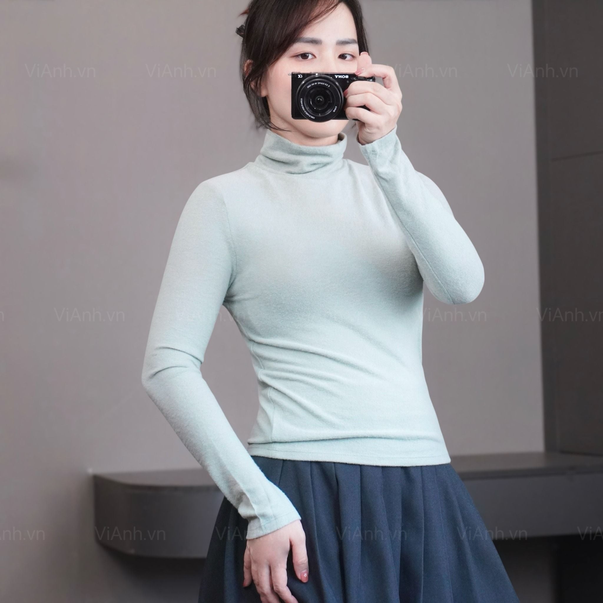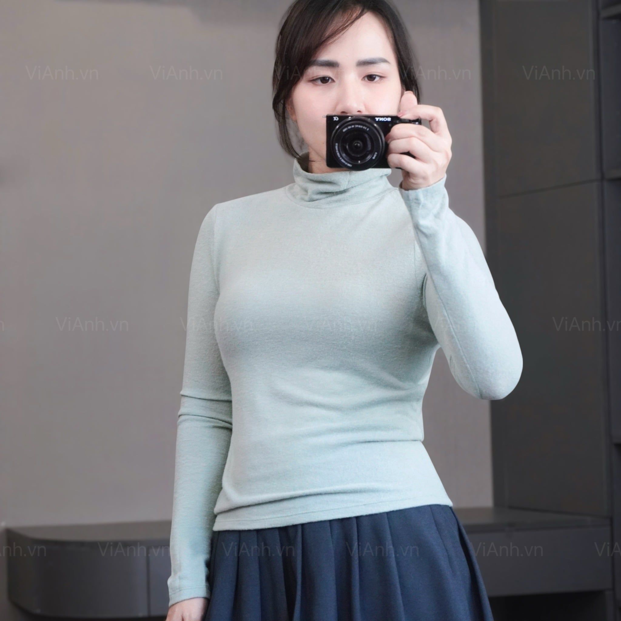 Áo thun C14 dài tay cổ lọ style US / XANH LÁ