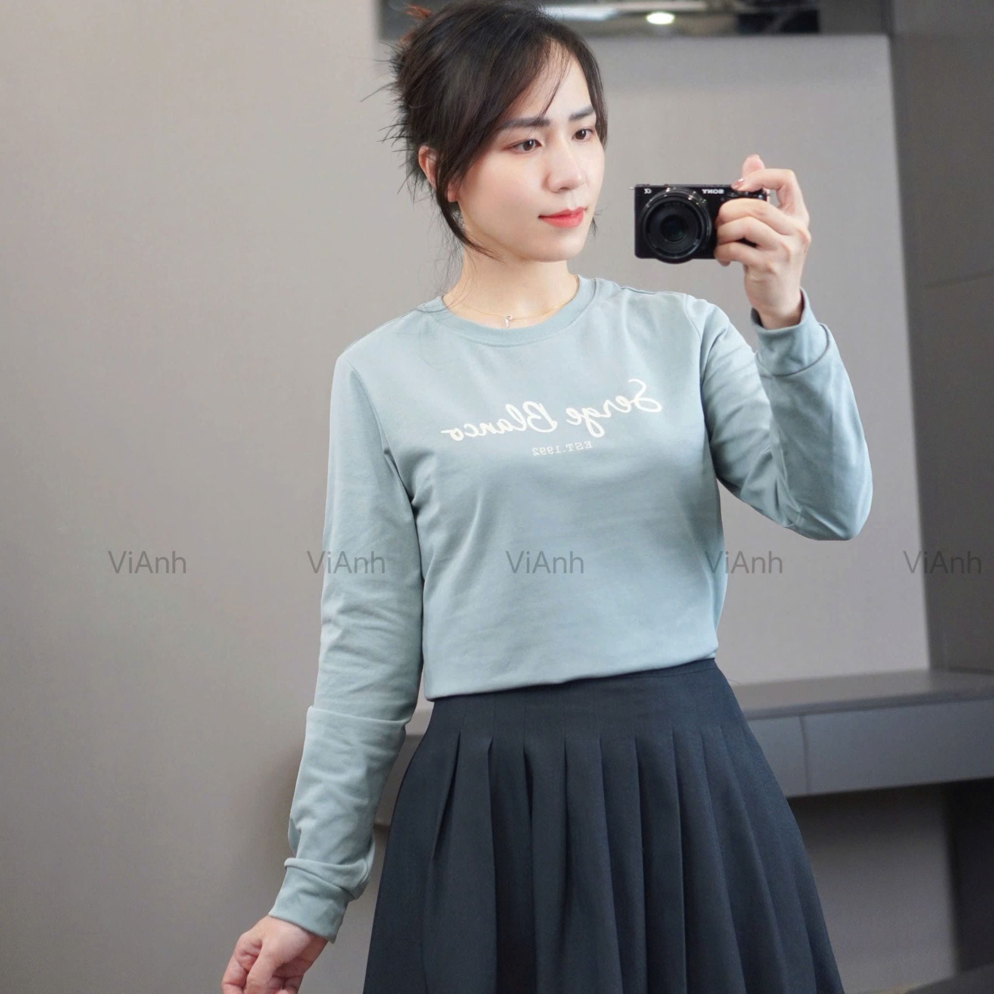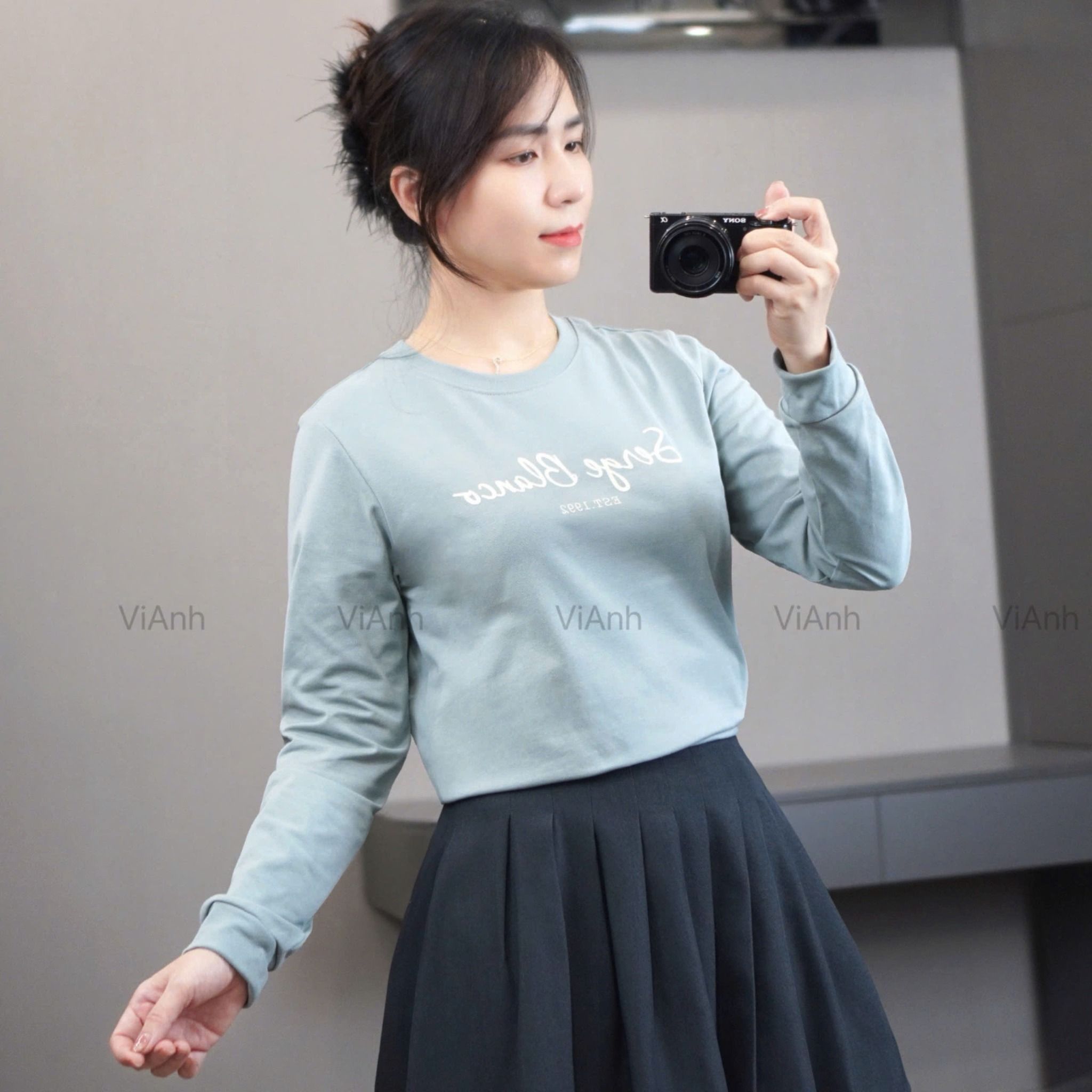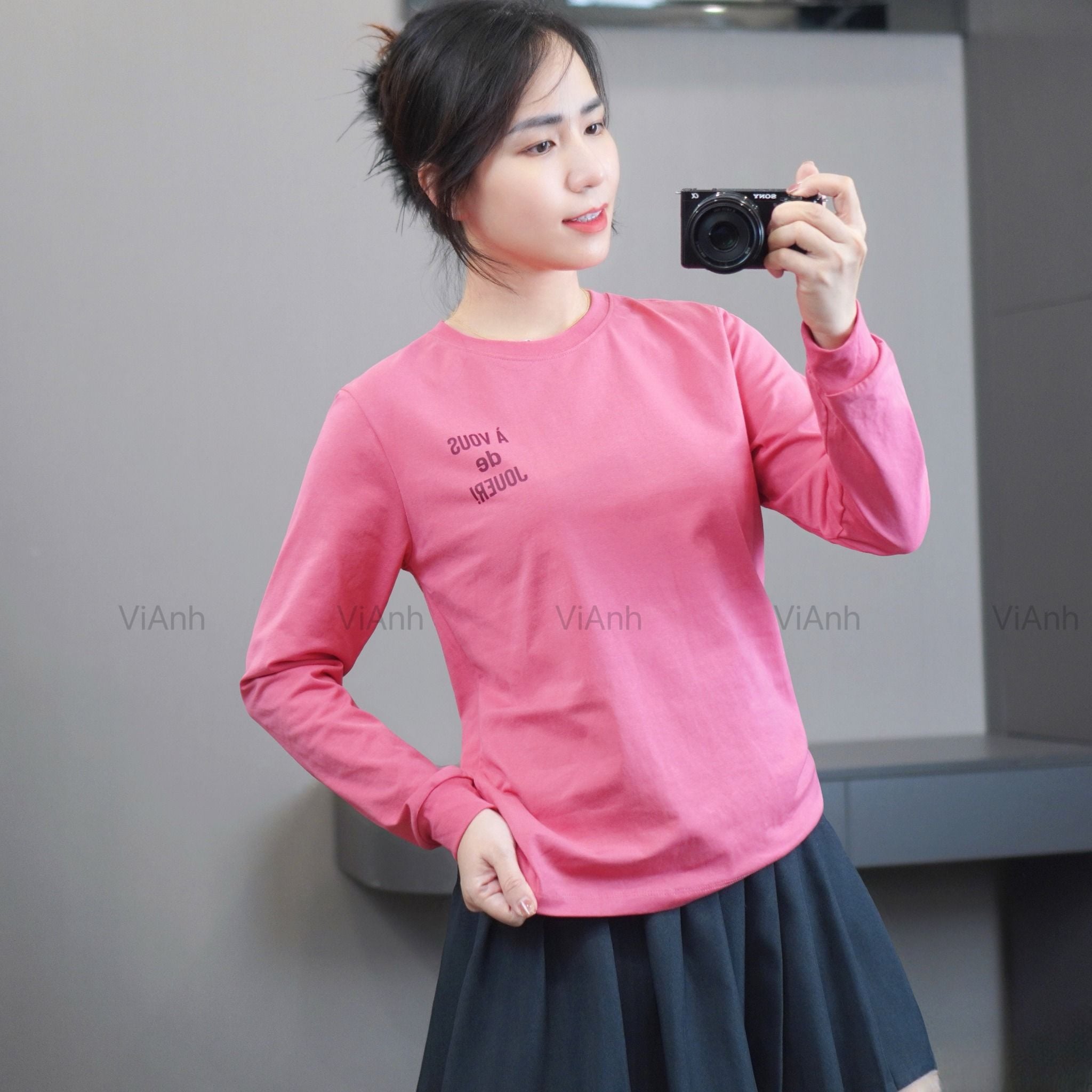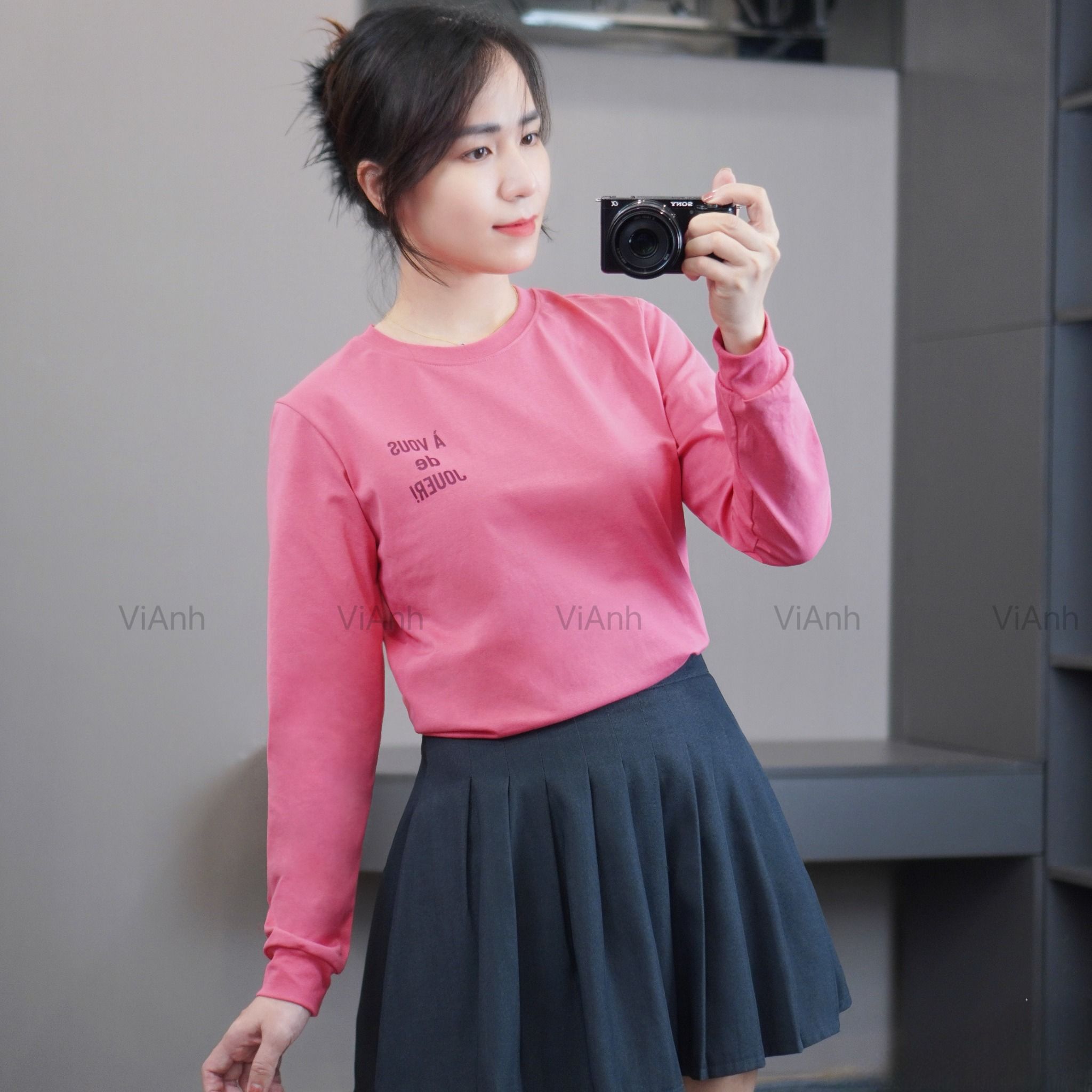 Áo thun dài tay in chữ style Hàn ( A90 - Hồng / A91 - Xanh )