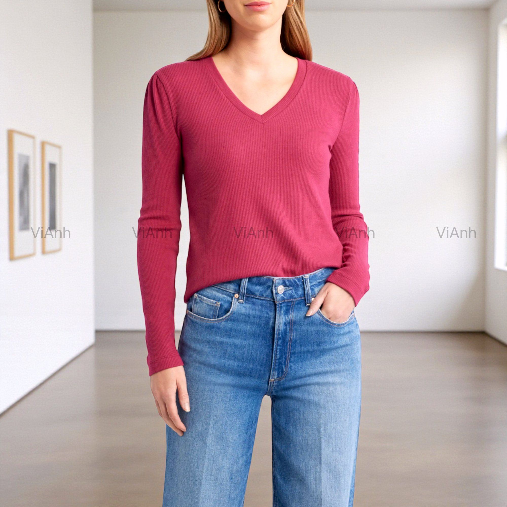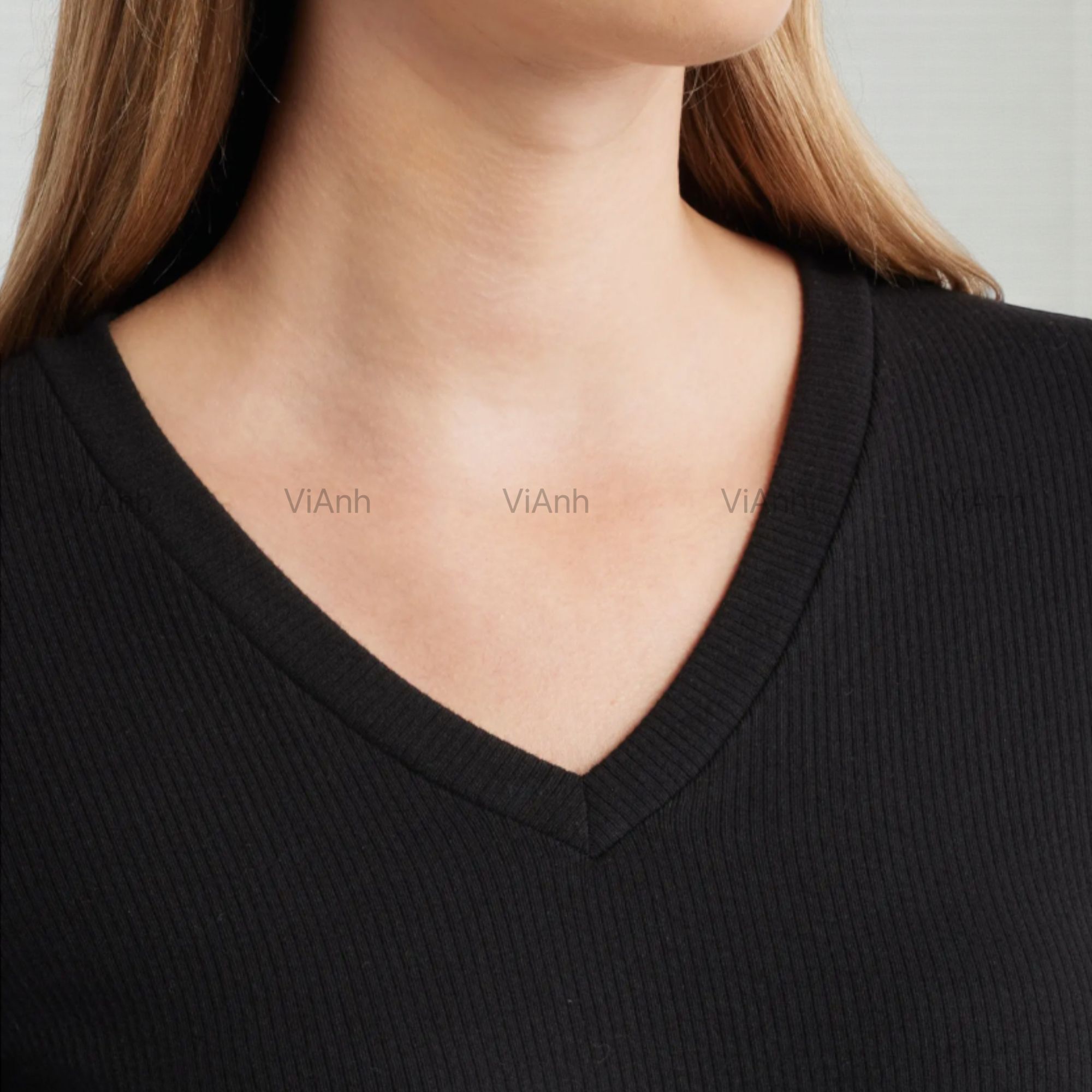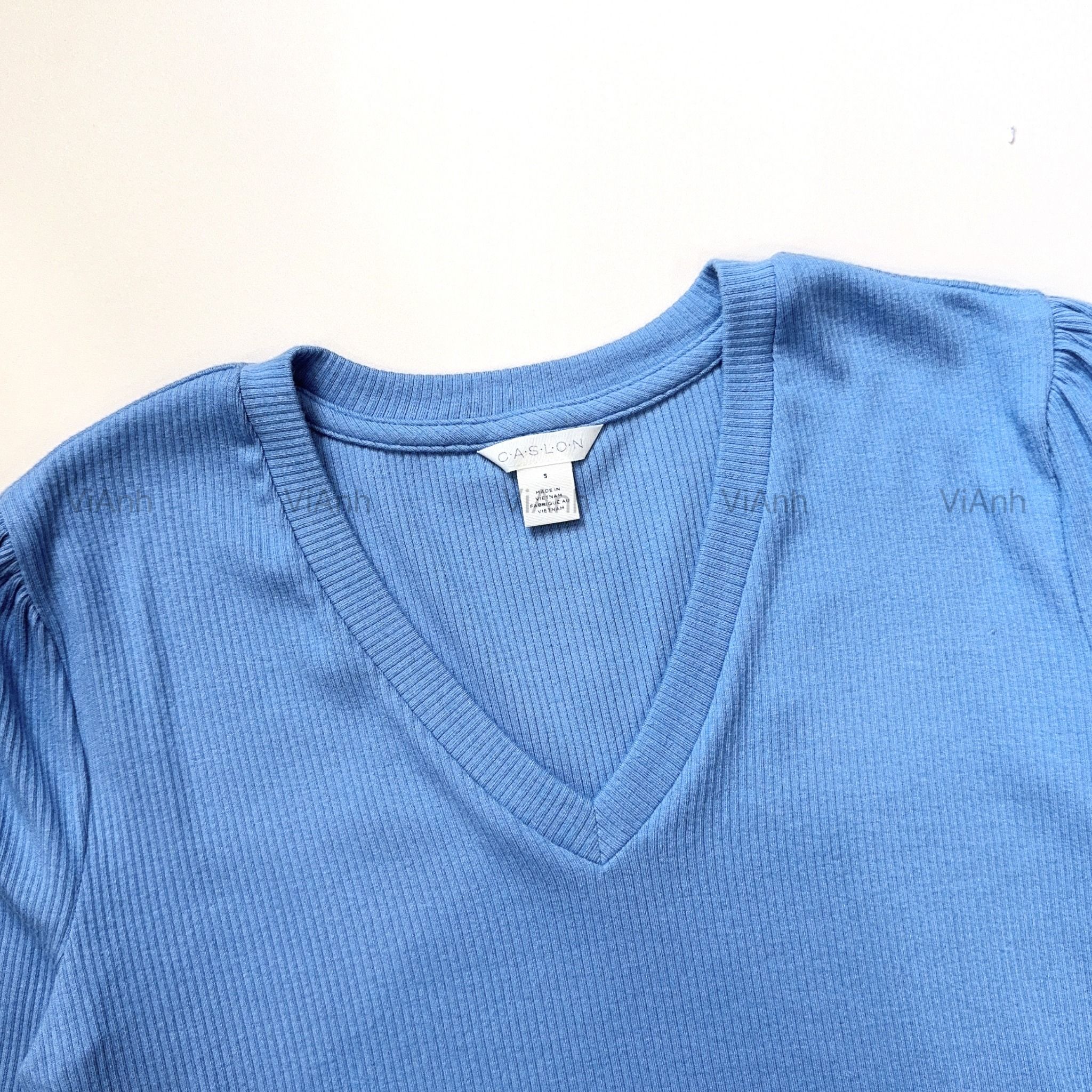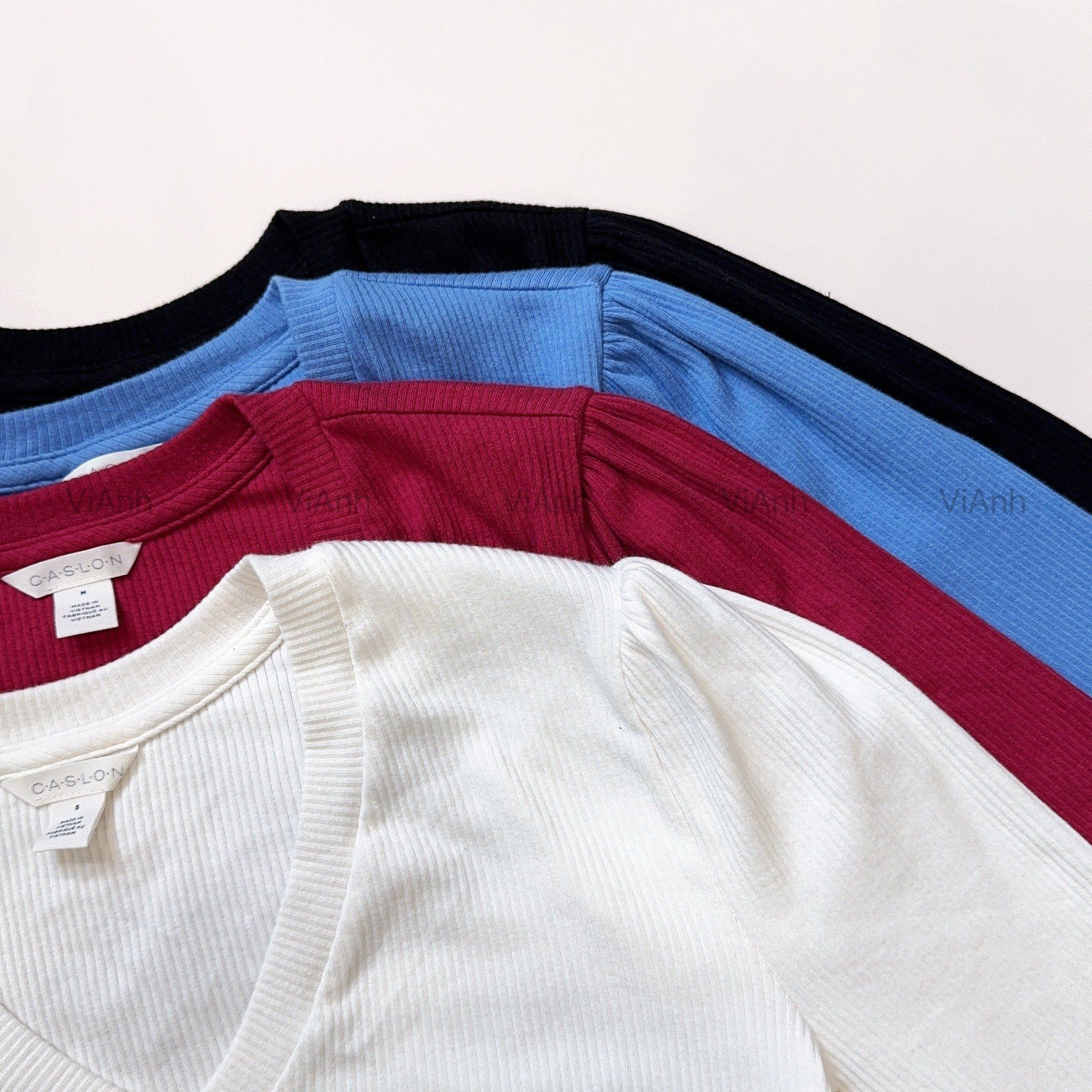 Áo thun gân cổ tim tay bồng style US UK / C5 xanh , C6 đen , C7 hồng , C8 trắng