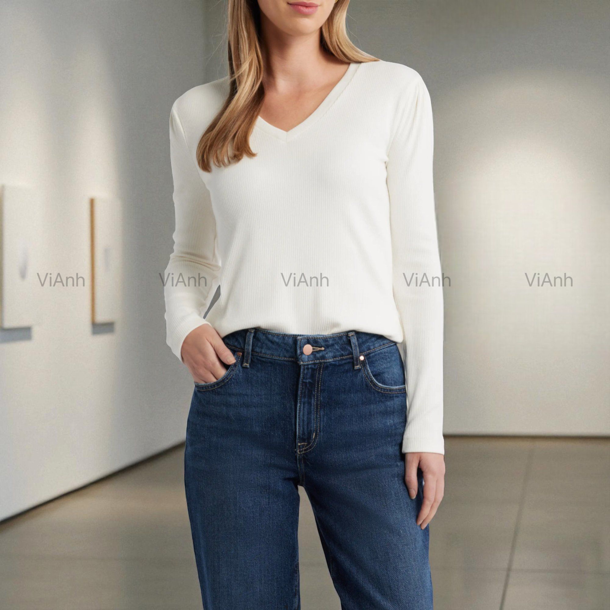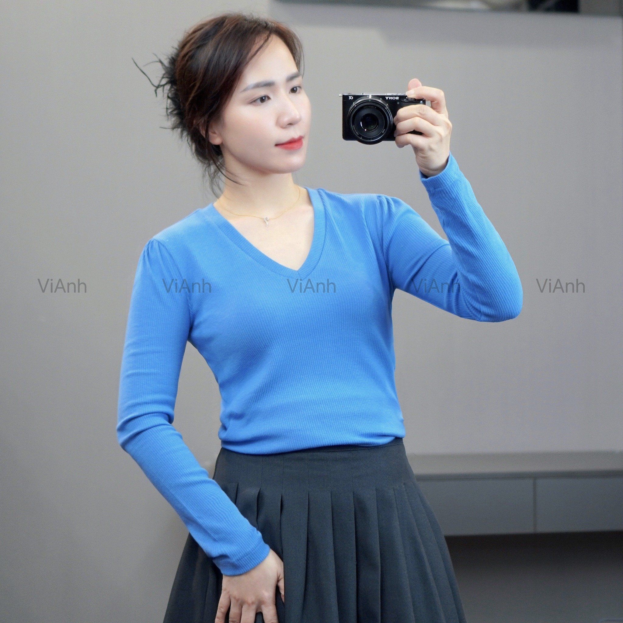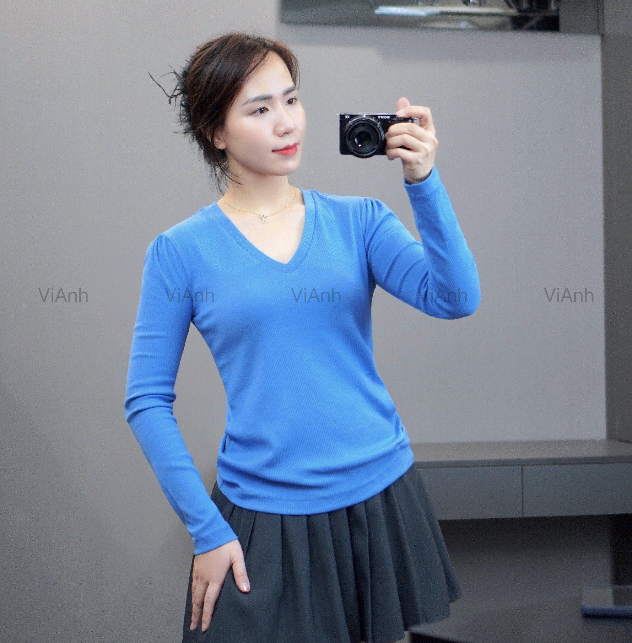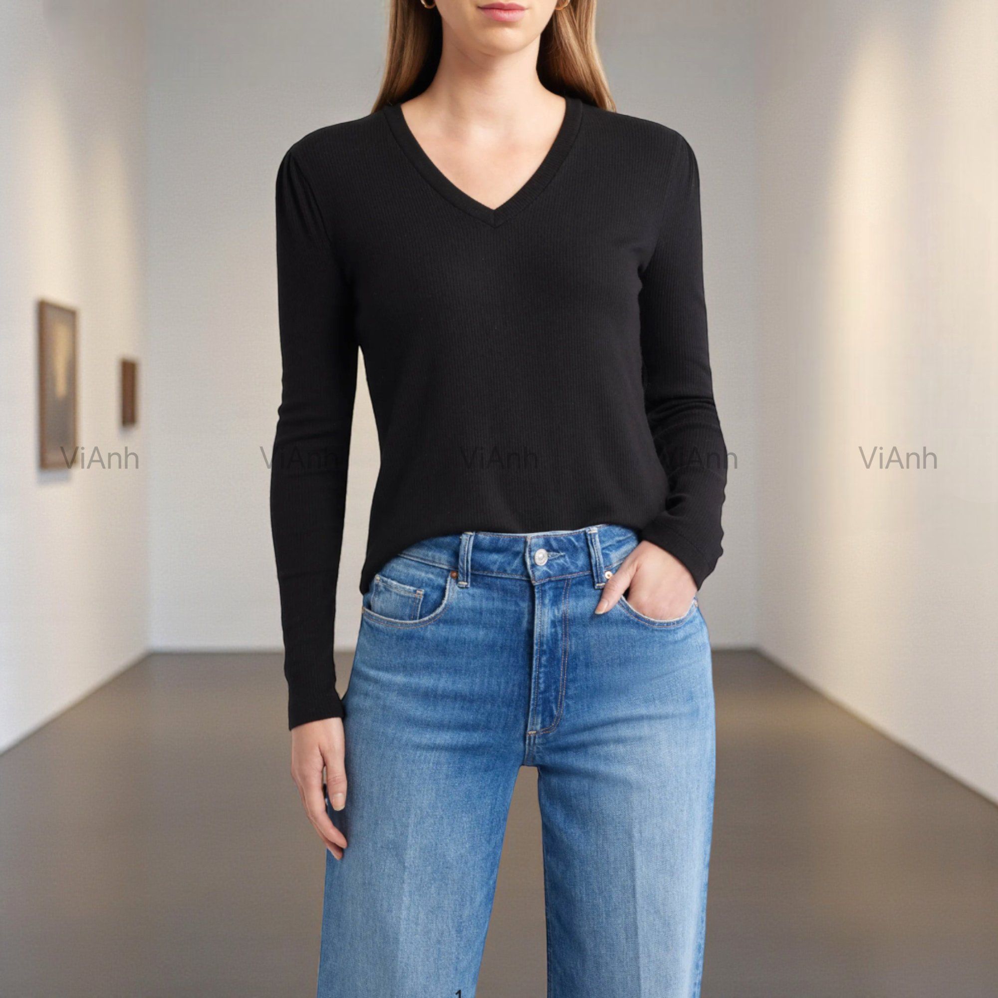Áo thun gân cổ tim tay bồng style US UK / C5 xanh , C6 đen , C7 hồng , C8 trắng