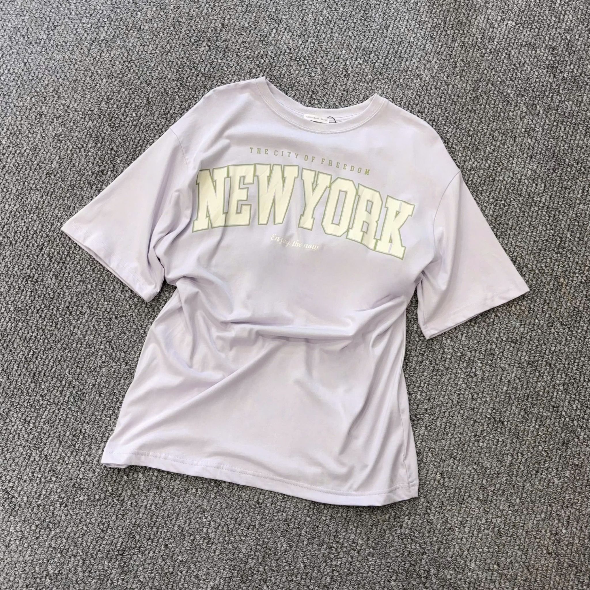 Áo thun in chữ A4915 / Tím phom rộng ( T45 )