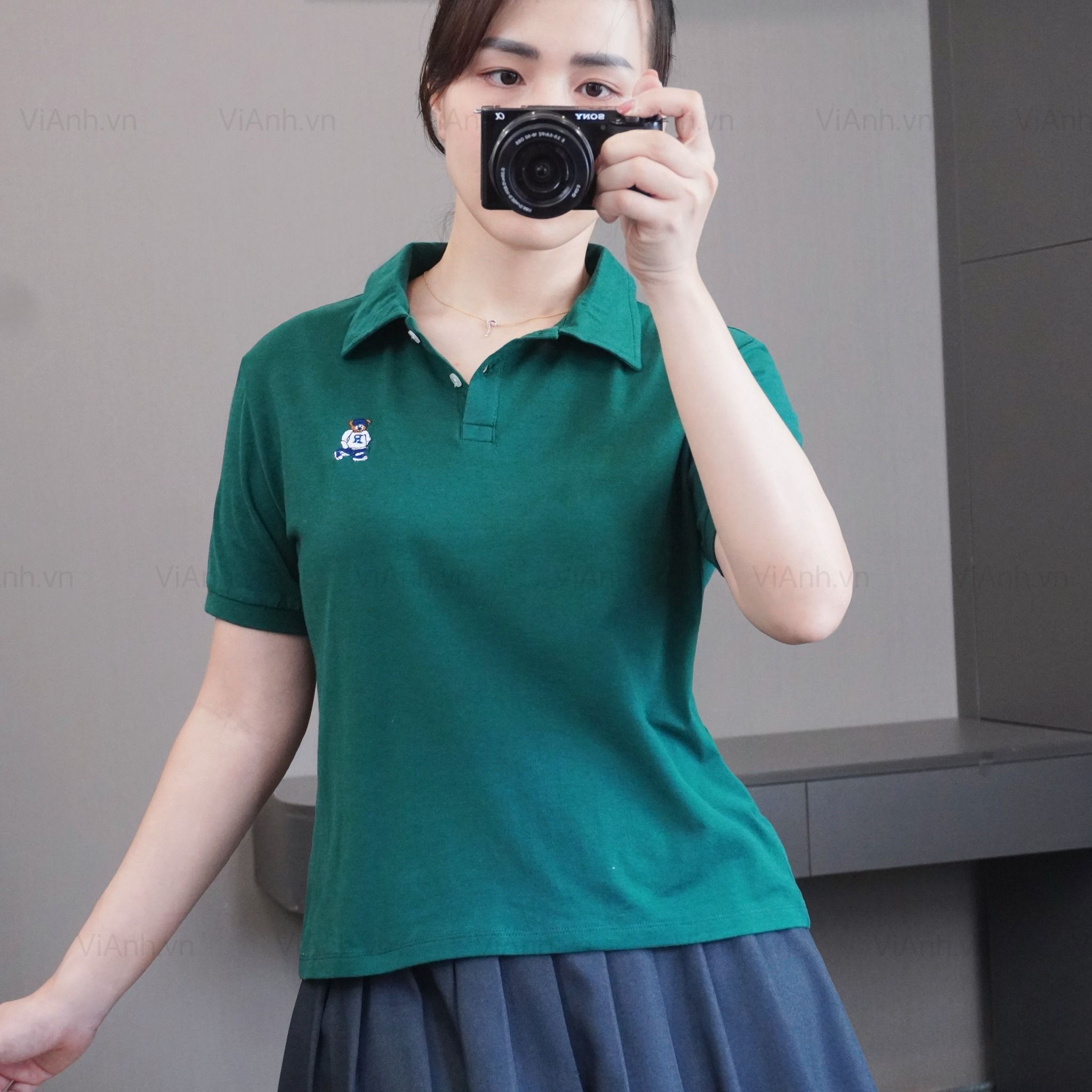 Áo C454 thun thêu gấu cổ polo style Nhật A6264 / XANH LÁ