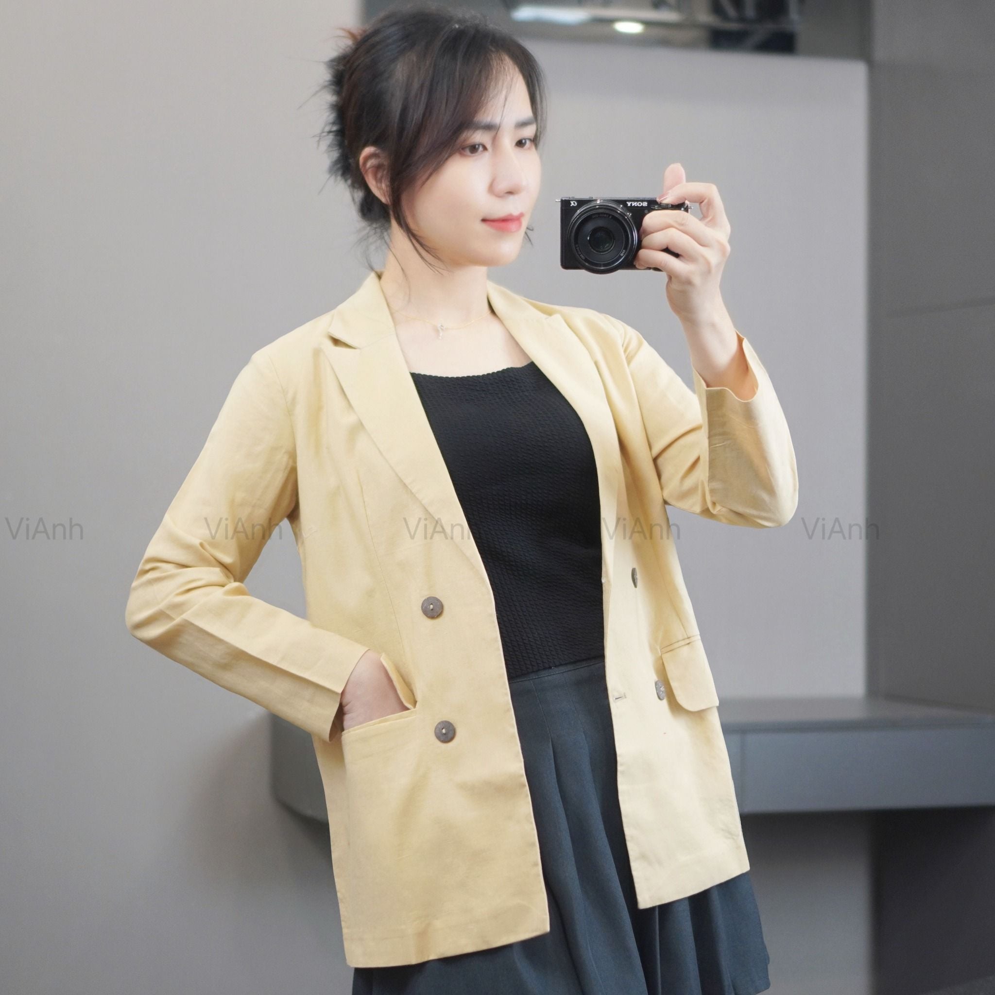 Áo V4 Vest Linen style Hàn / VÀNG BE