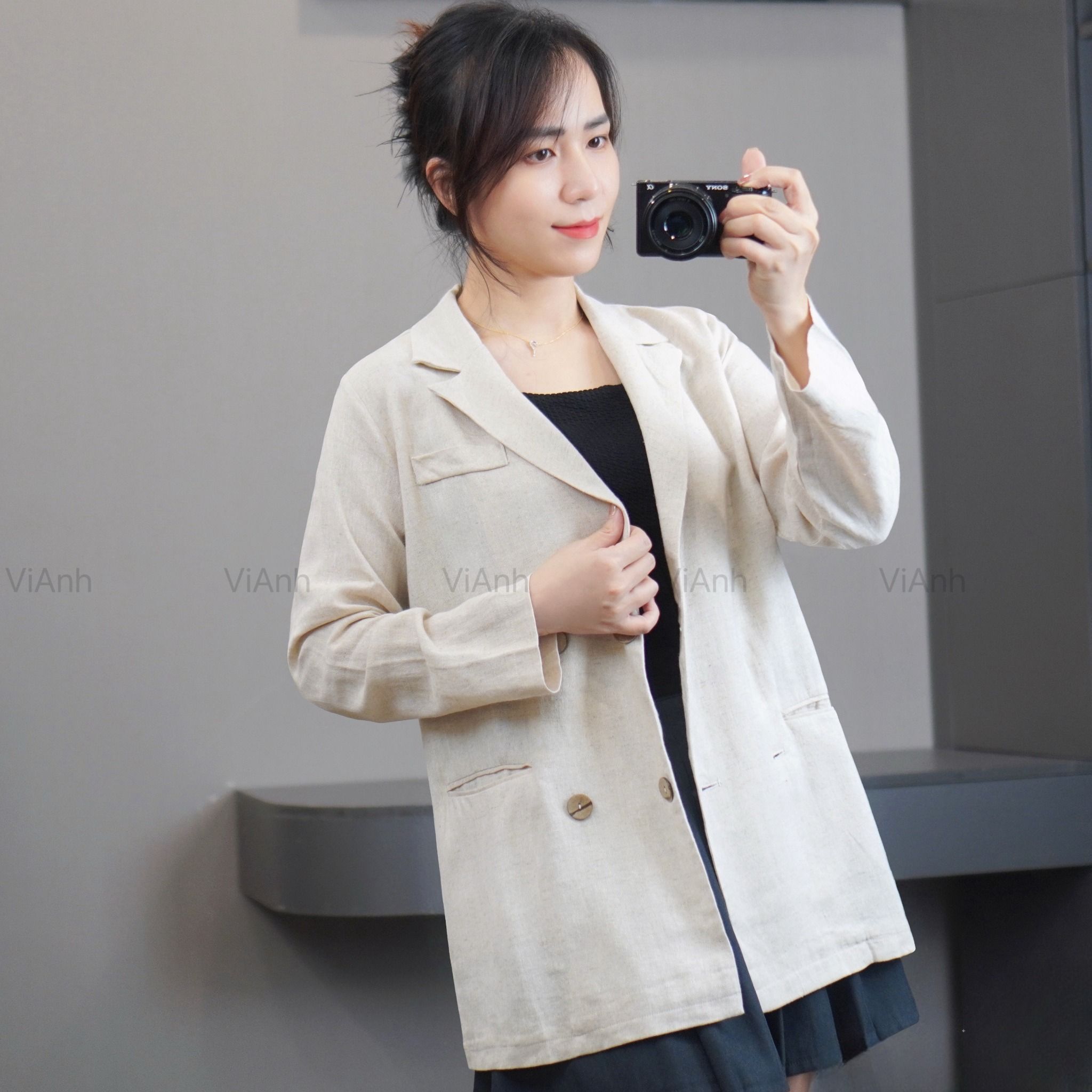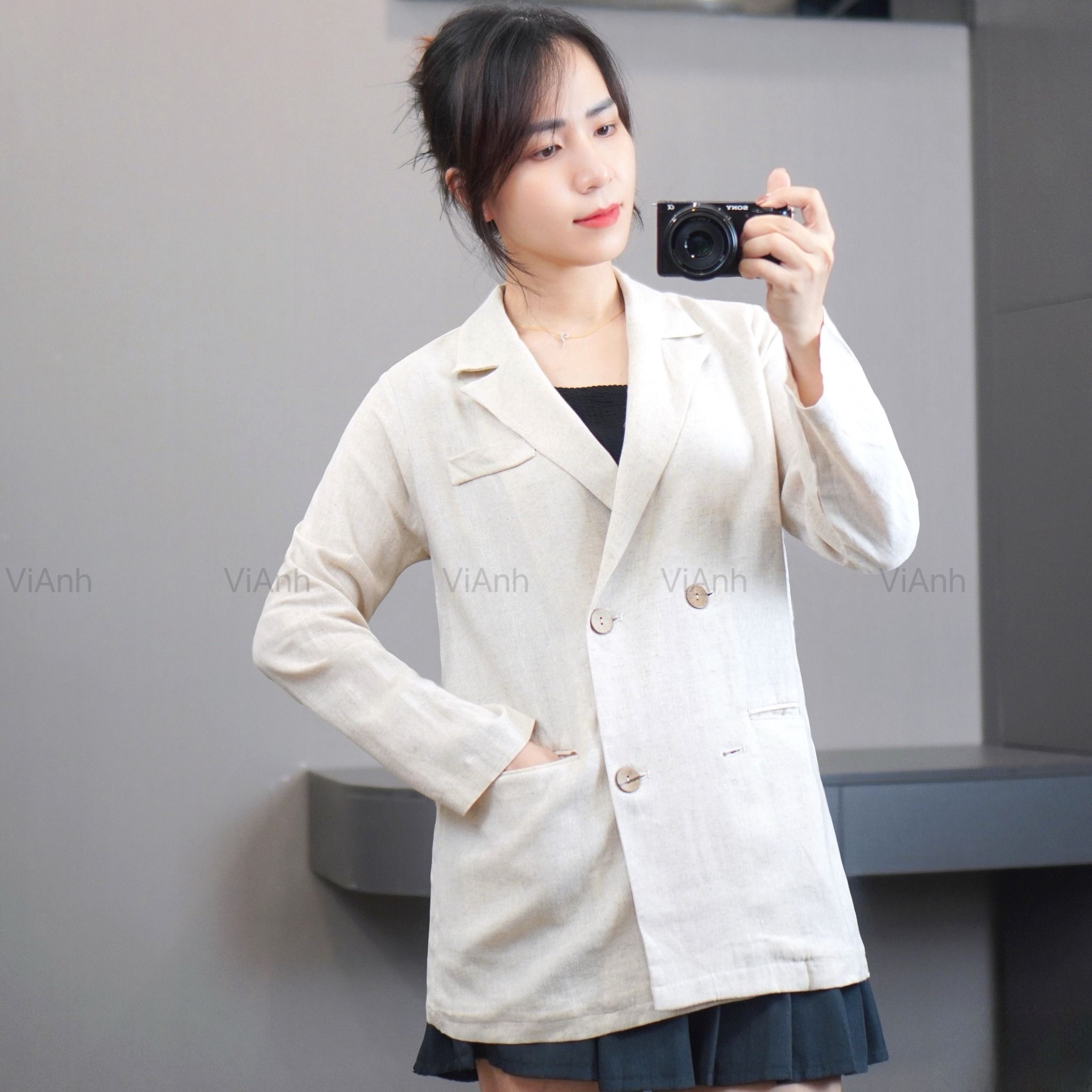 Áo V1 Vest Linen style Hàn A6381 / TRẮNG KEM