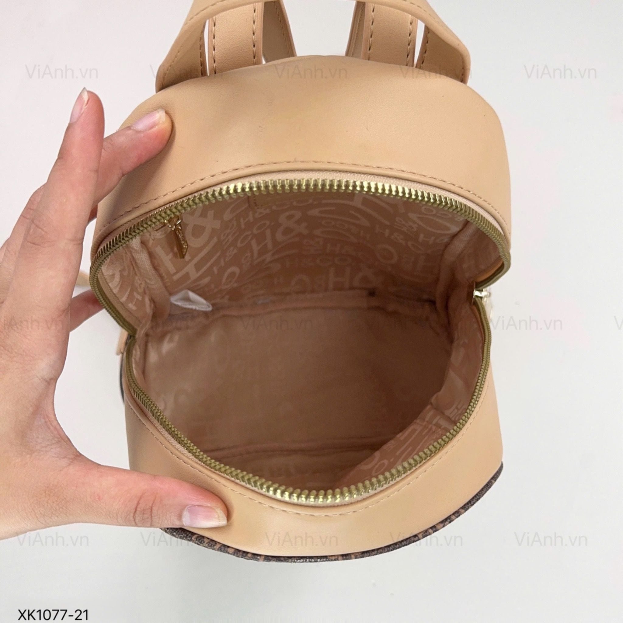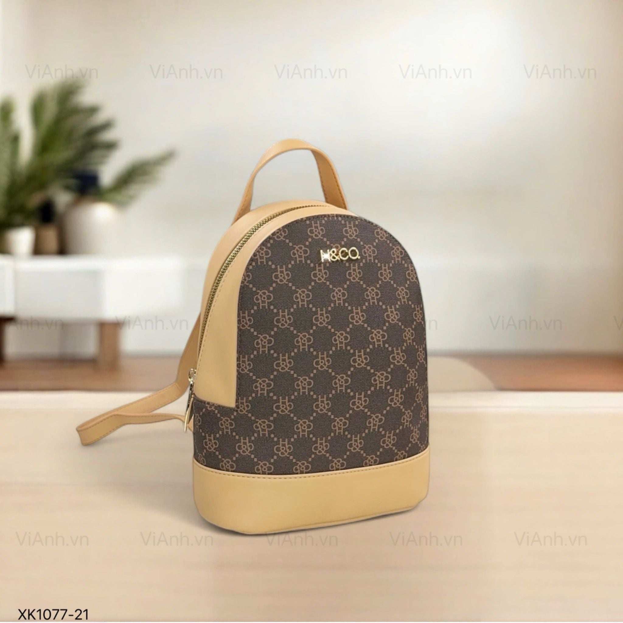 Balo mini HC K77 da vân hoạ tiết chữ / 20x25 / NÂU