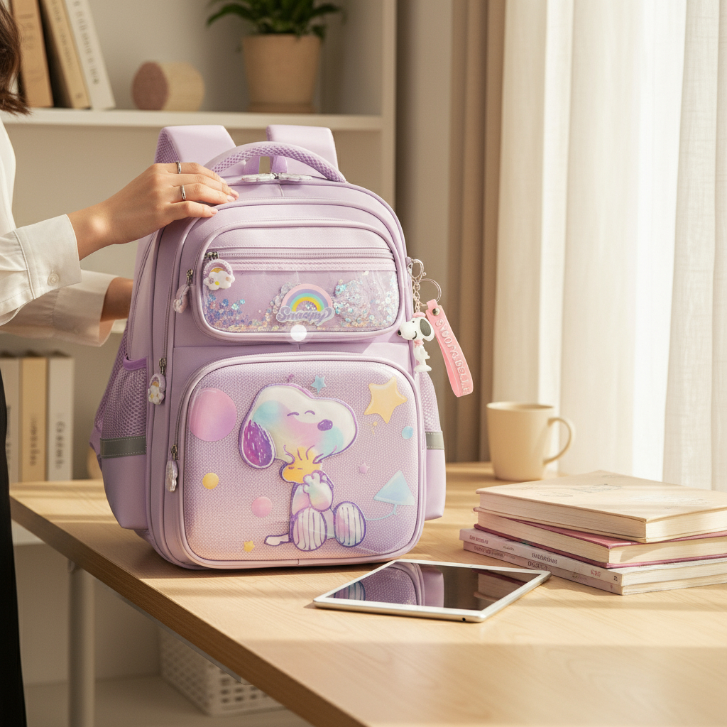 Balo Snoppy vải dù / 28x40 / TÍM