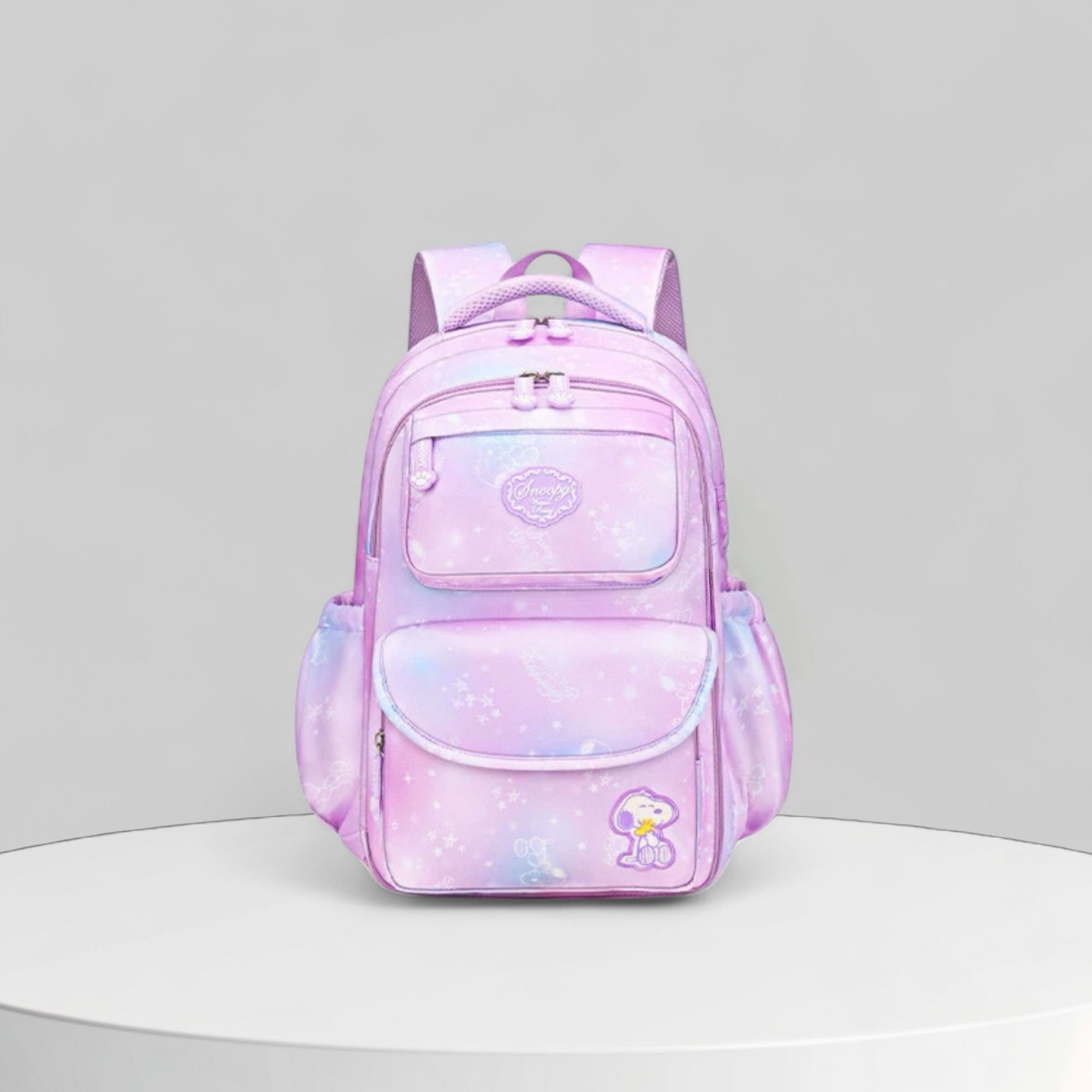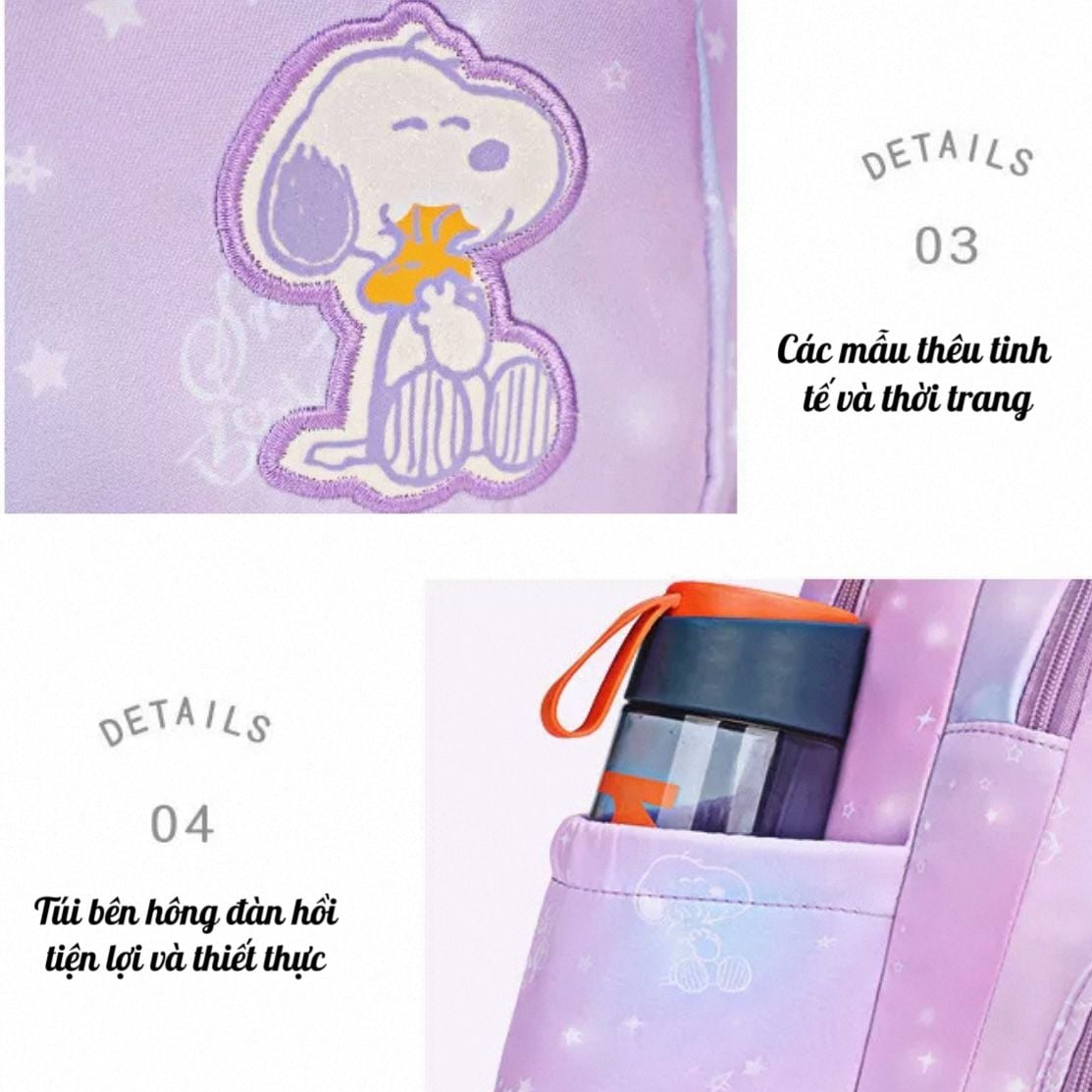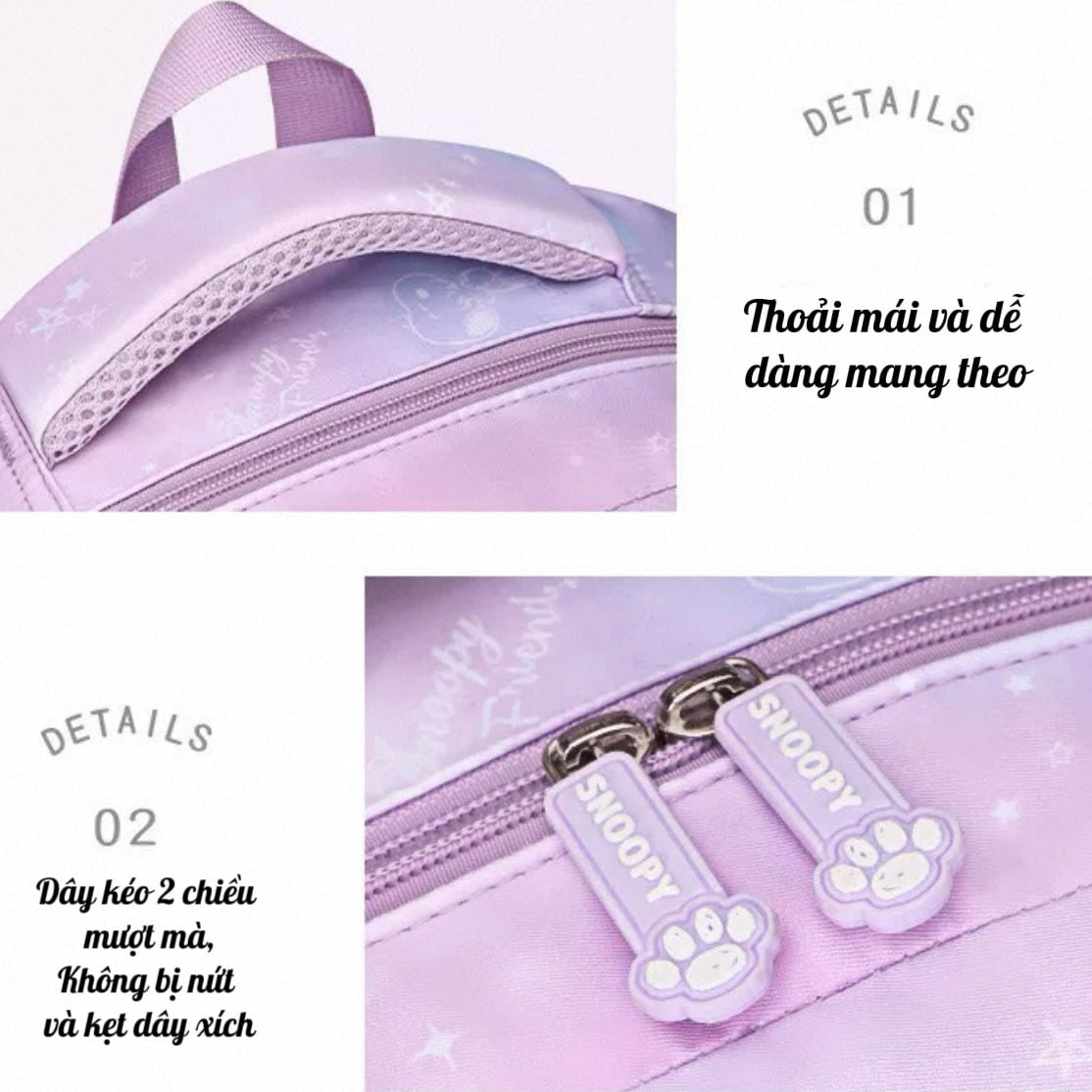 Balo Snoppy vải dù hoạ tiết / 26x40 / TÍM - HỒNG