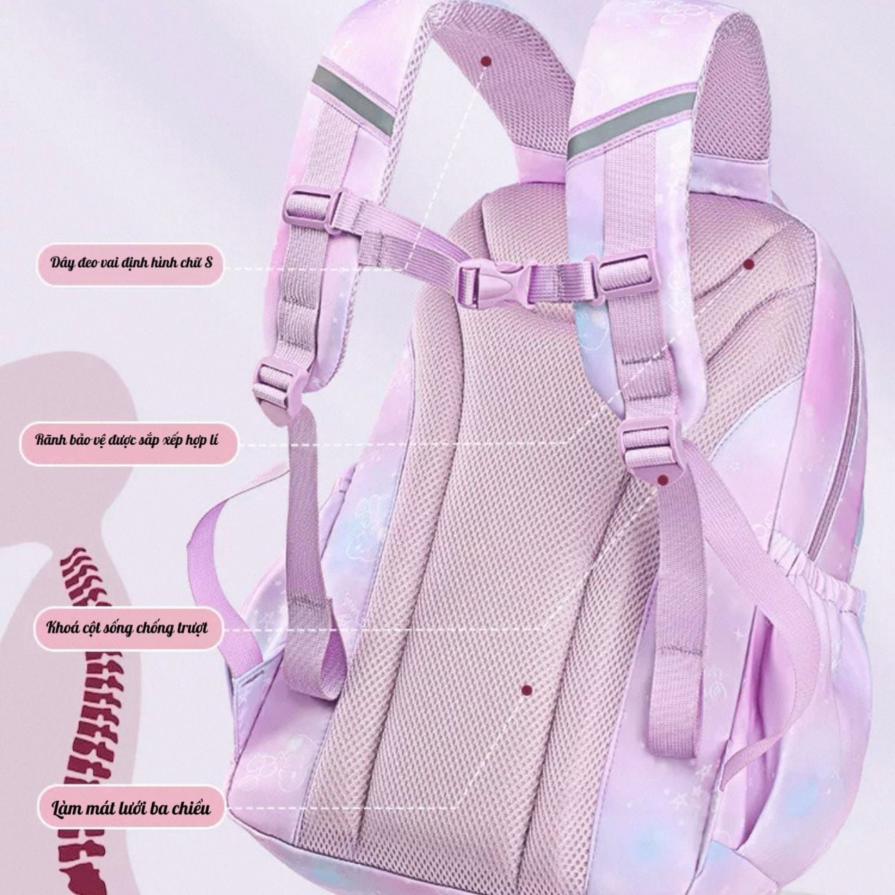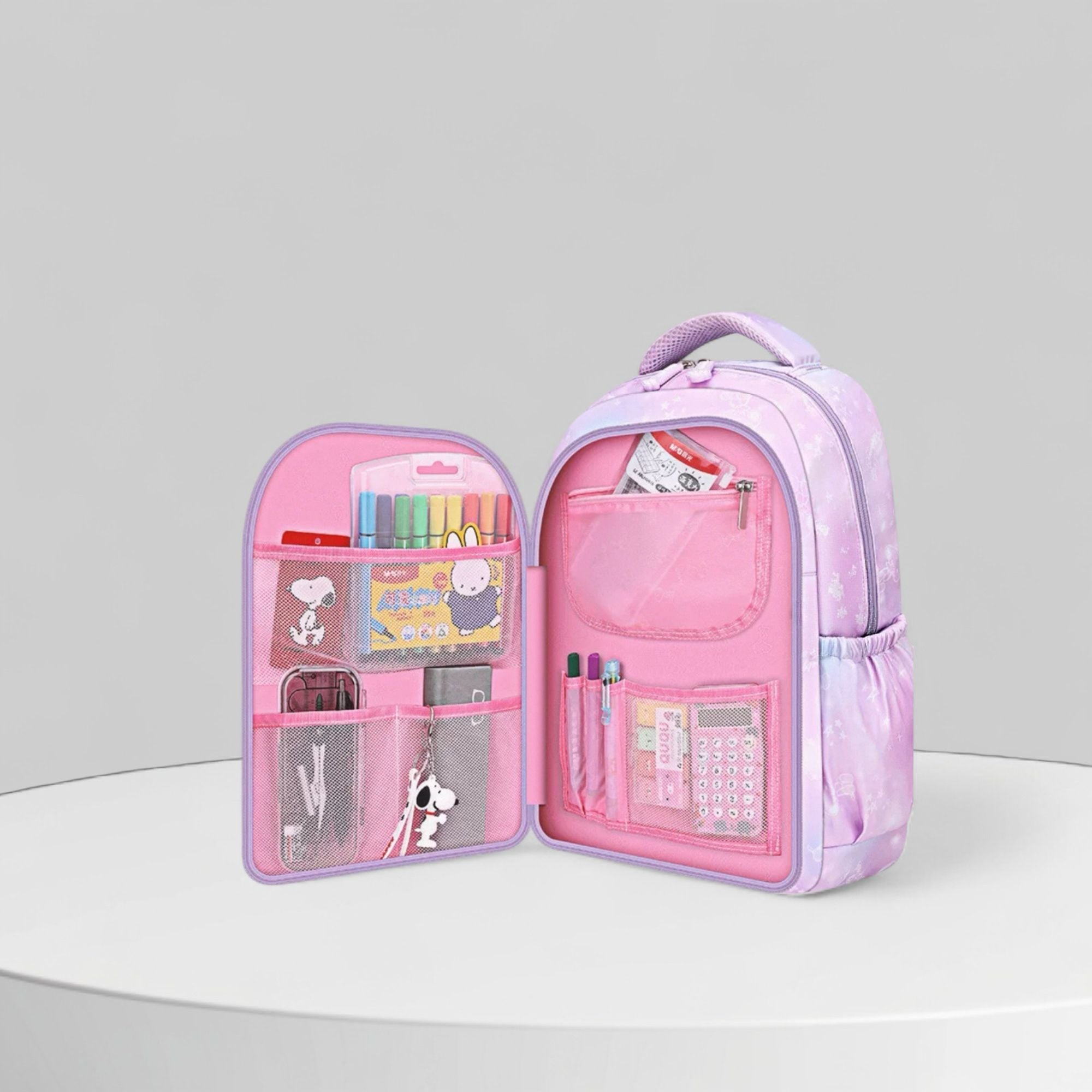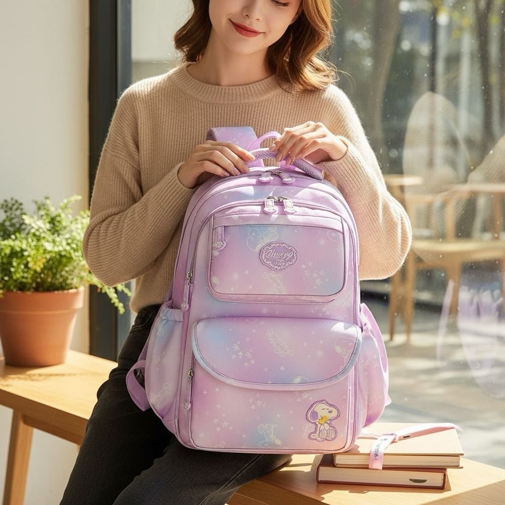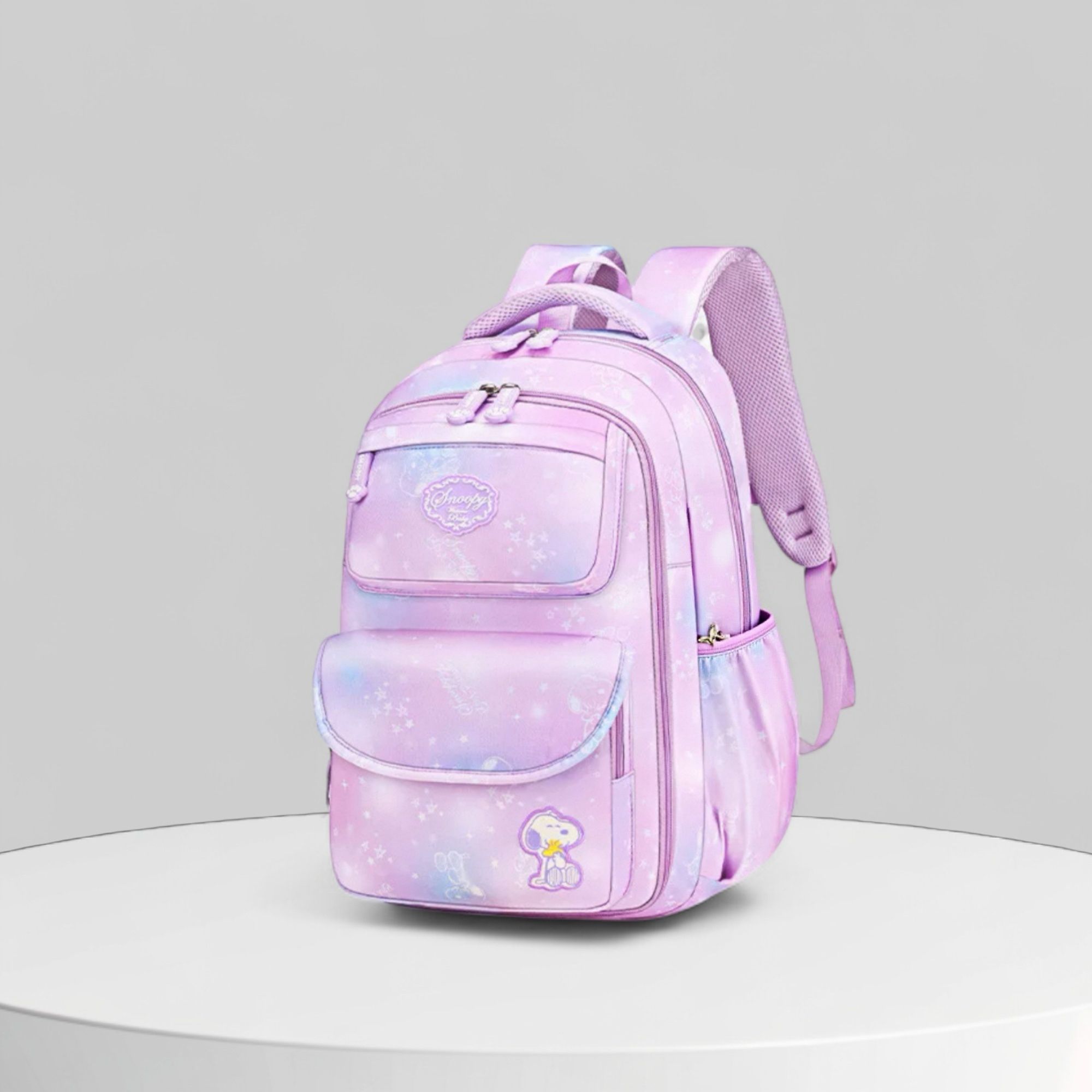Balo Snoppy vải dù hoạ tiết / 26x40 / TÍM - HỒNG