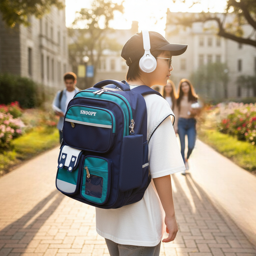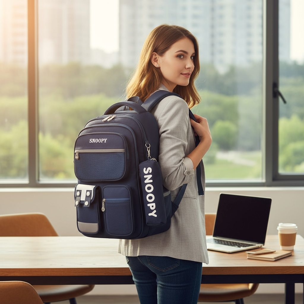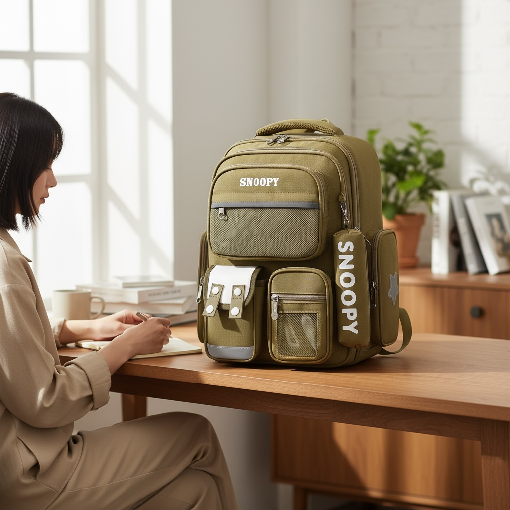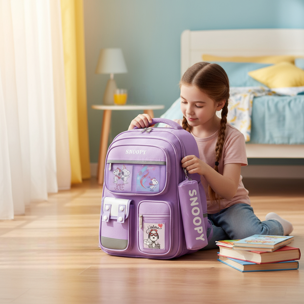 Balo B437 Snoppy vải dù kèm hộp bút XK1463 / 26x38