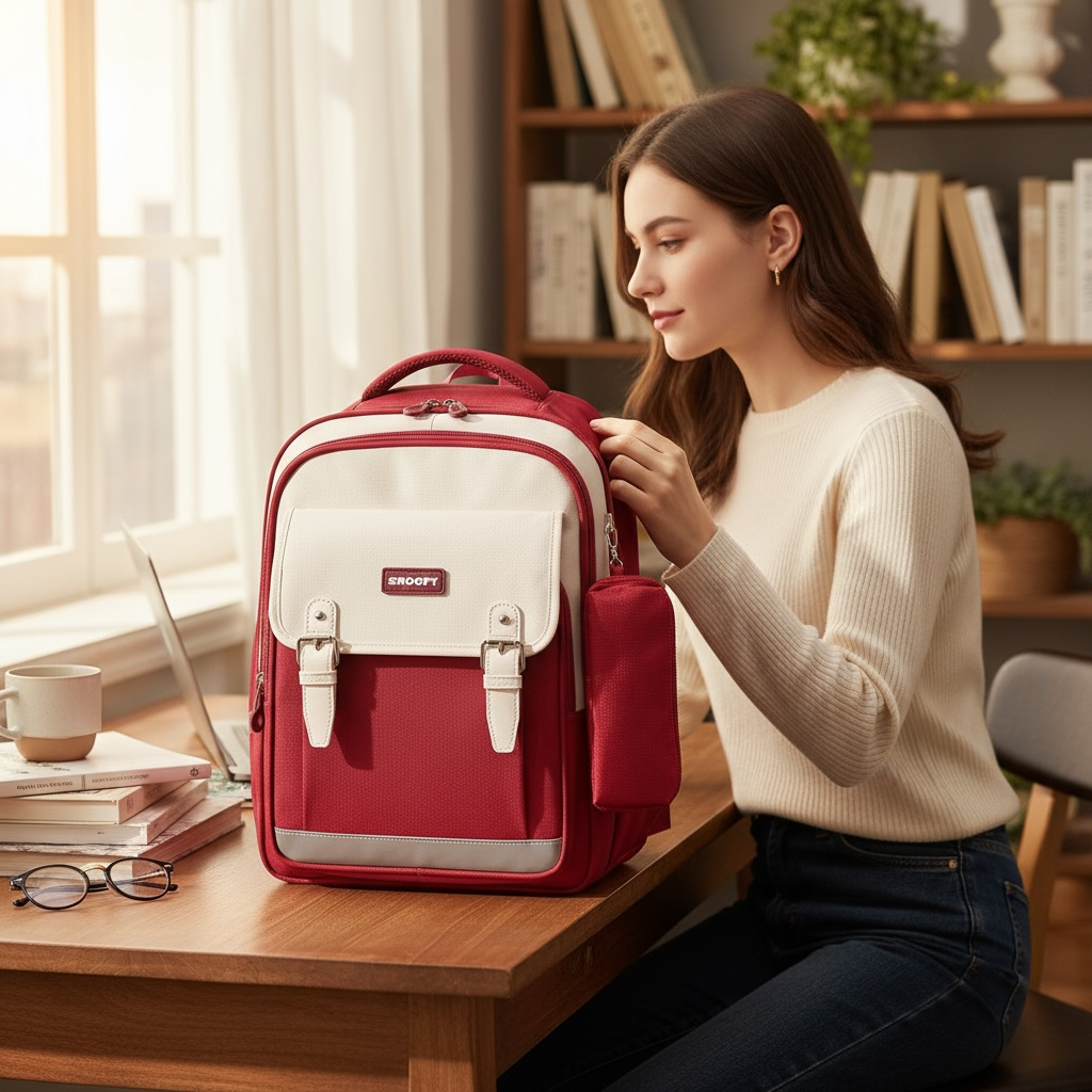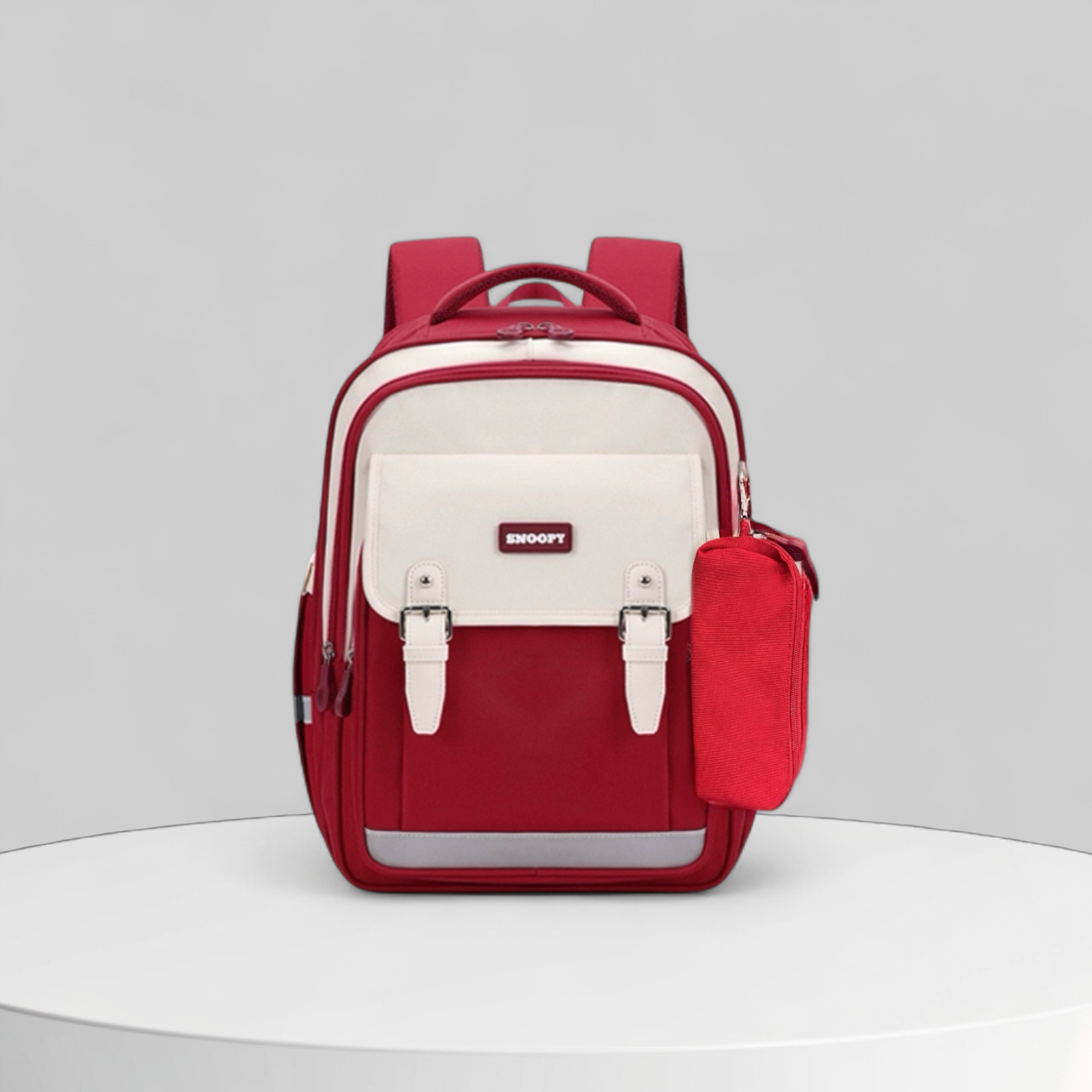 Balo Snoppy vải dù kèm hộp bút / 29x42 / ĐỎ - XANH