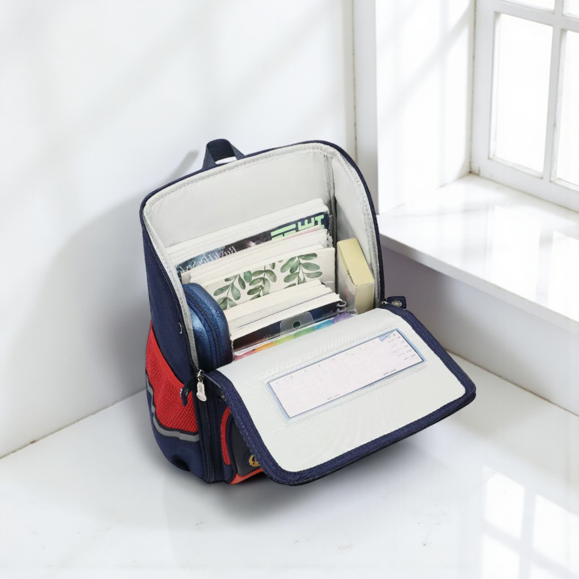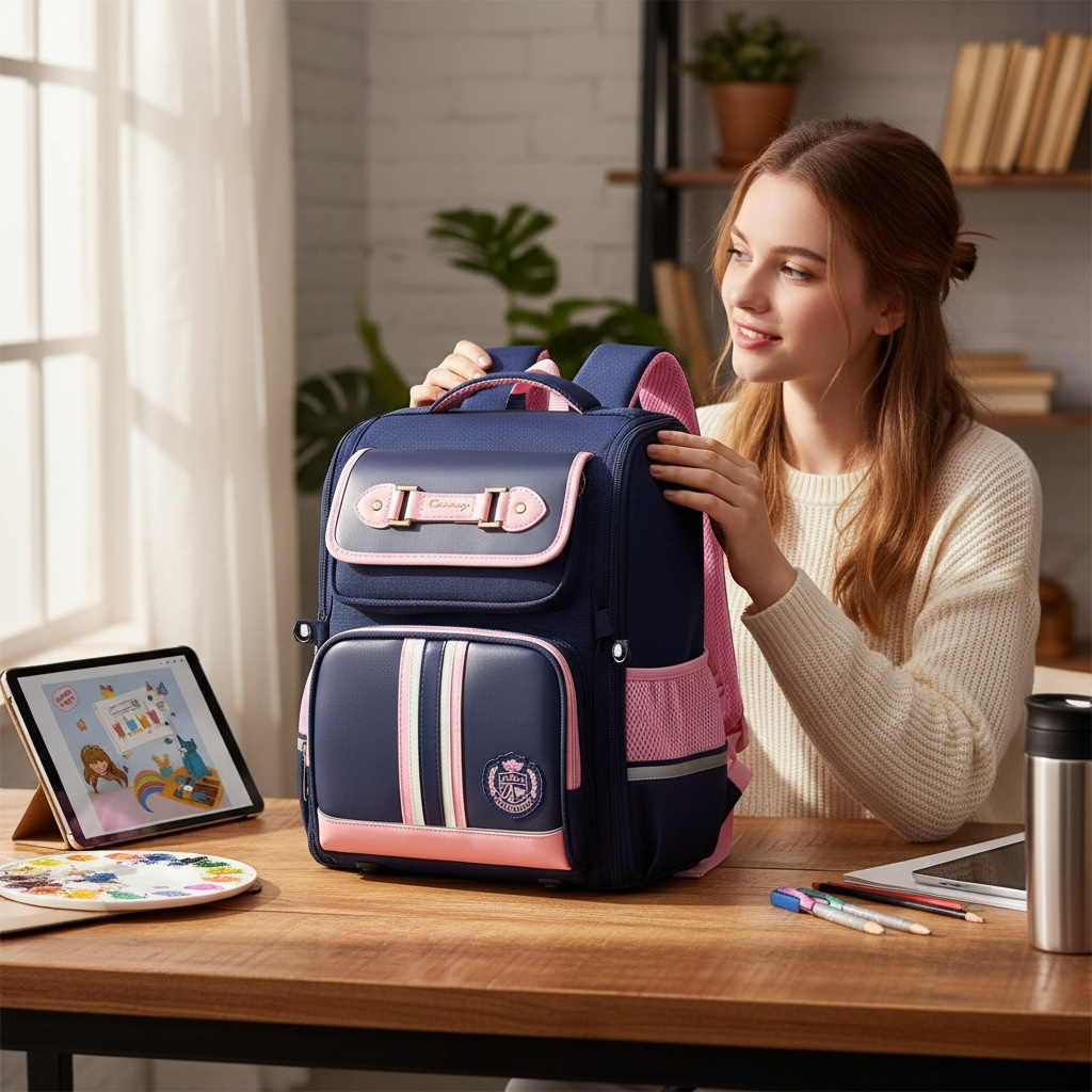 Balo B421 Snoppy vải dù phối da kèm đai trợ lực XK1425 / 28x40 / XANH PHỐI HỒNG