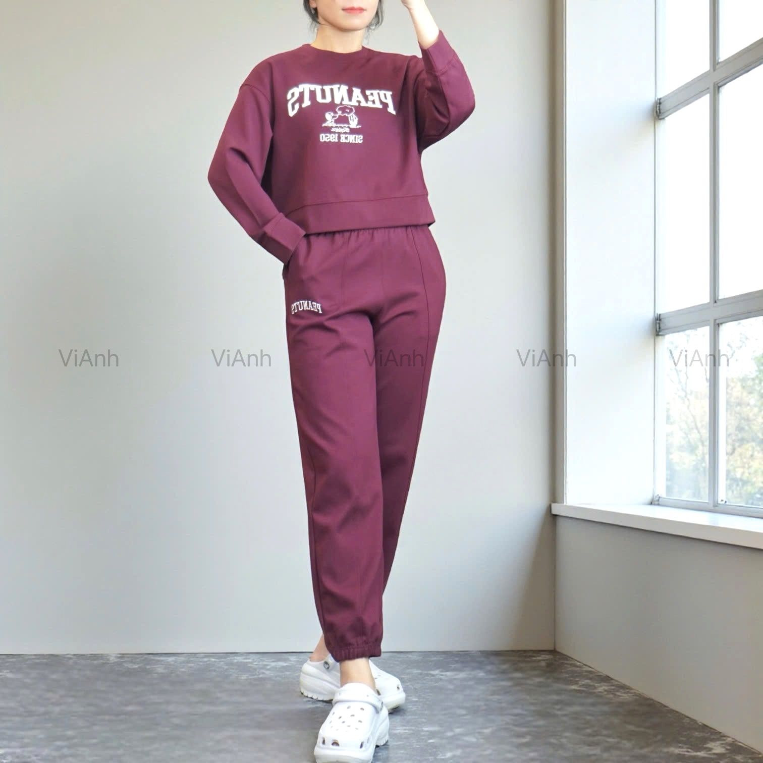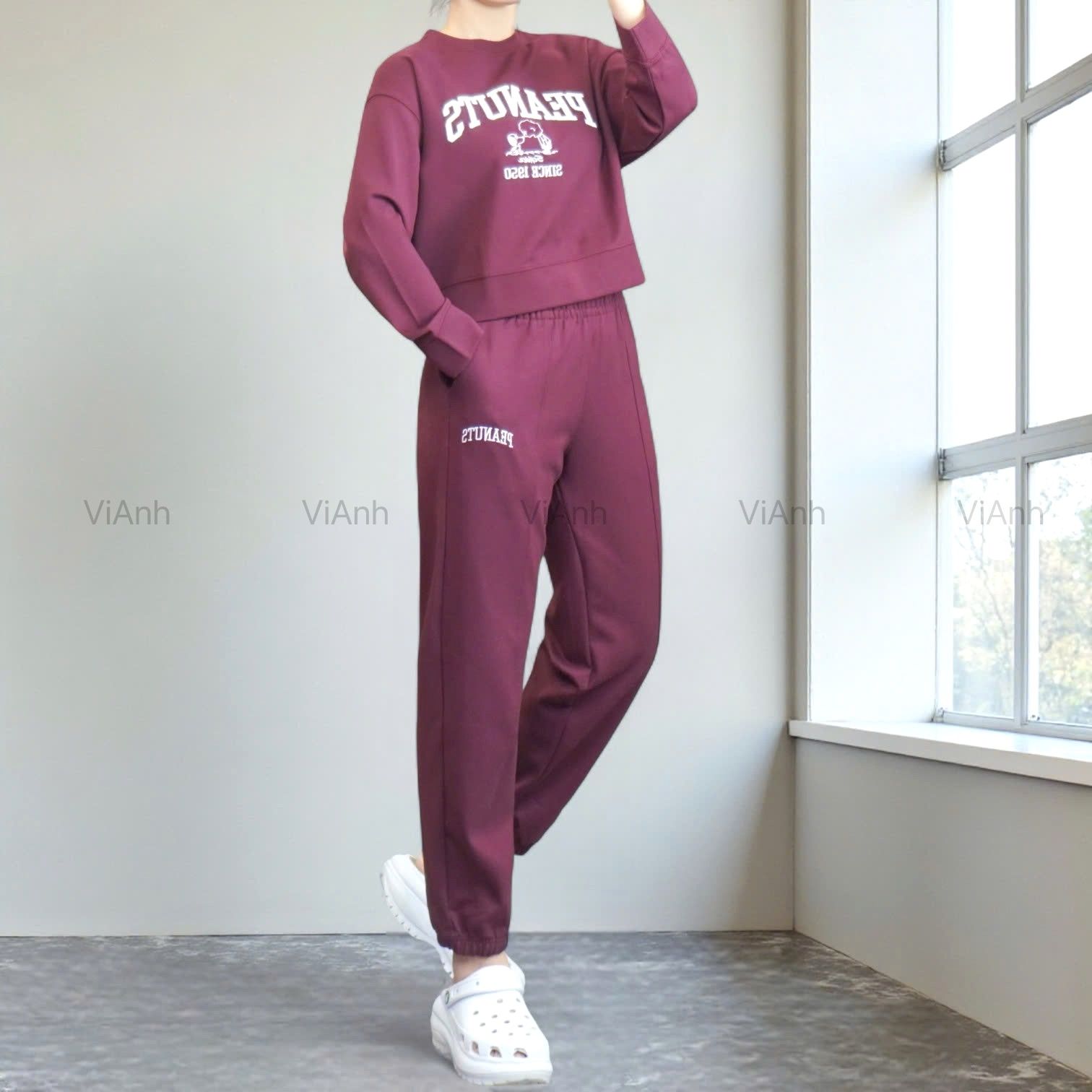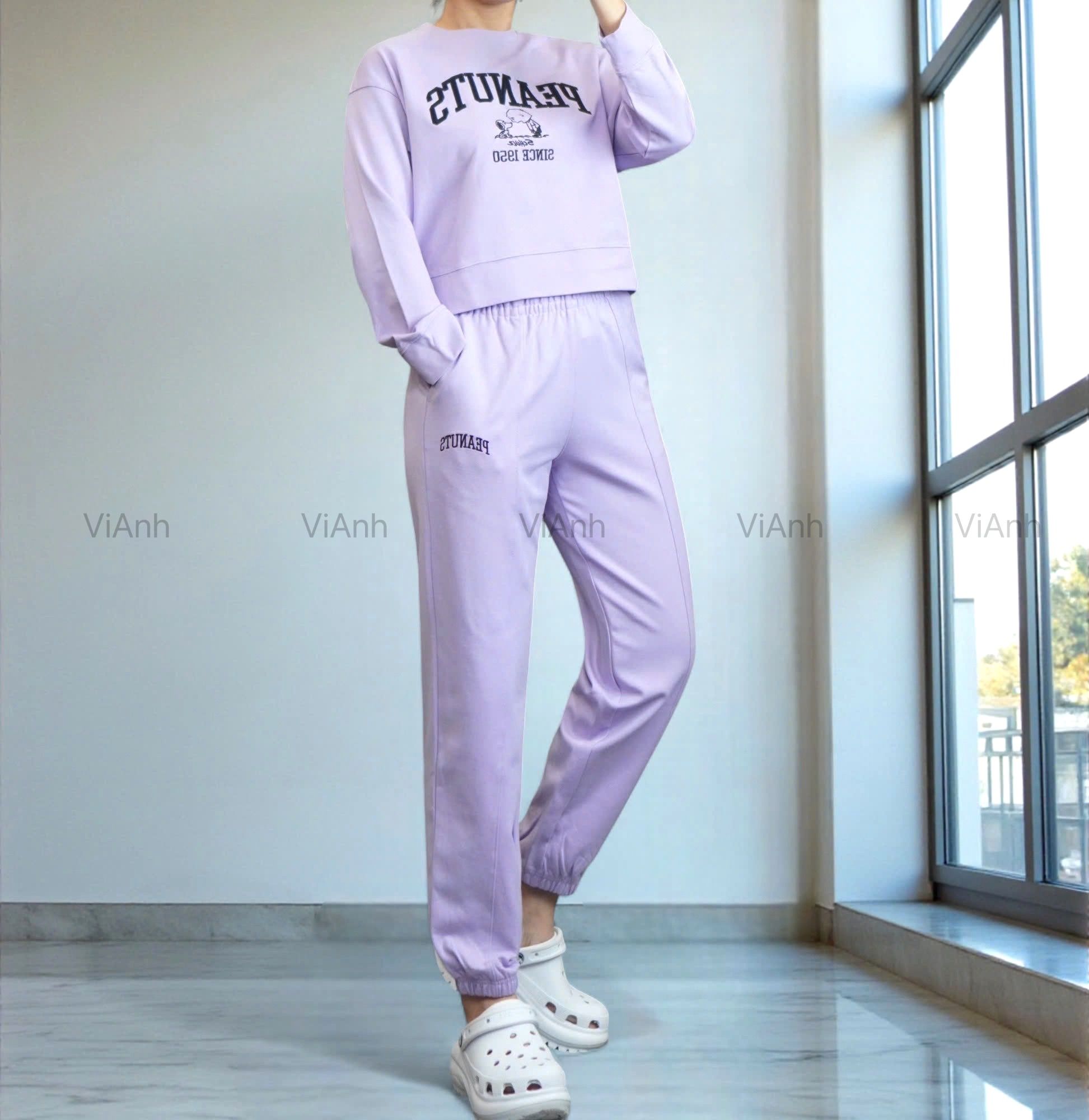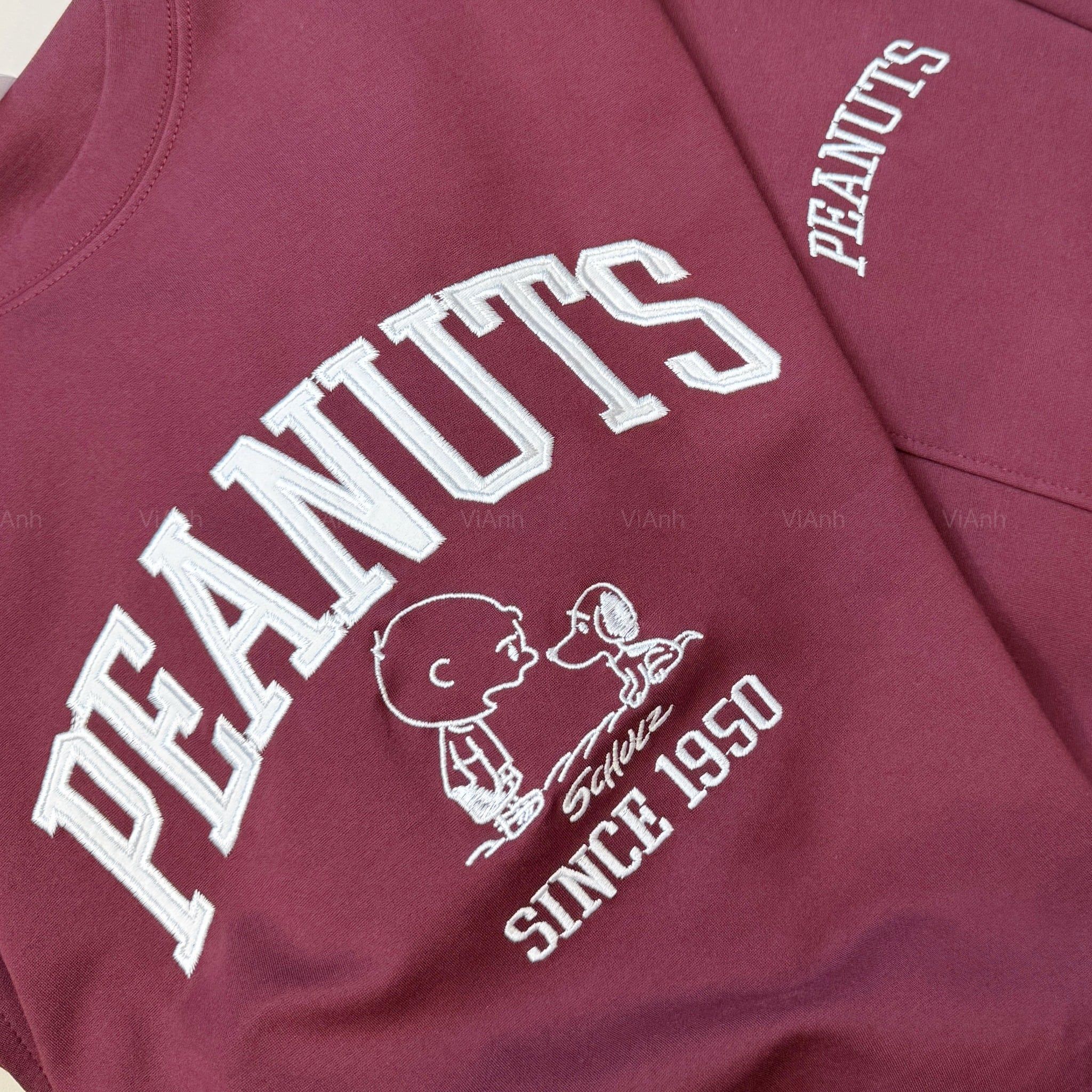 Bộ dài tay hình thêu PEANUTS Uni chất Umi Hàn