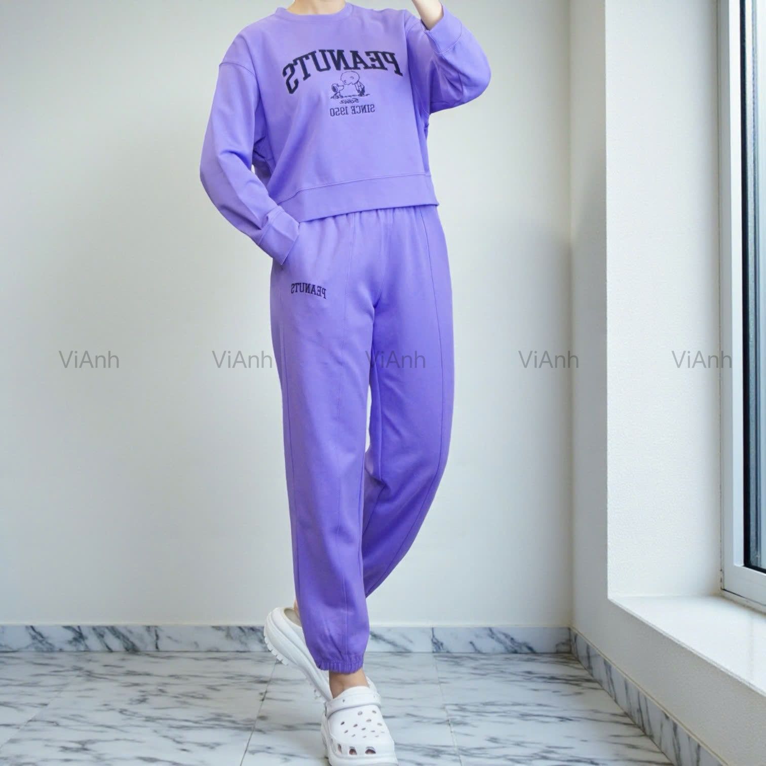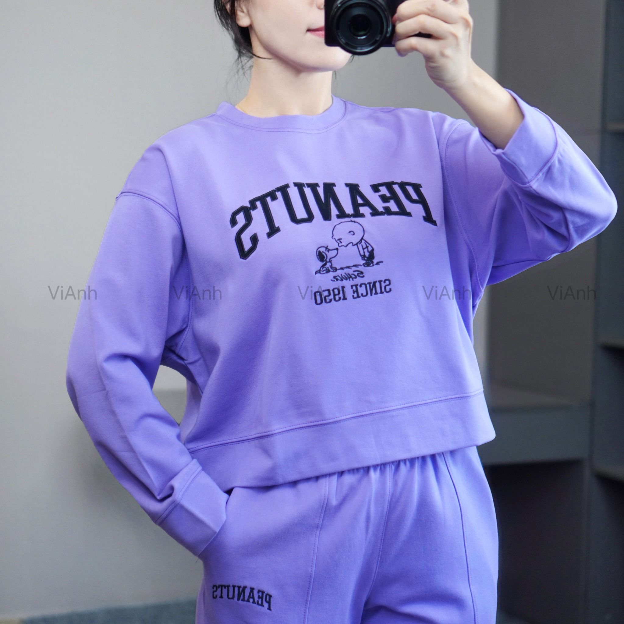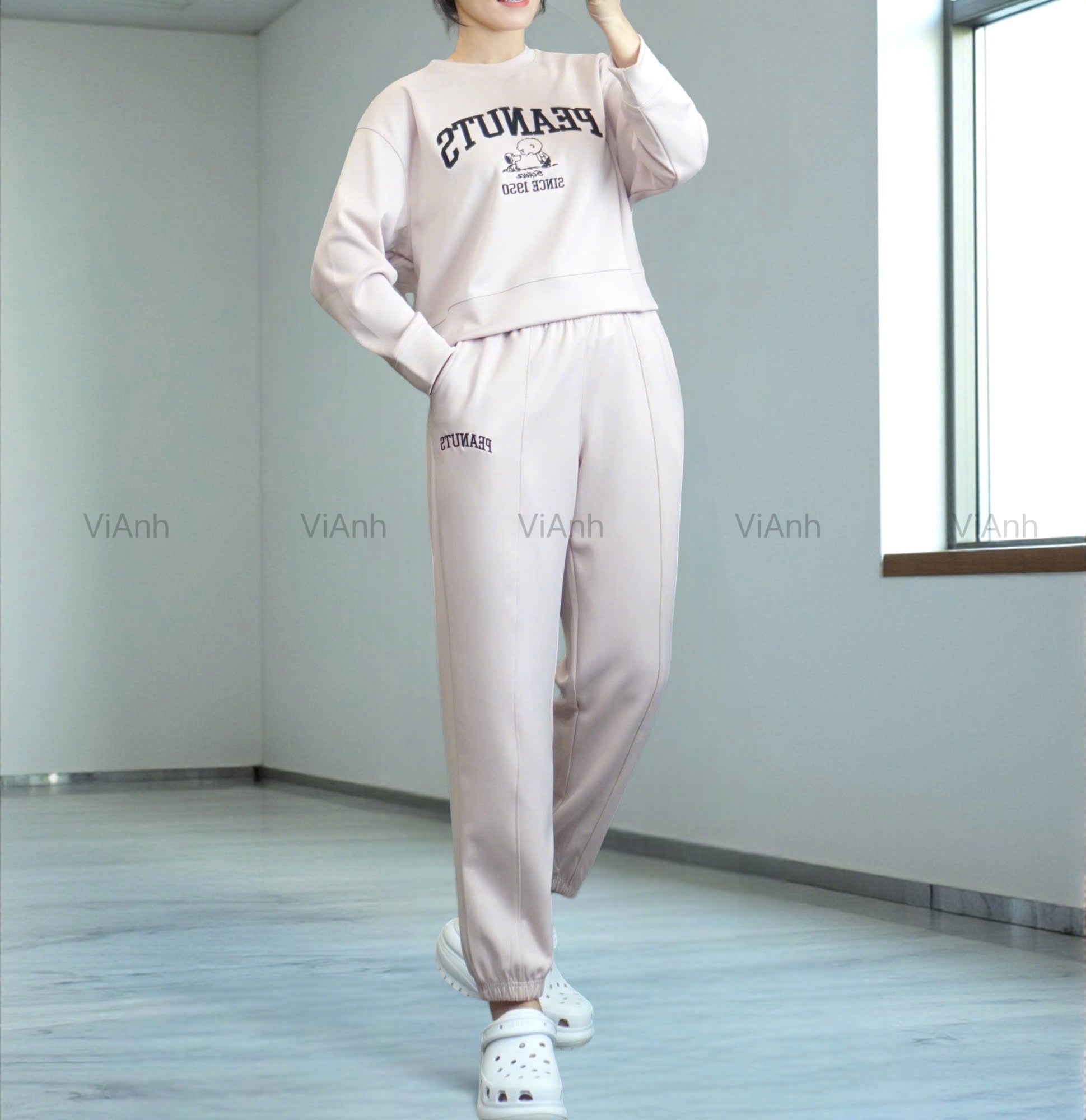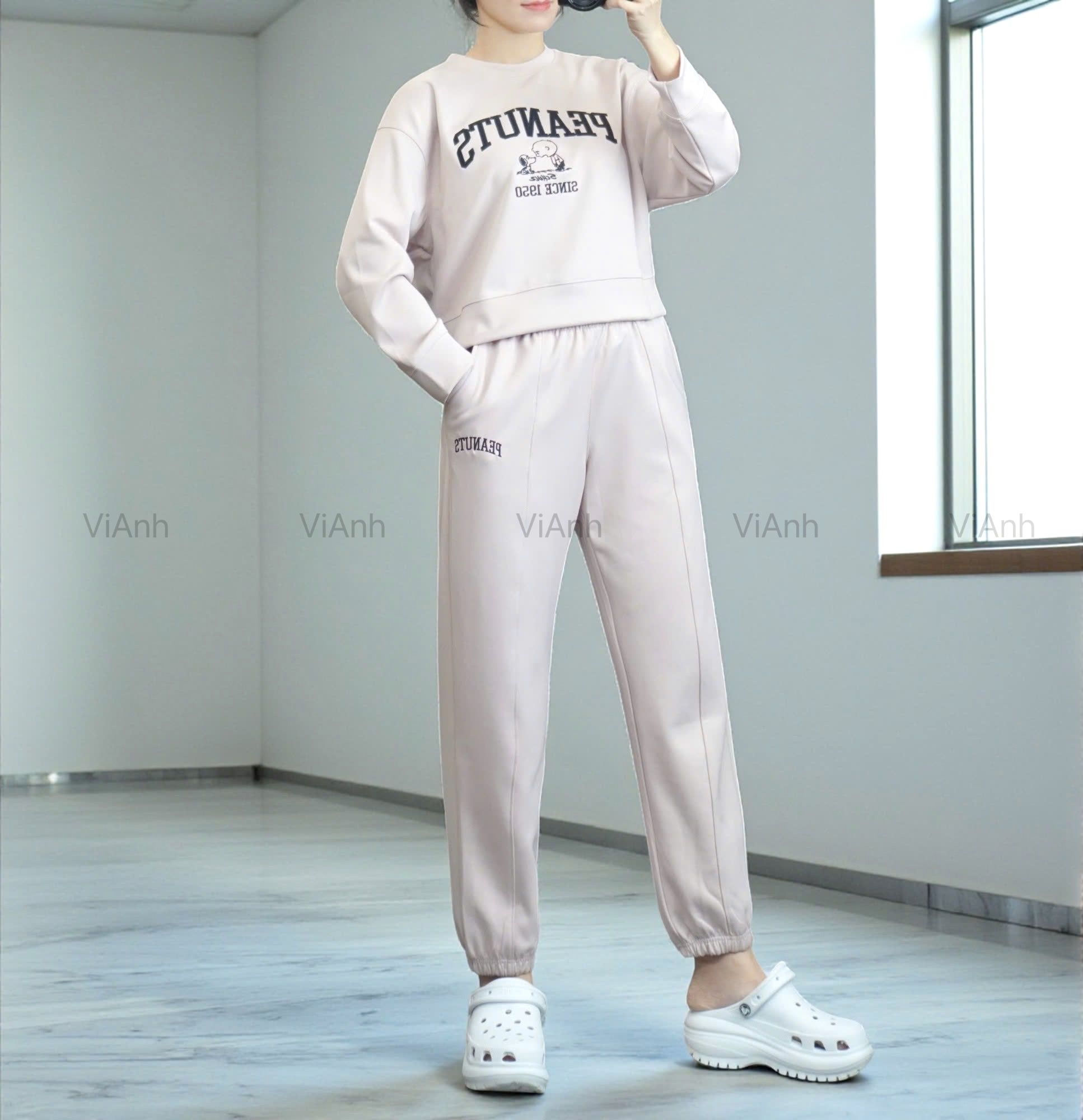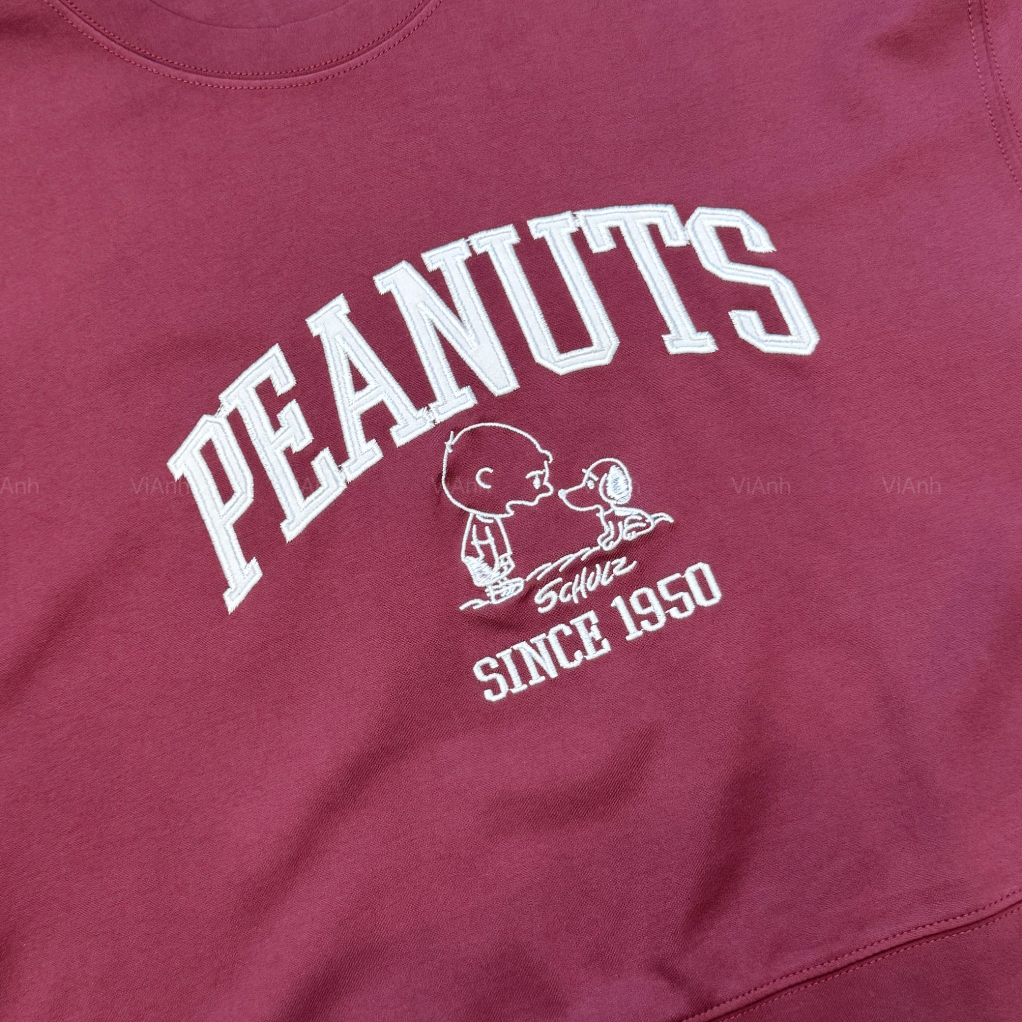 Bộ dài tay hình thêu PEANUTS Uni chất Umi Hàn Quốc